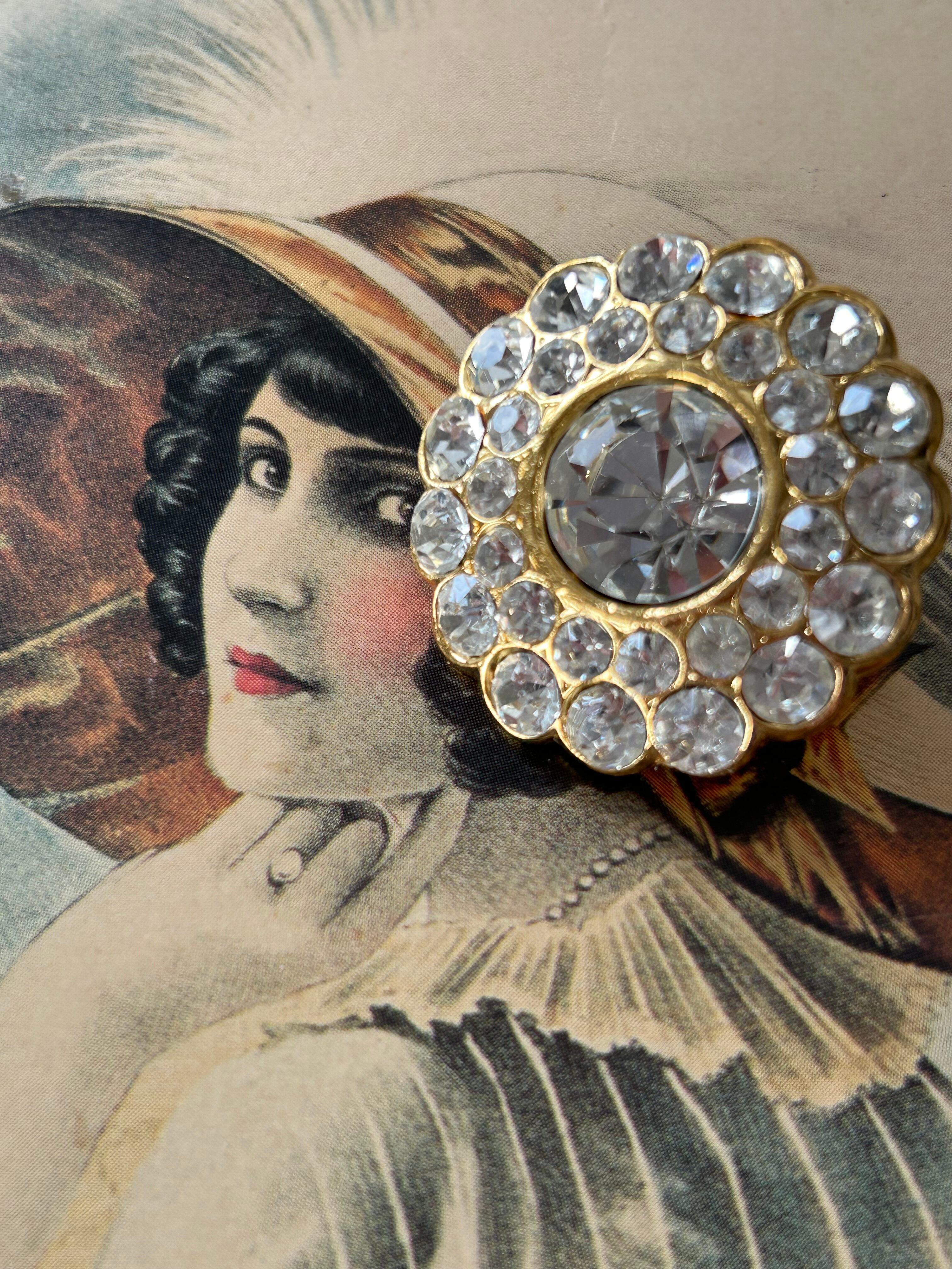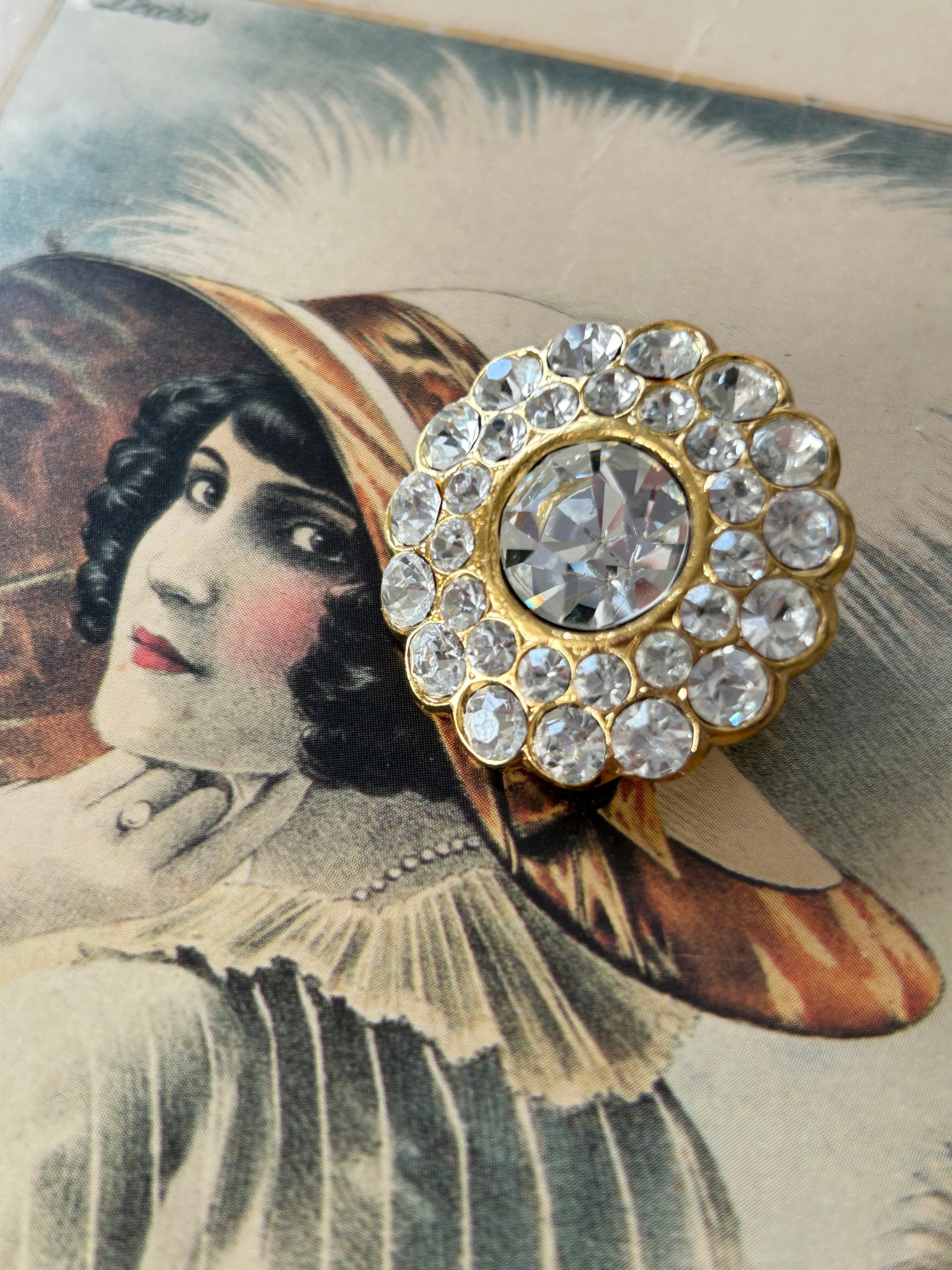 チェコ Vintageボタン メタル×ビジュー ゴールド 29mm