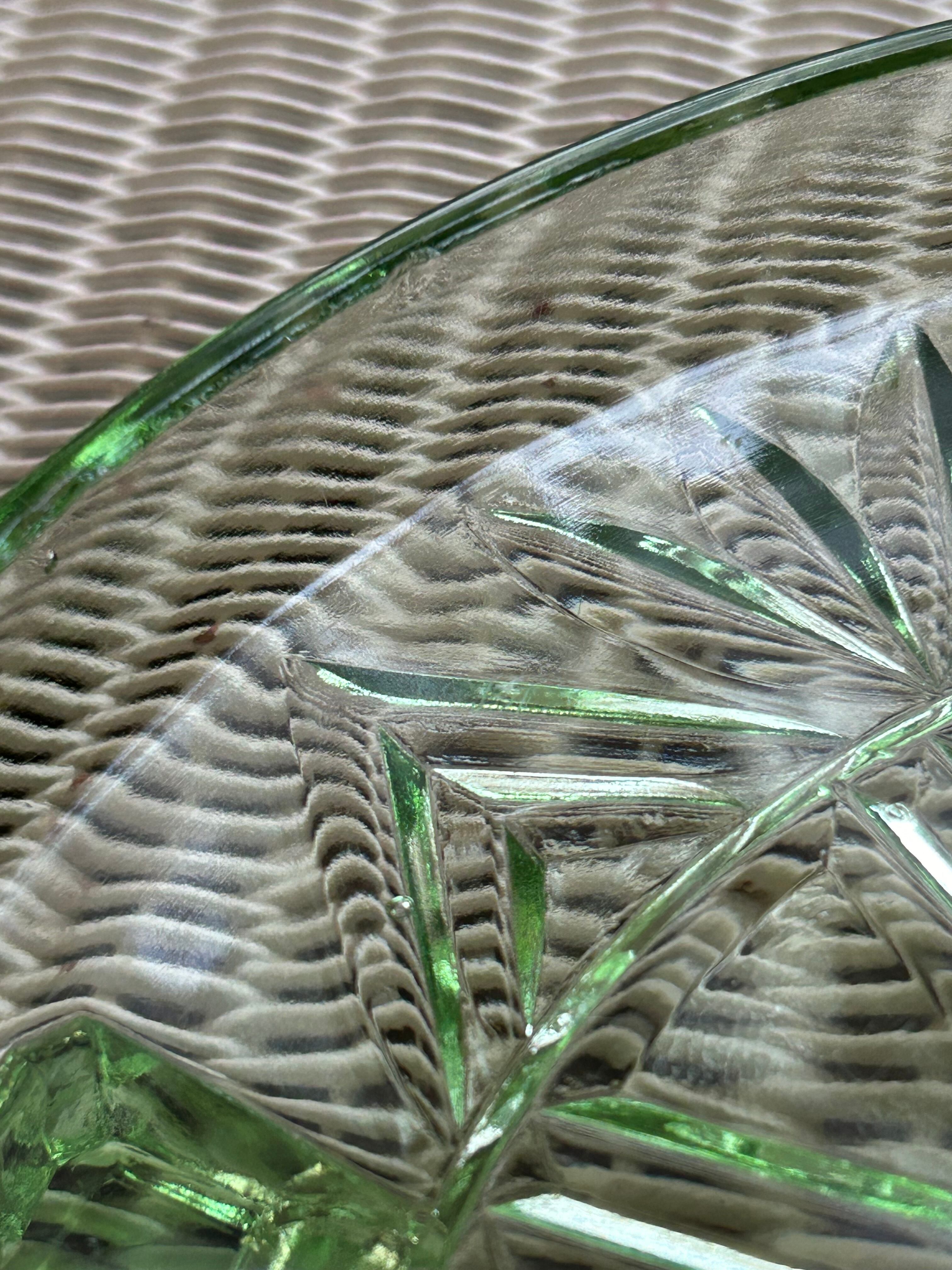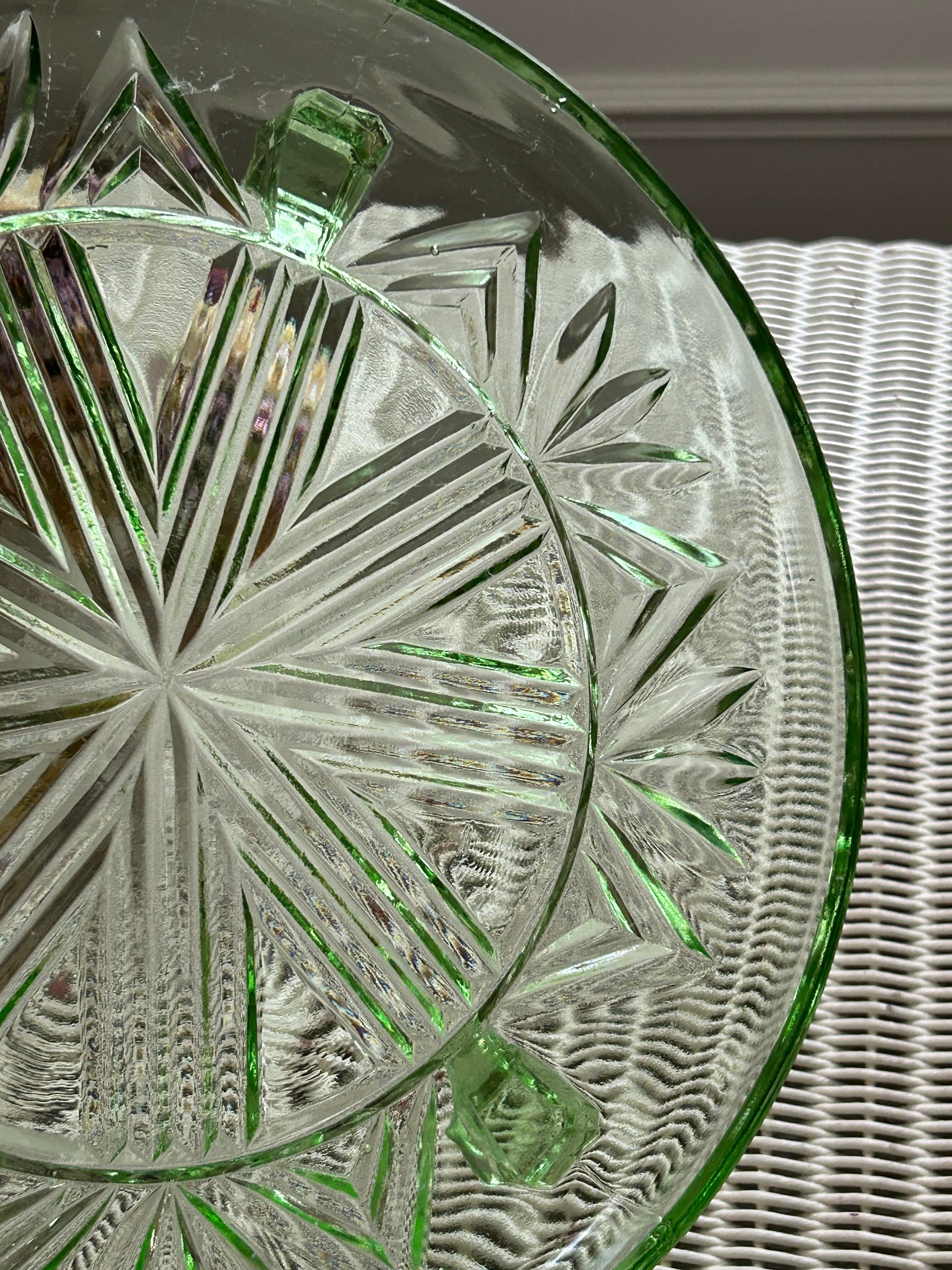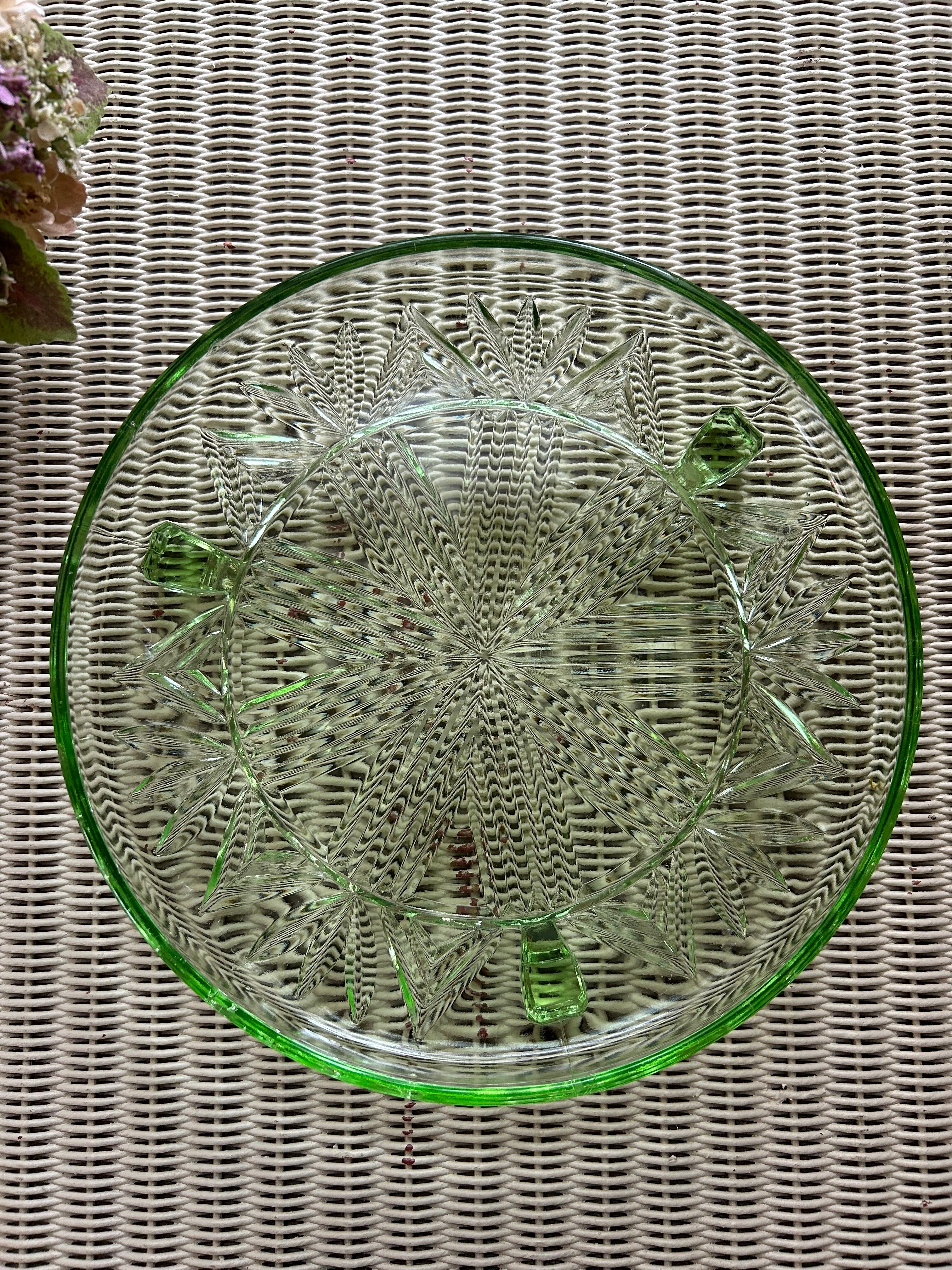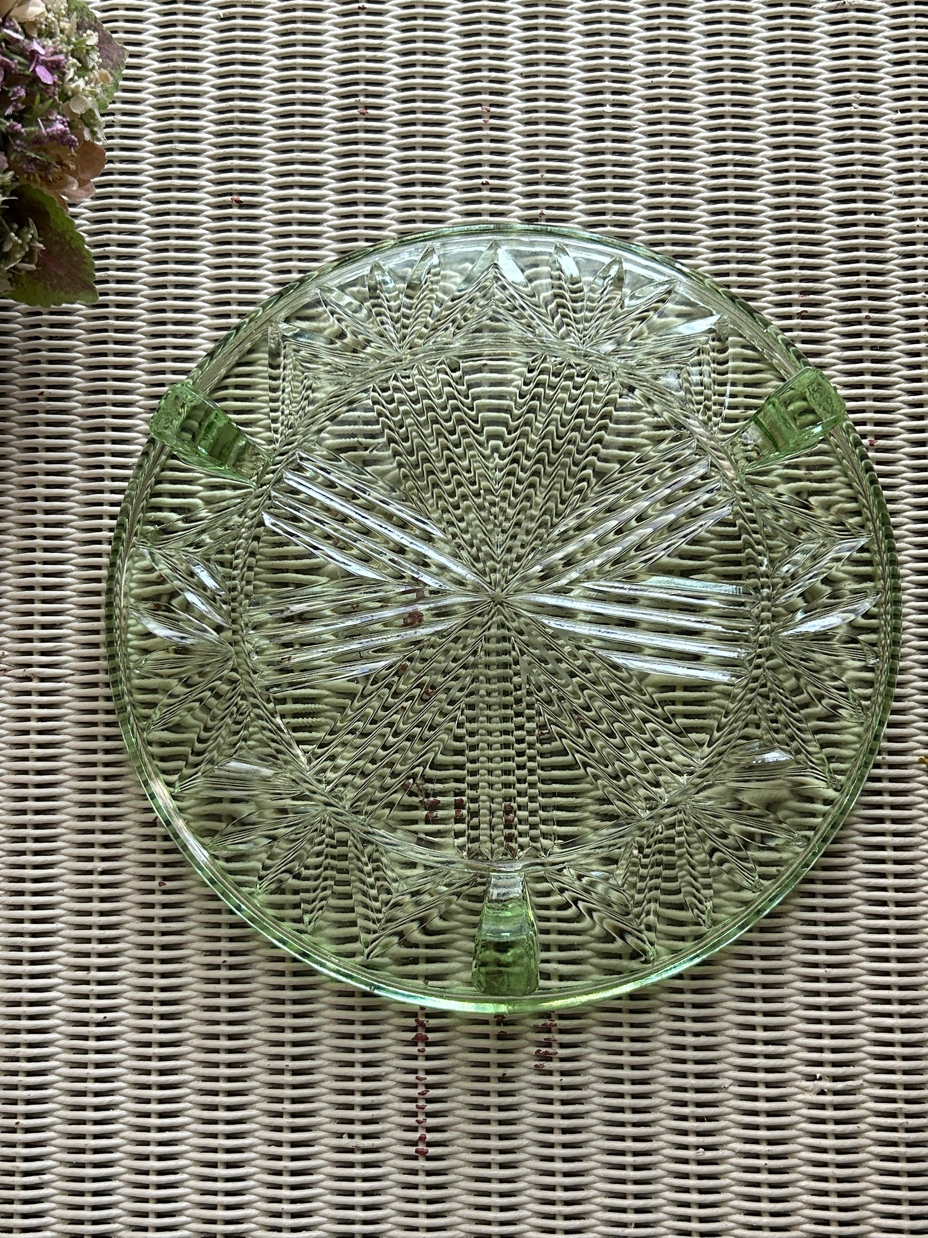 英国アンティーク グリーン ガラスの三脚ケーキスタンド コンポティエ 1940年代