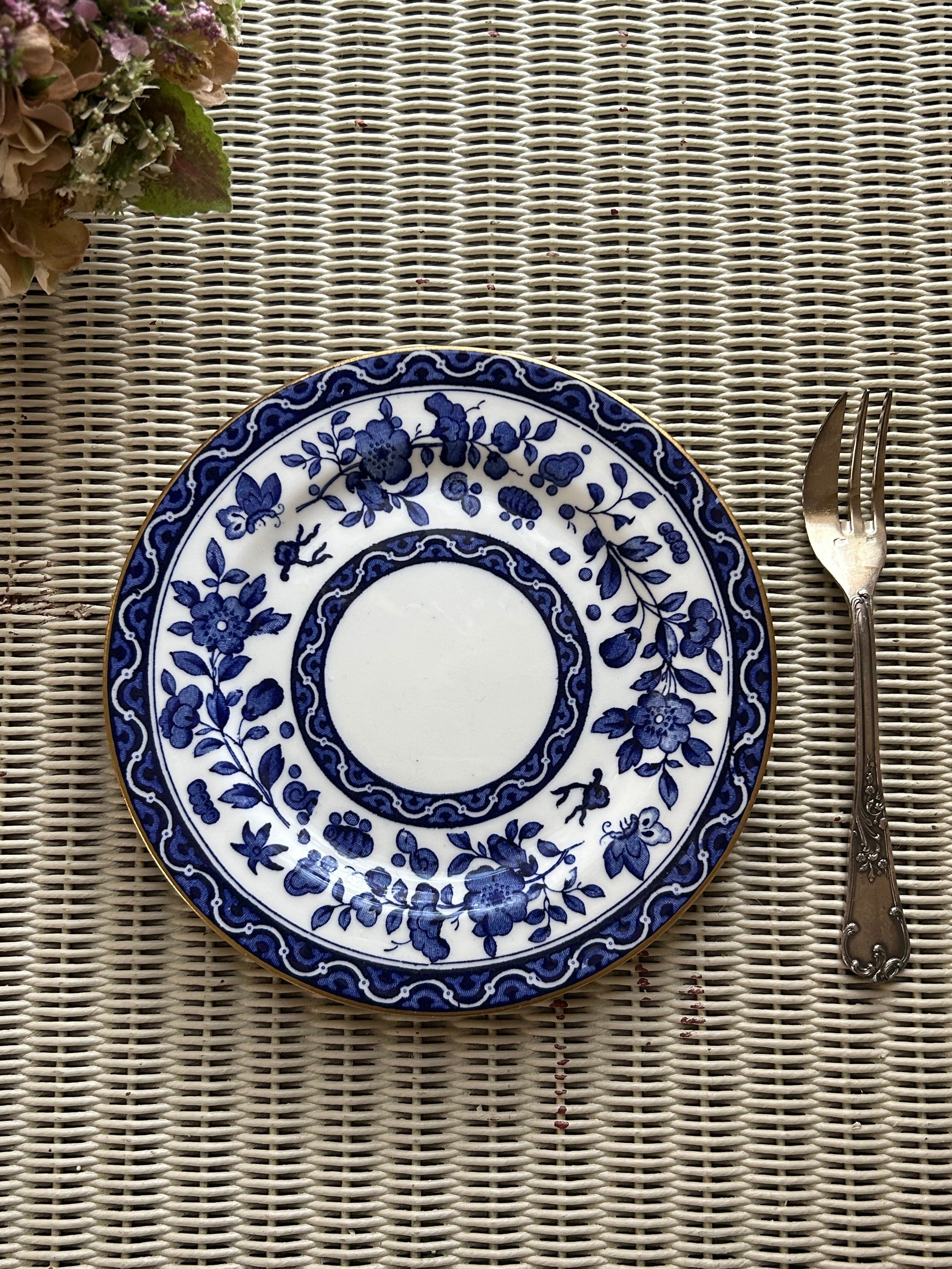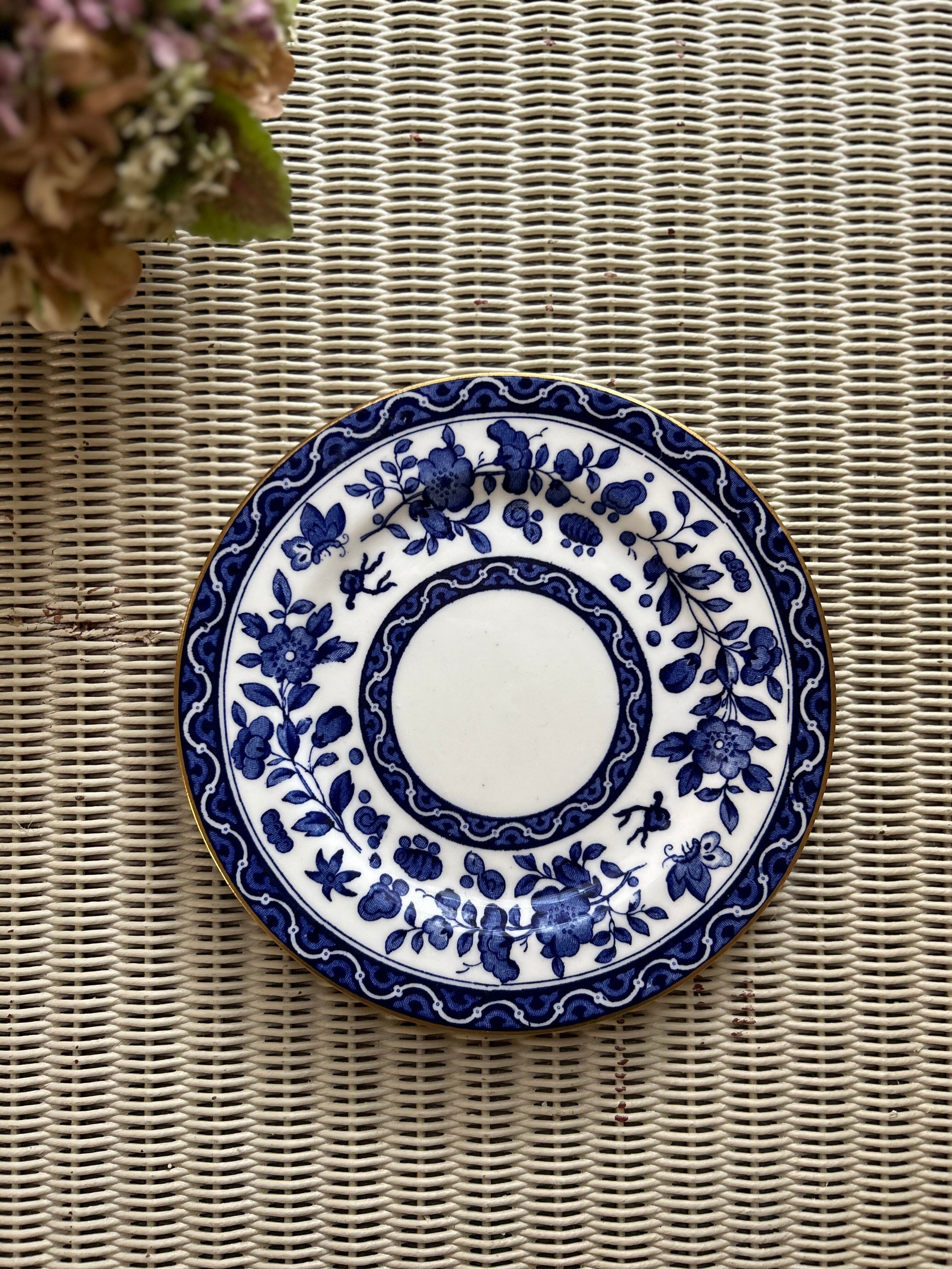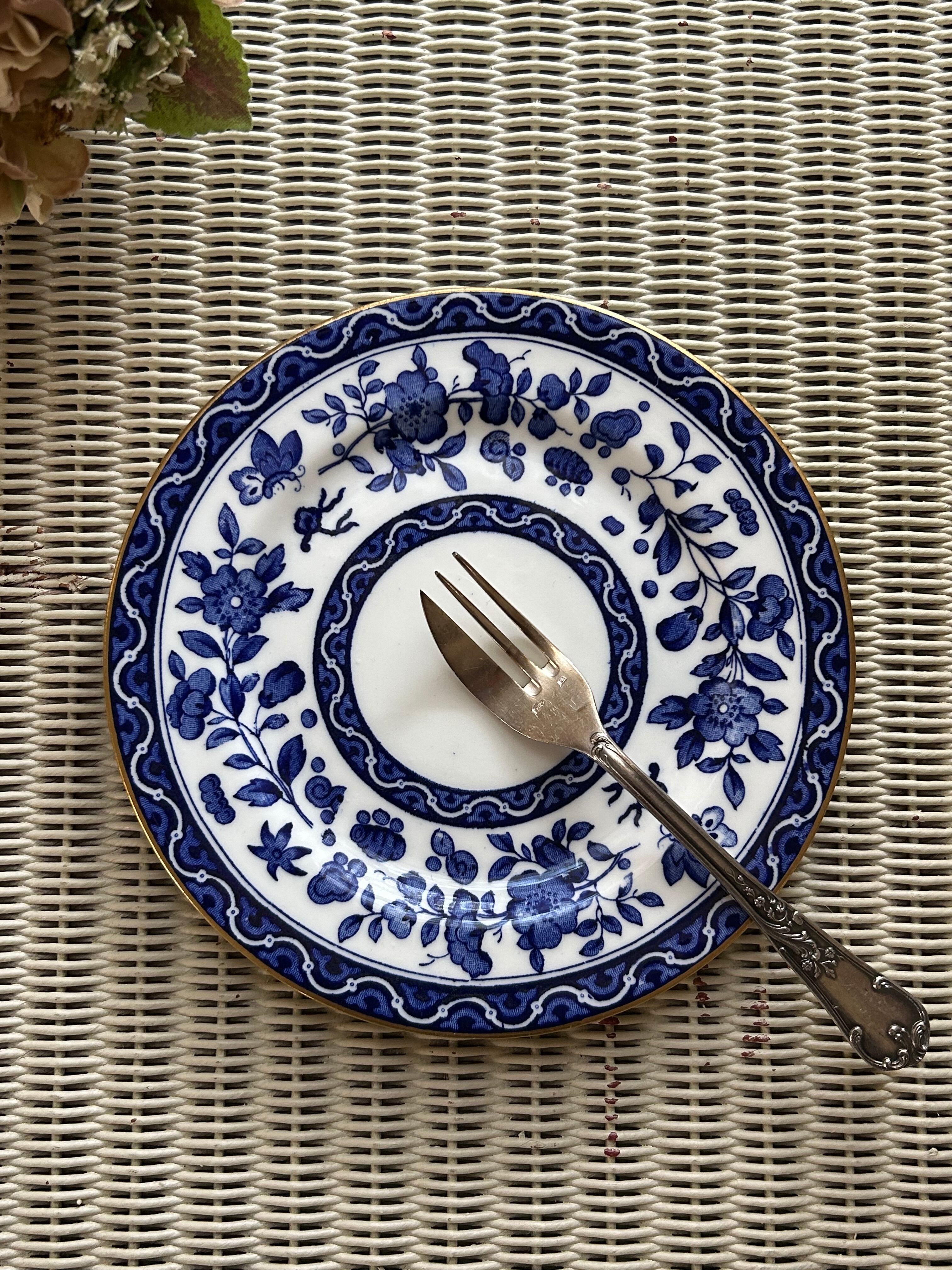 英国Vintage ROYAL DOULTON ロイヤルドルトン 花蝶図 ブルー&ホワイト ケーキプレート 17.5cm