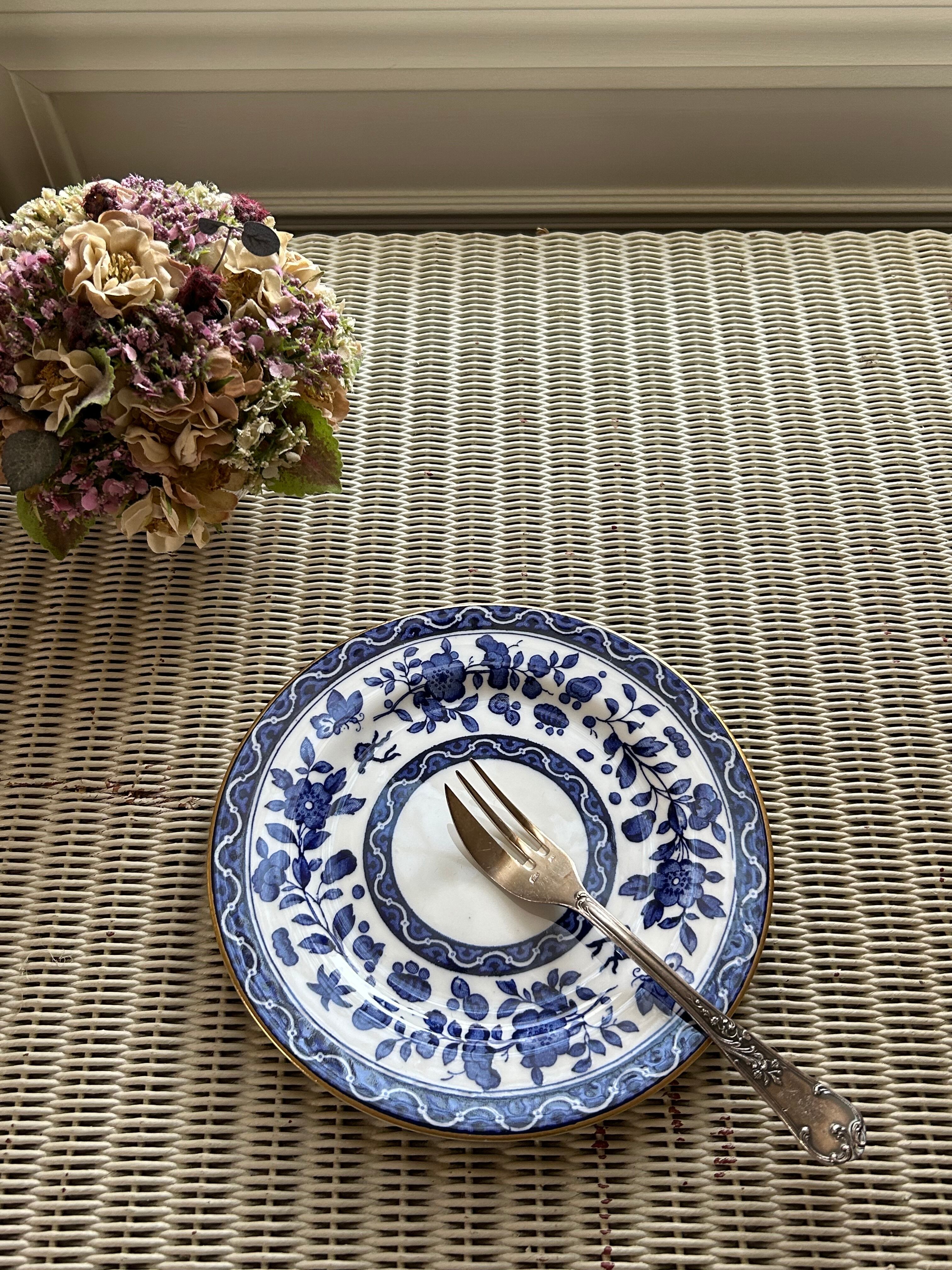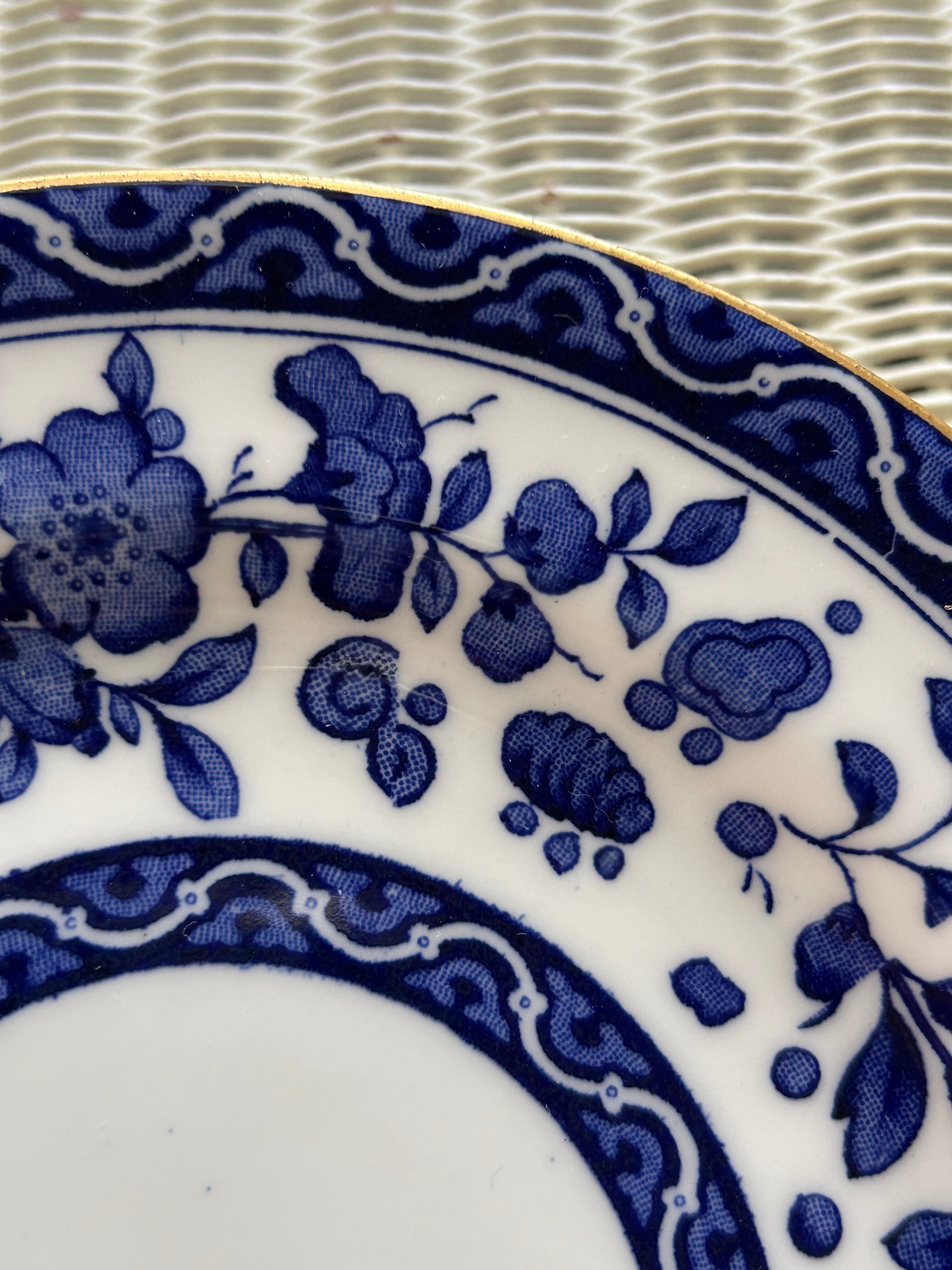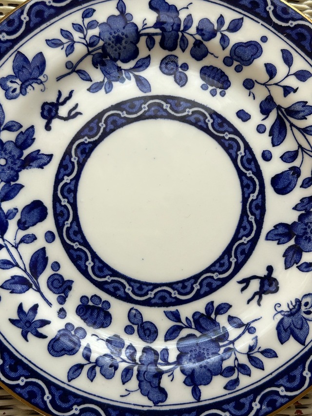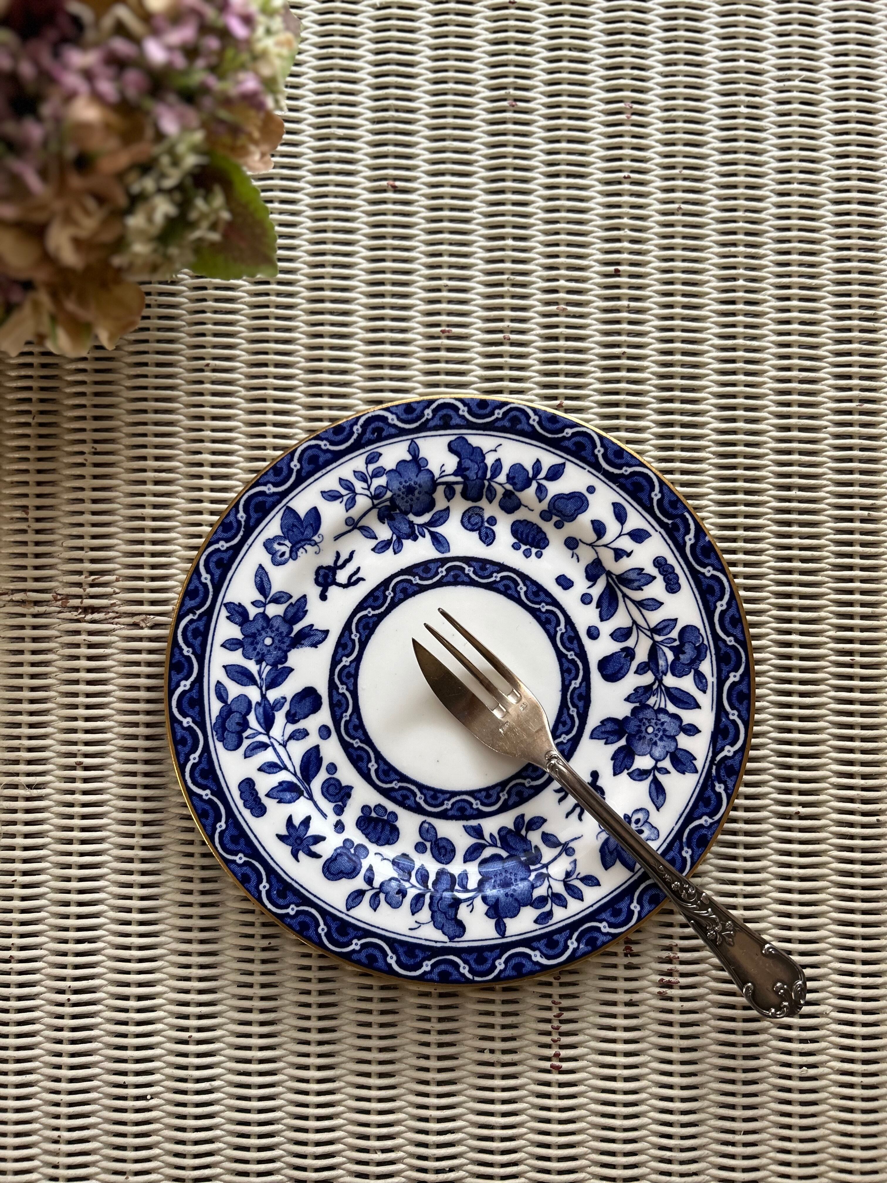 英国Vintage ROYAL DOULTON ロイヤルドルトン 花蝶図 ブルー&ホワイト ケーキプレート 17.5cm