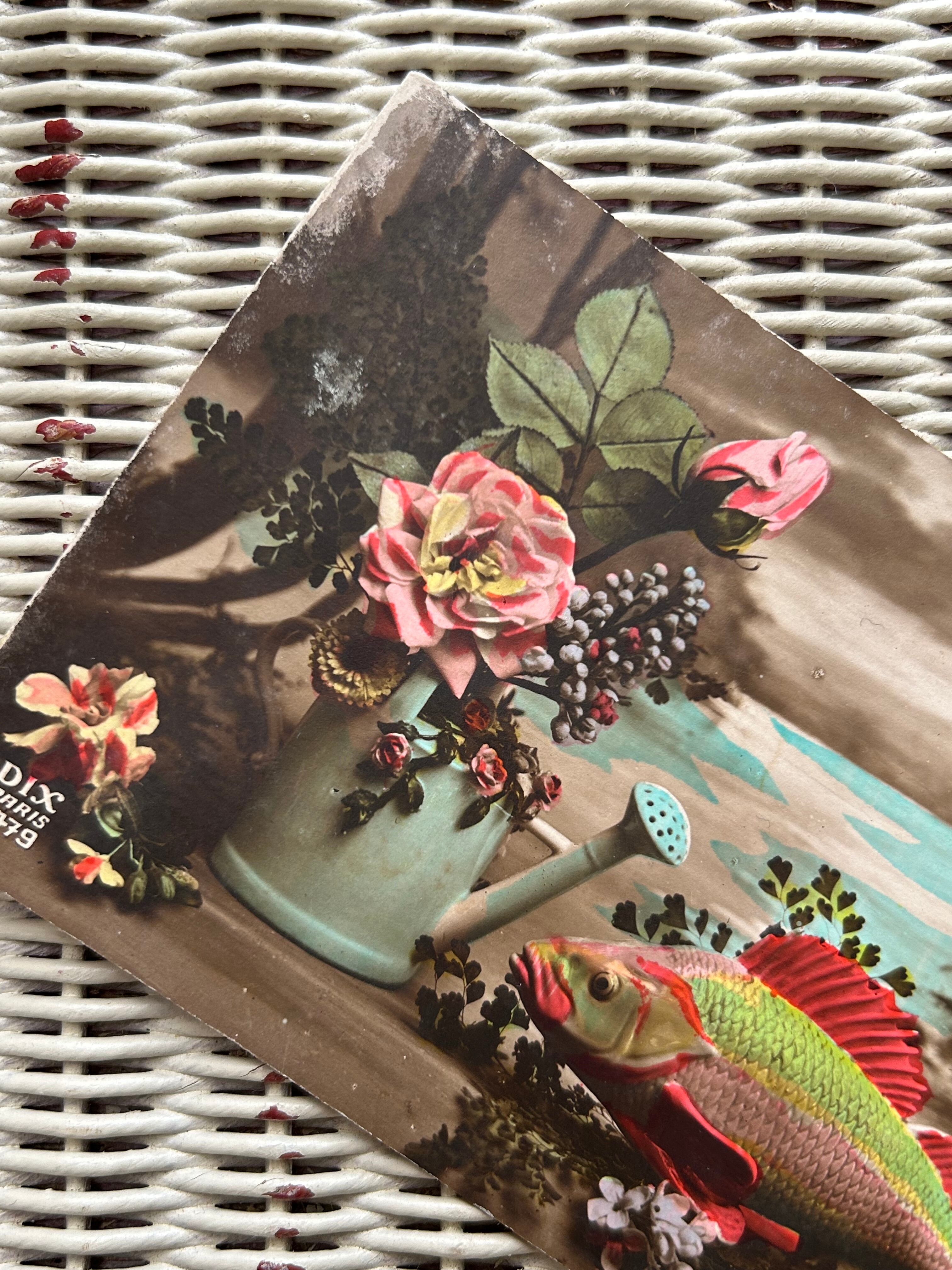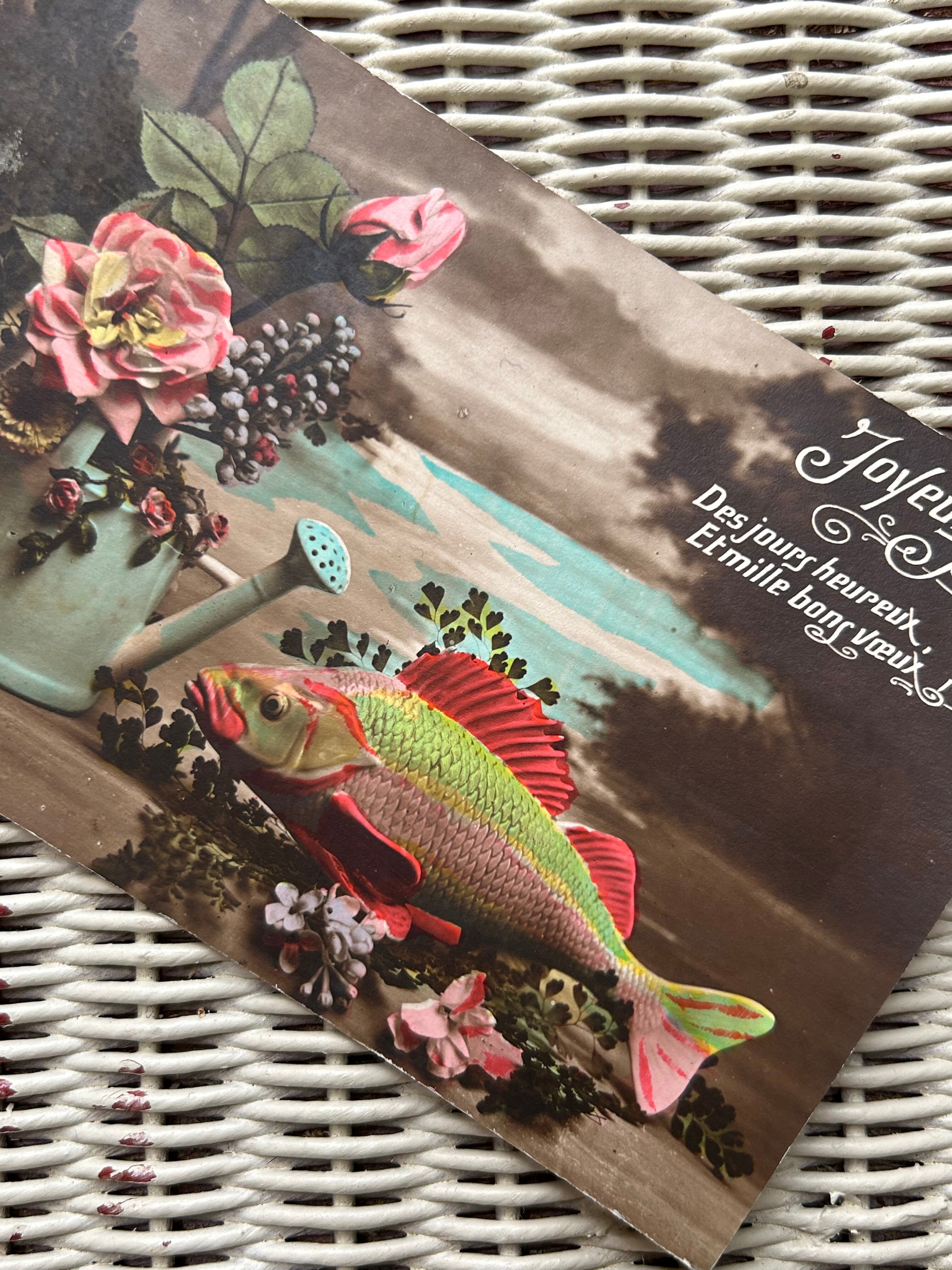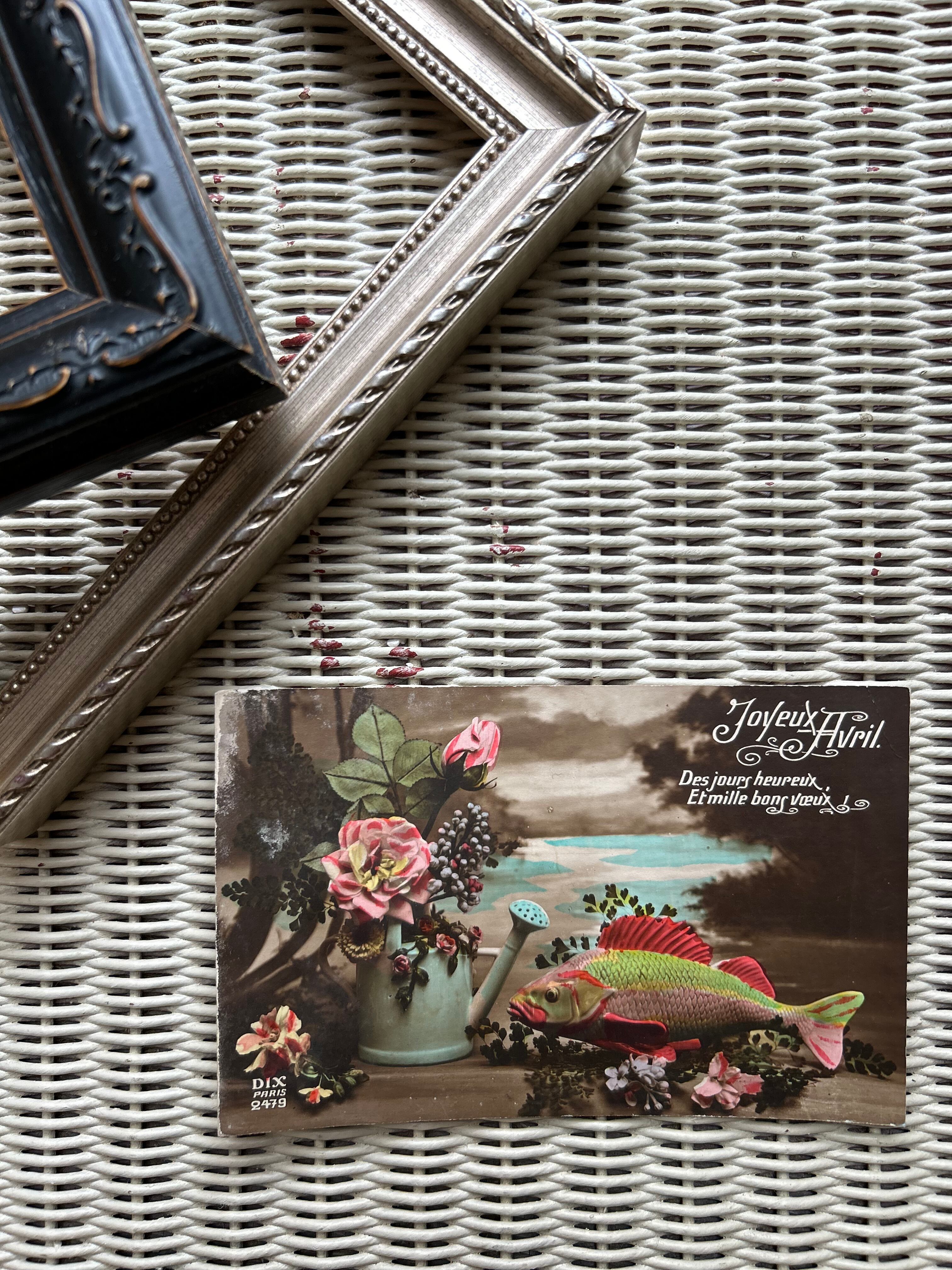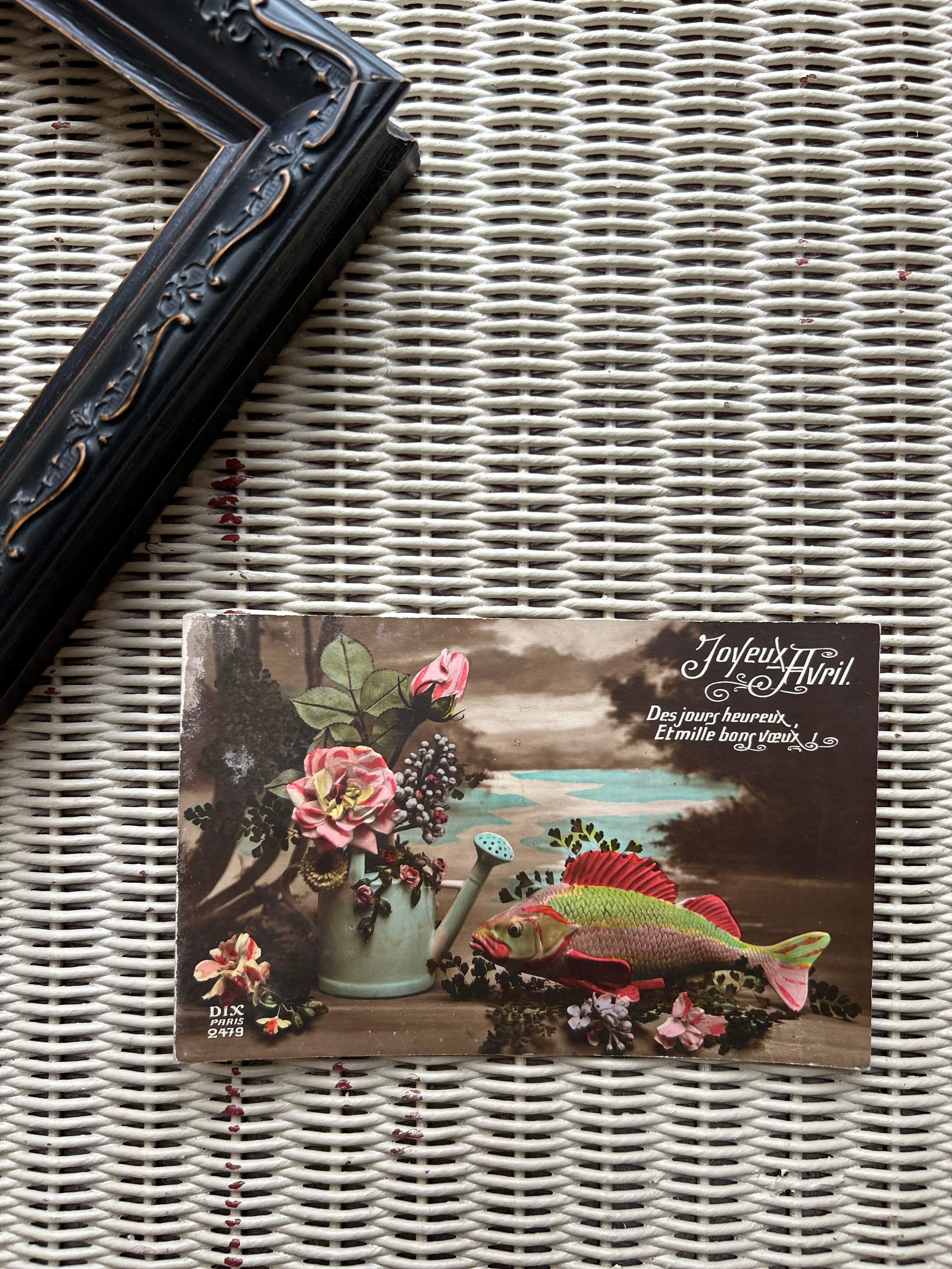 アンティークポストカード Joyeux Avri 4月の魚 1920年 額装 インテリア フランス