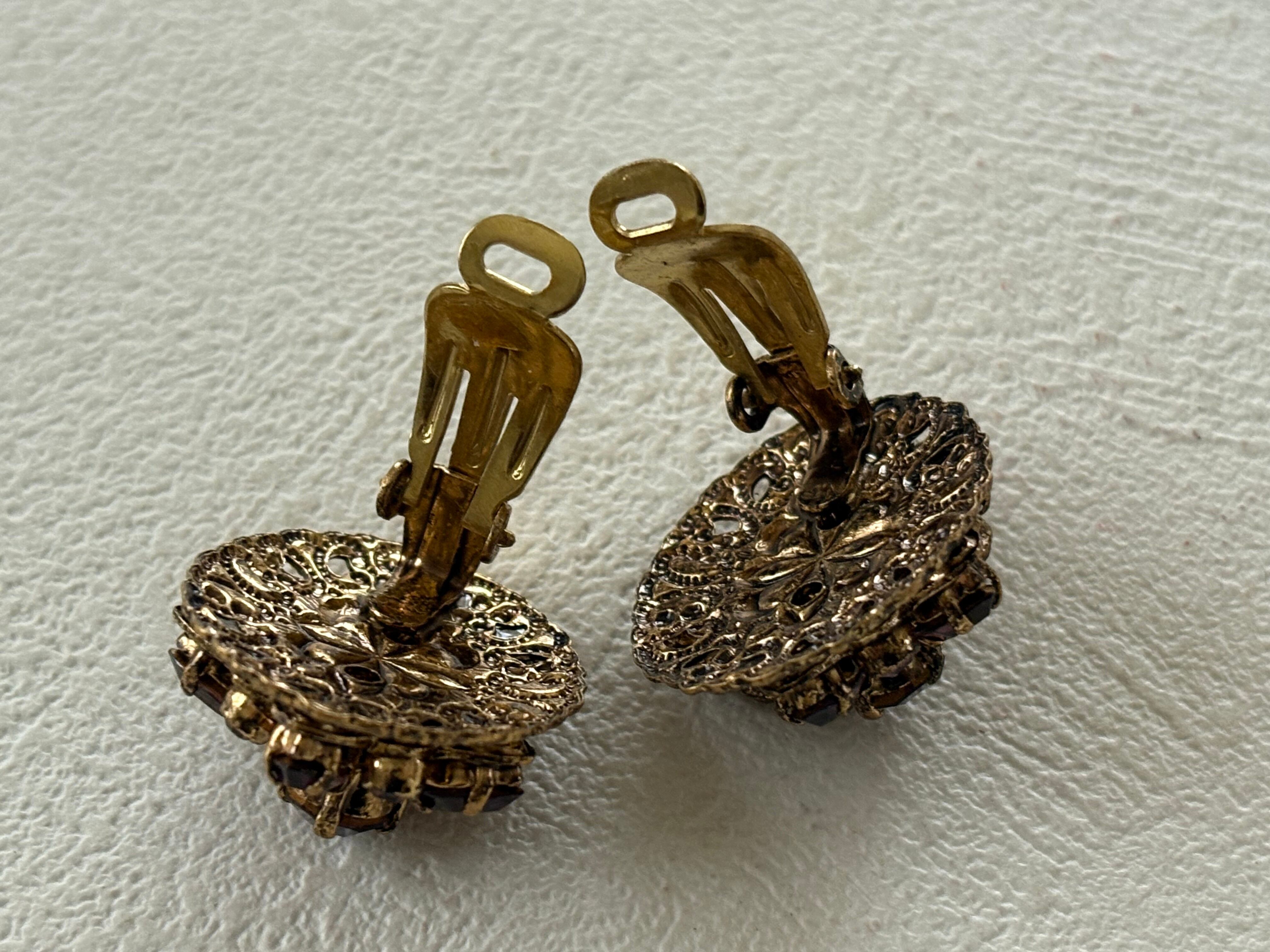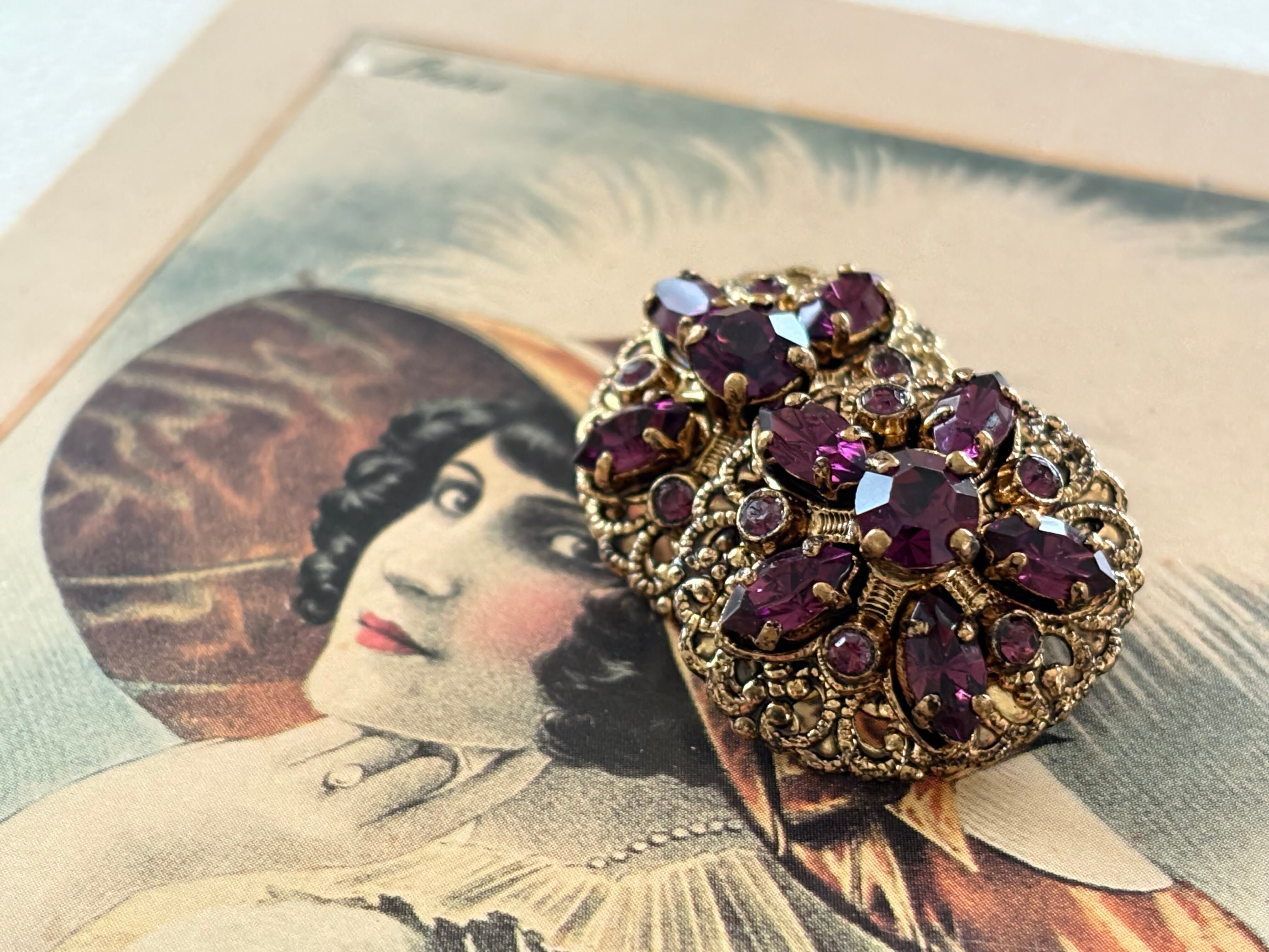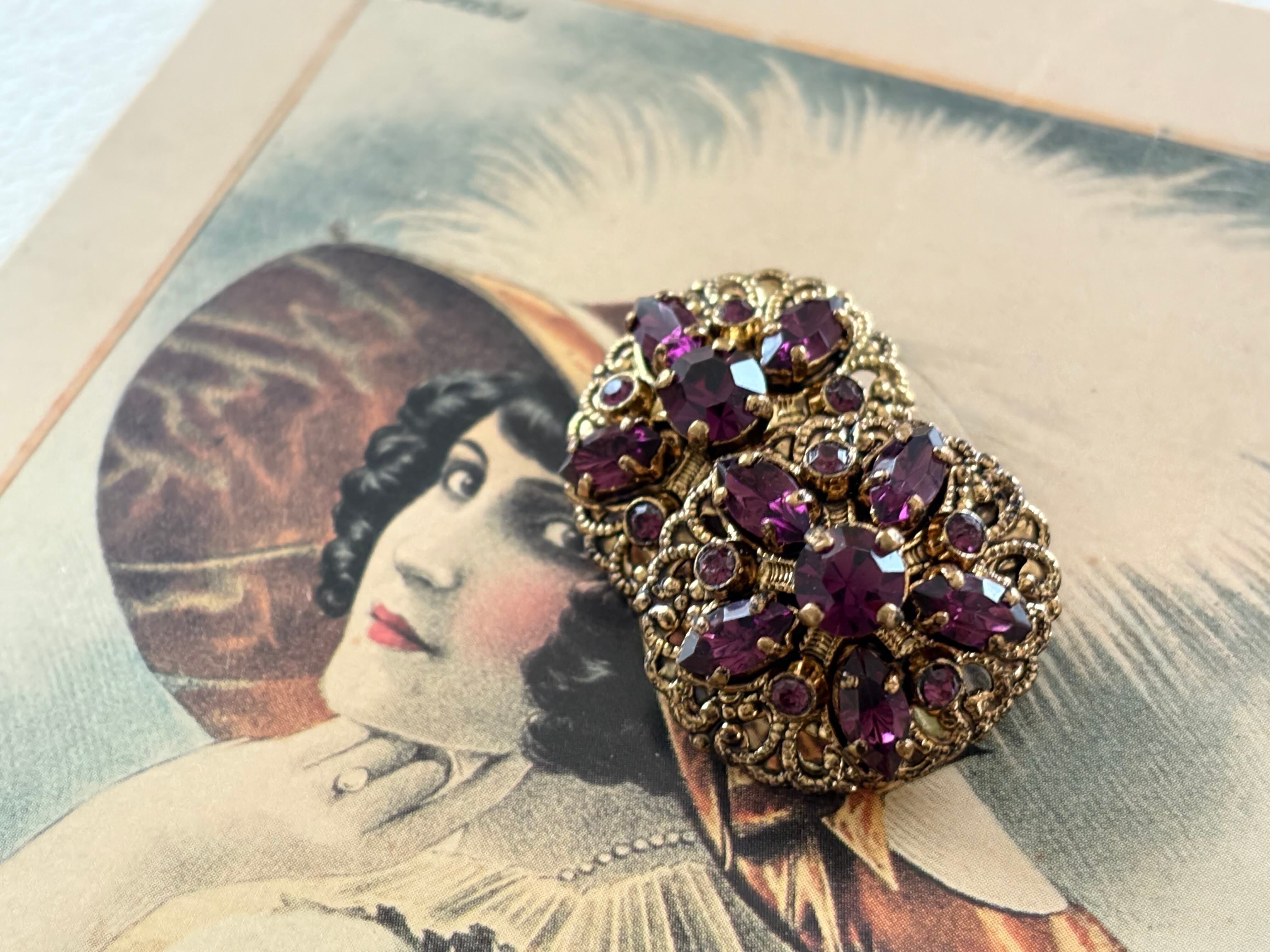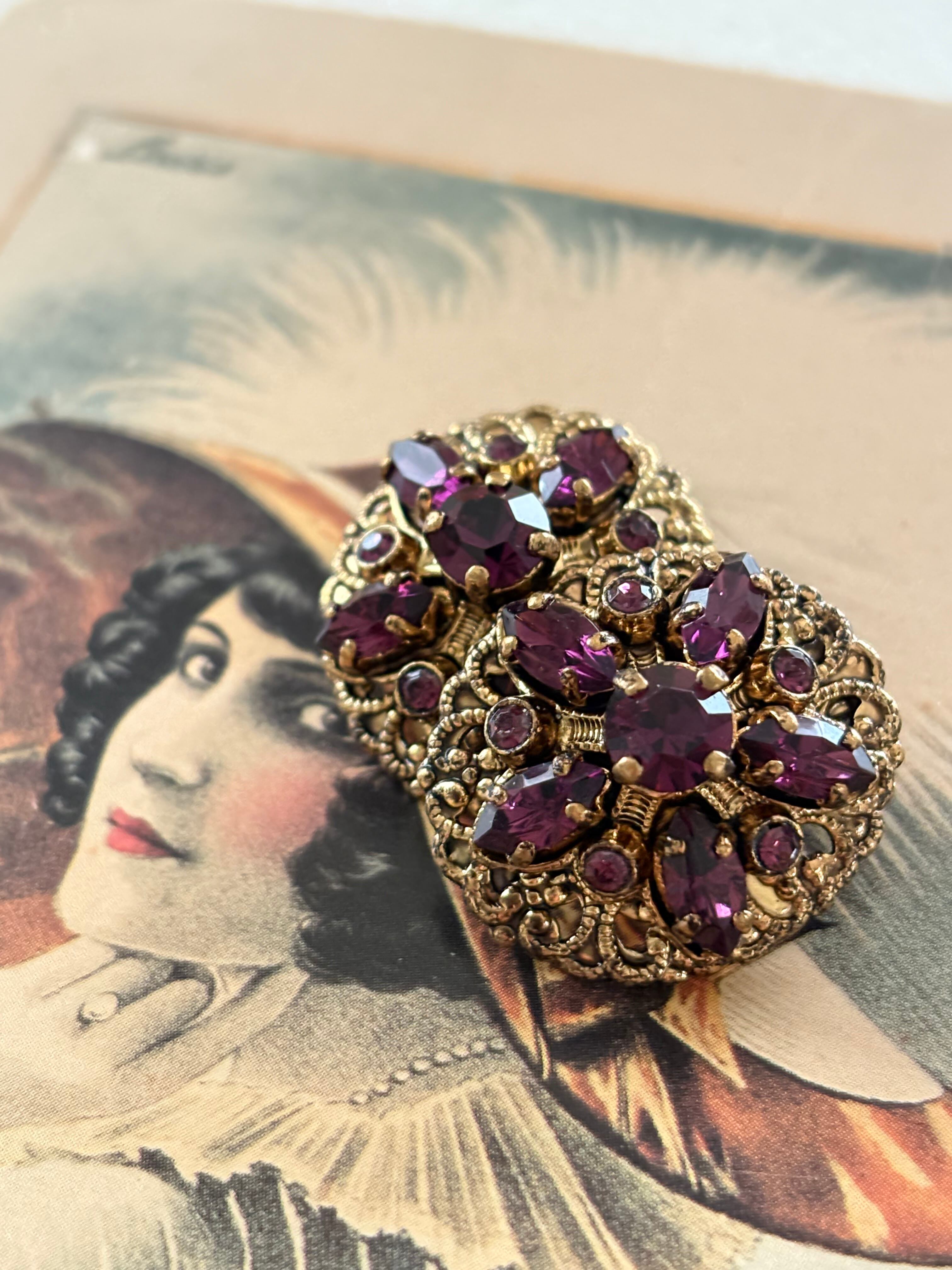 西ドイツ製の繊細な透かし装飾に、パープルカラーのガラスがセッティングされた素敵なイヤリングです。
