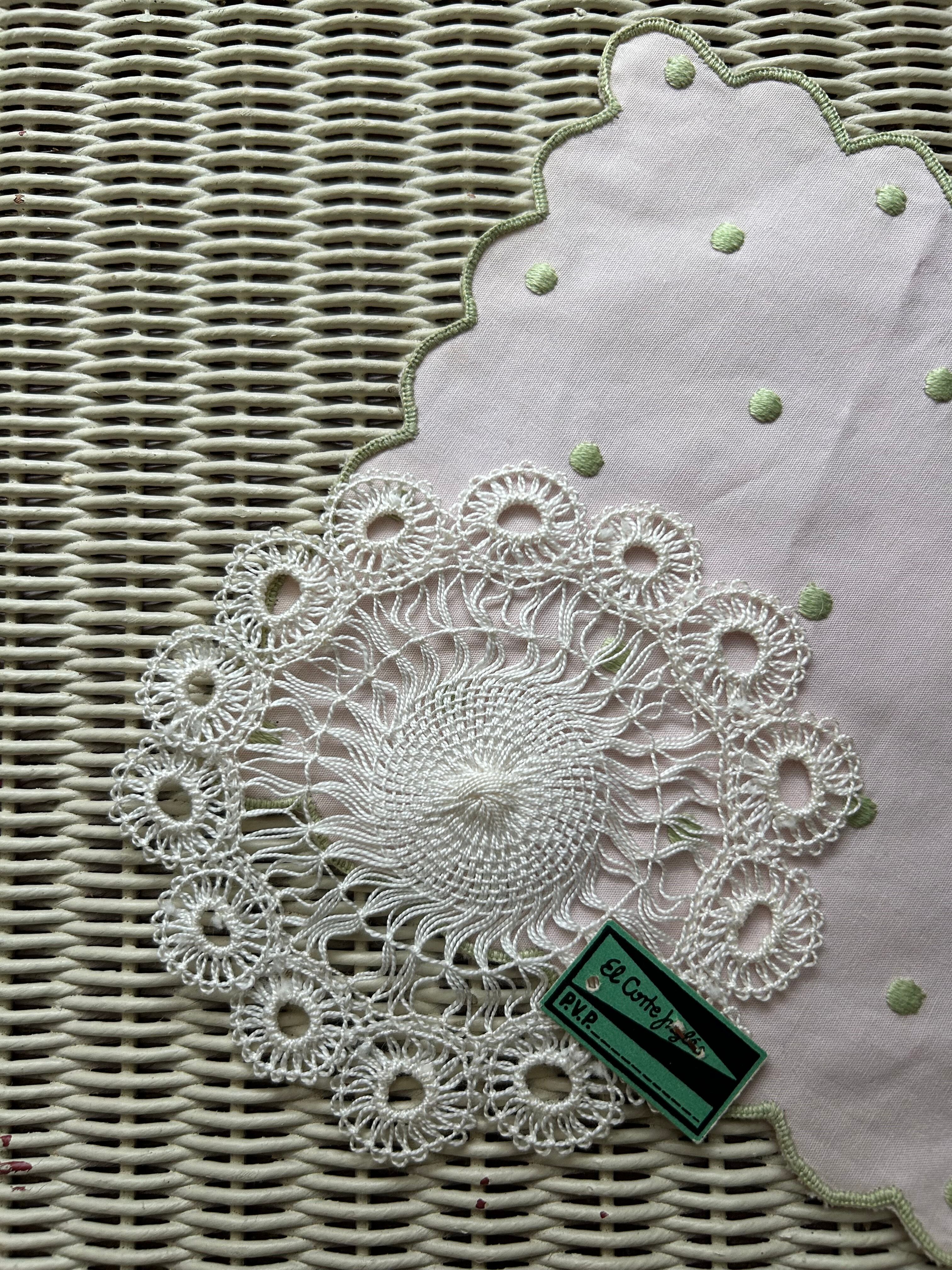 フランスVintage デッドストック ヘアピンレースドイリー タグ付 敷物 インテリア ハンドメイド素材