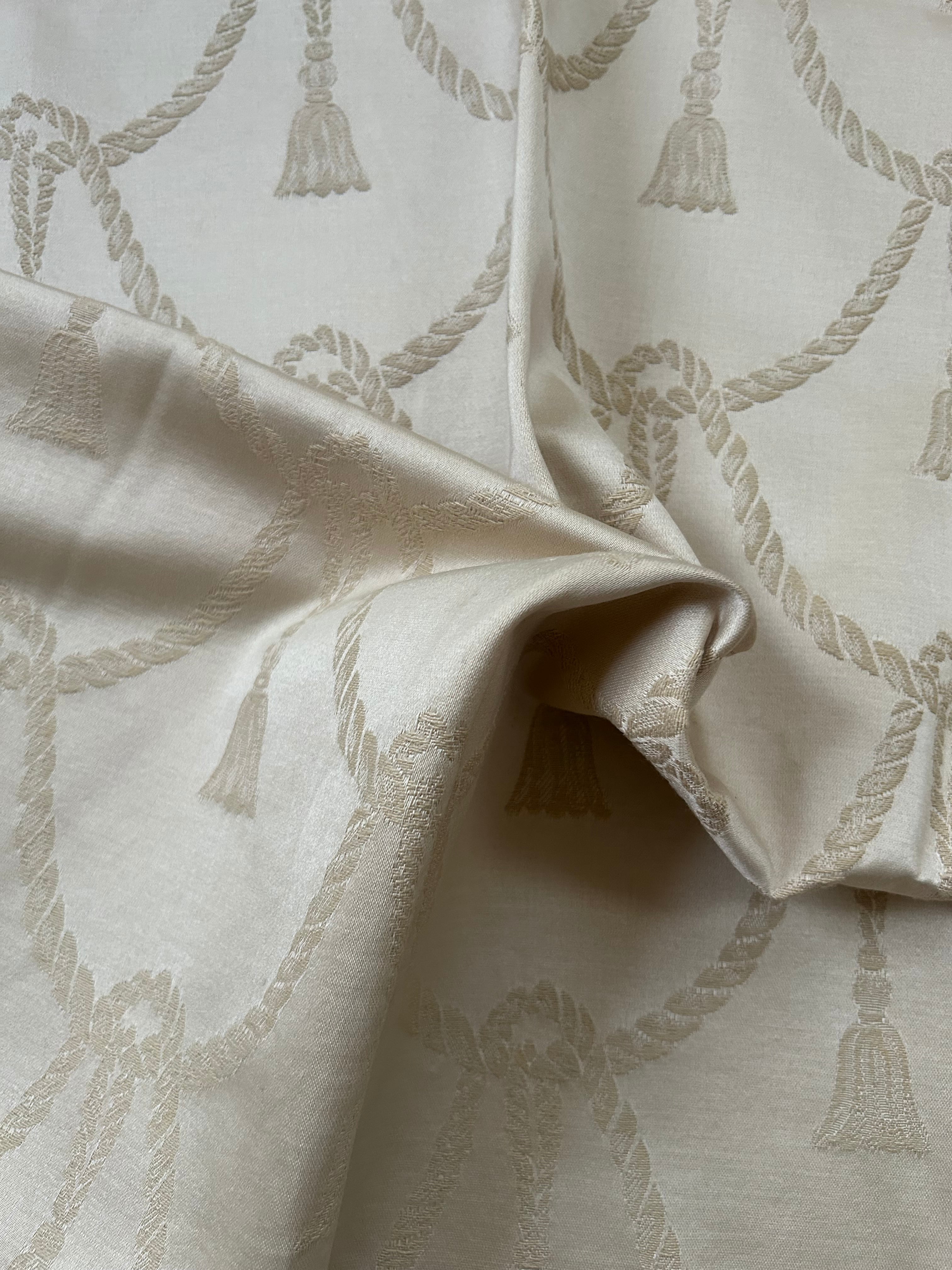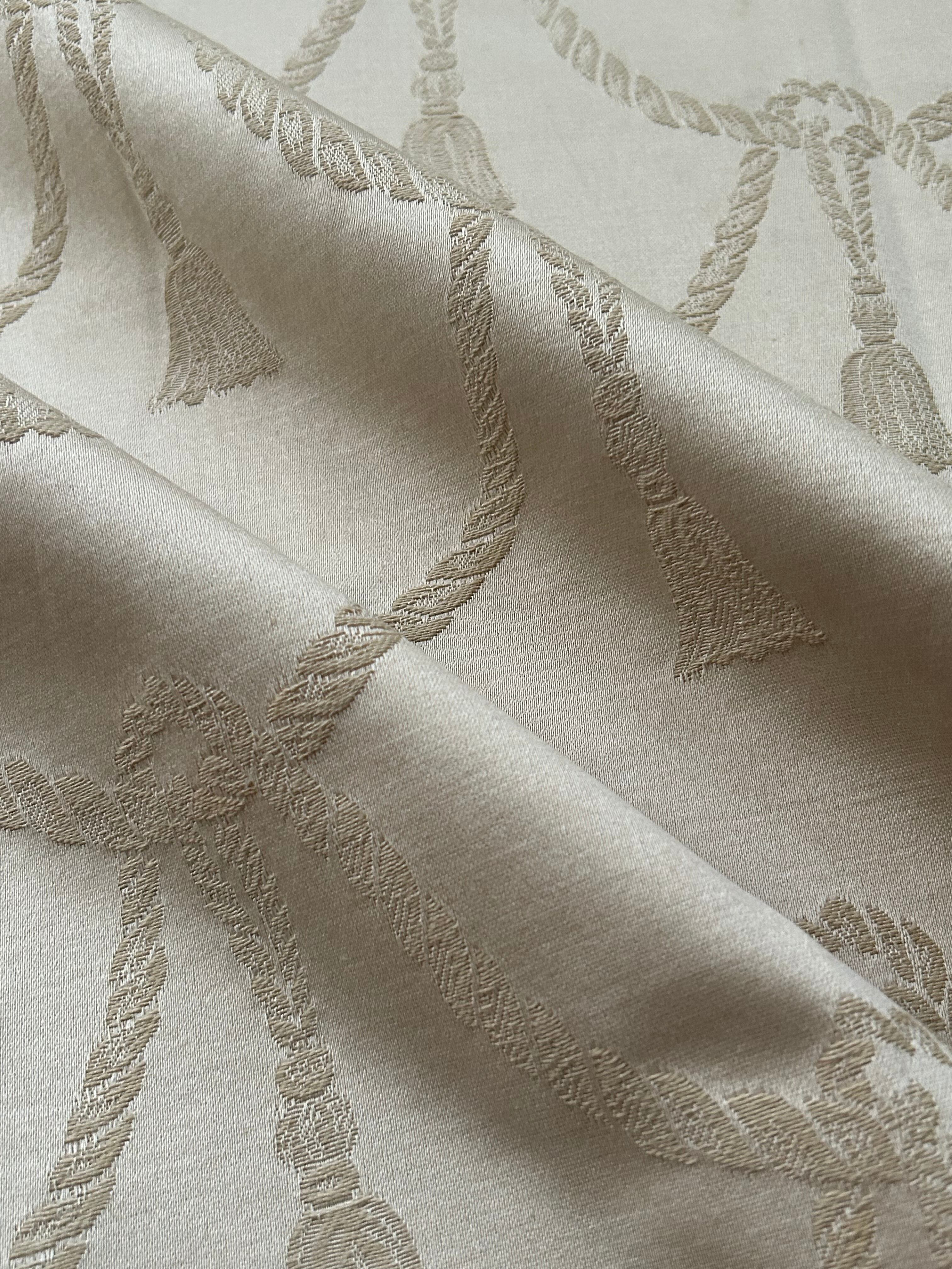 フランス アンティークファブリック タッセル柄 アイボリー インテリアファブリック カルトナージュ スツール