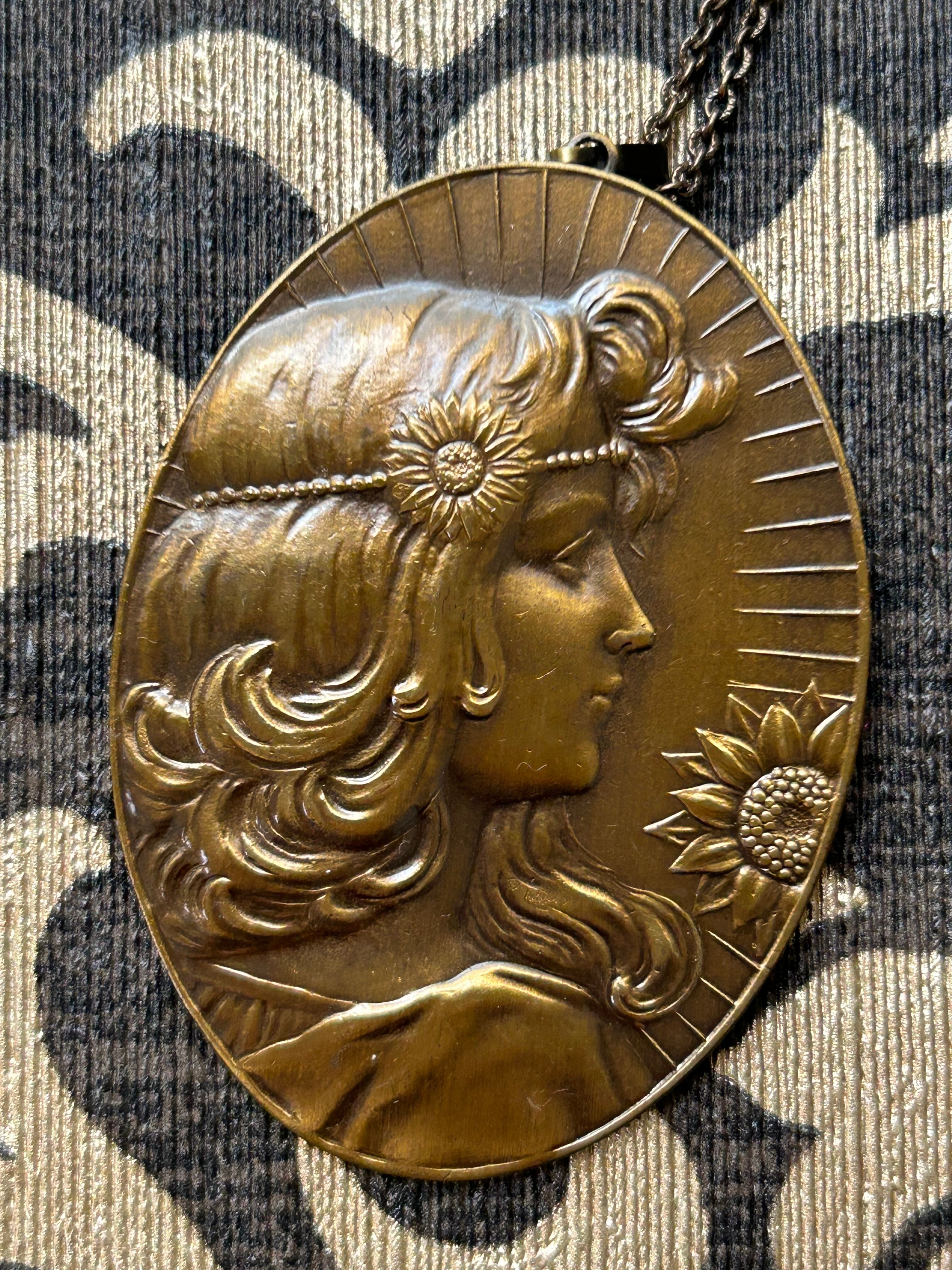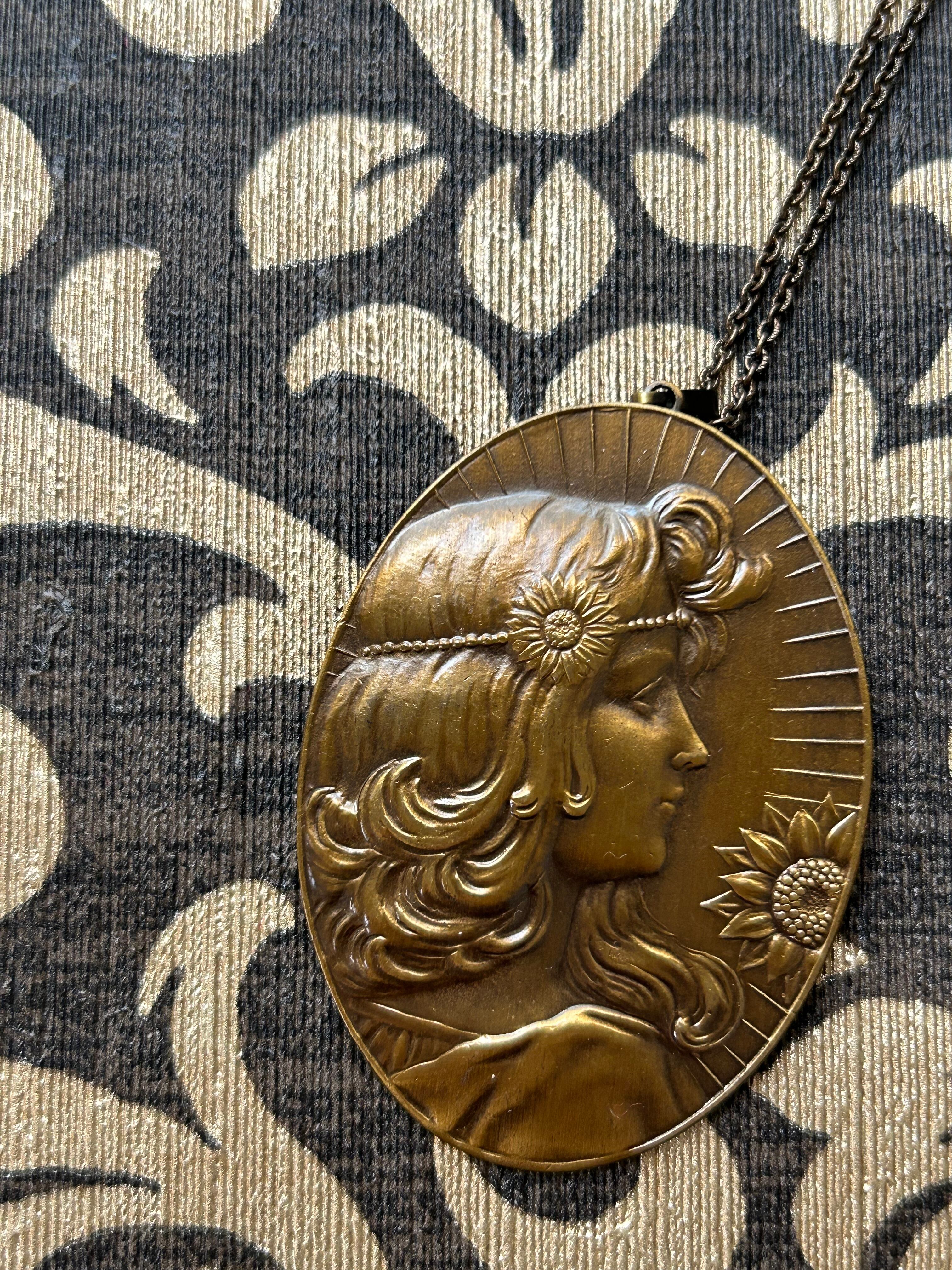 オーストリア Vintageネックレス カメオ風プレート エンボス デッドストック アクセサリー