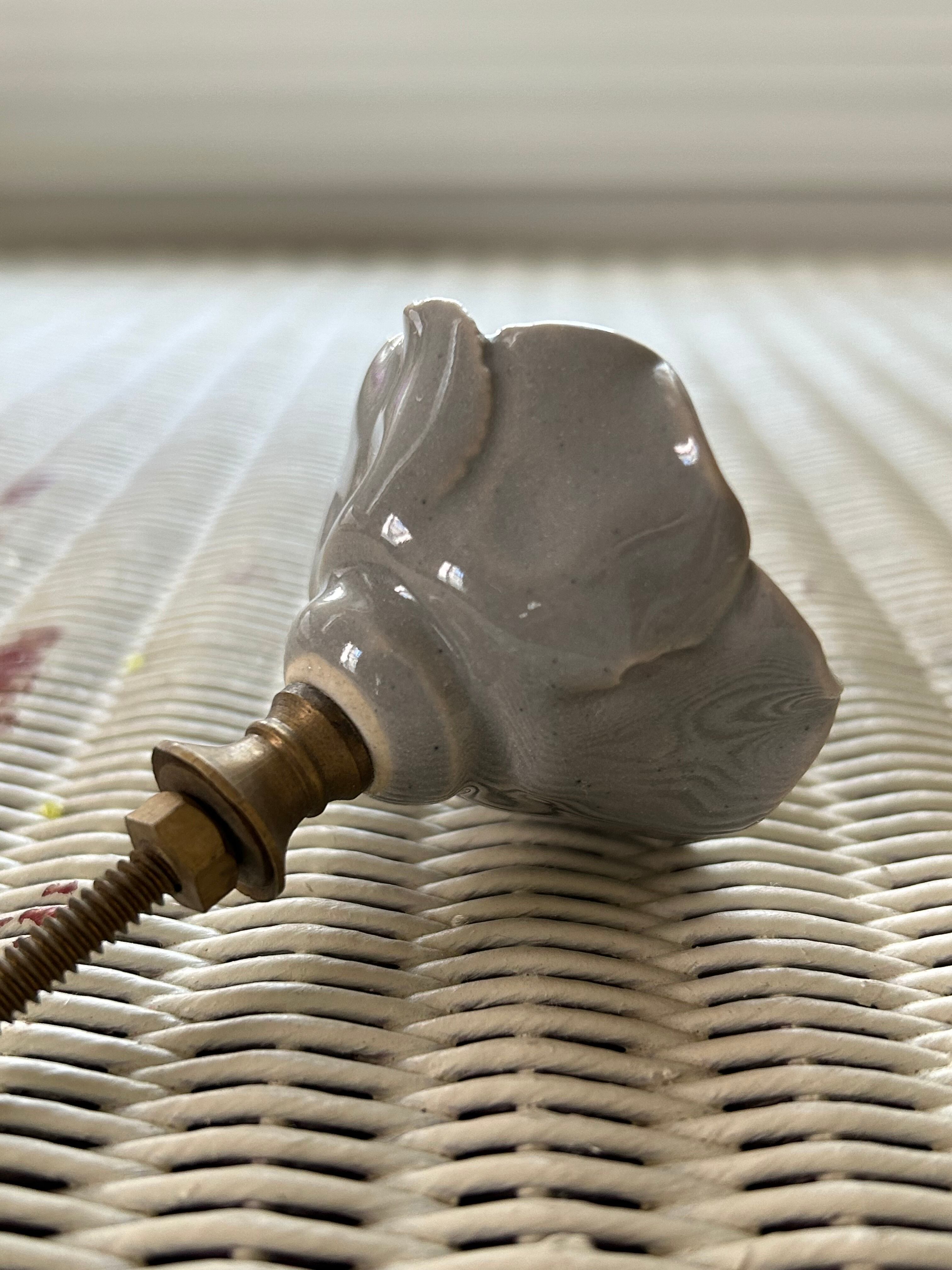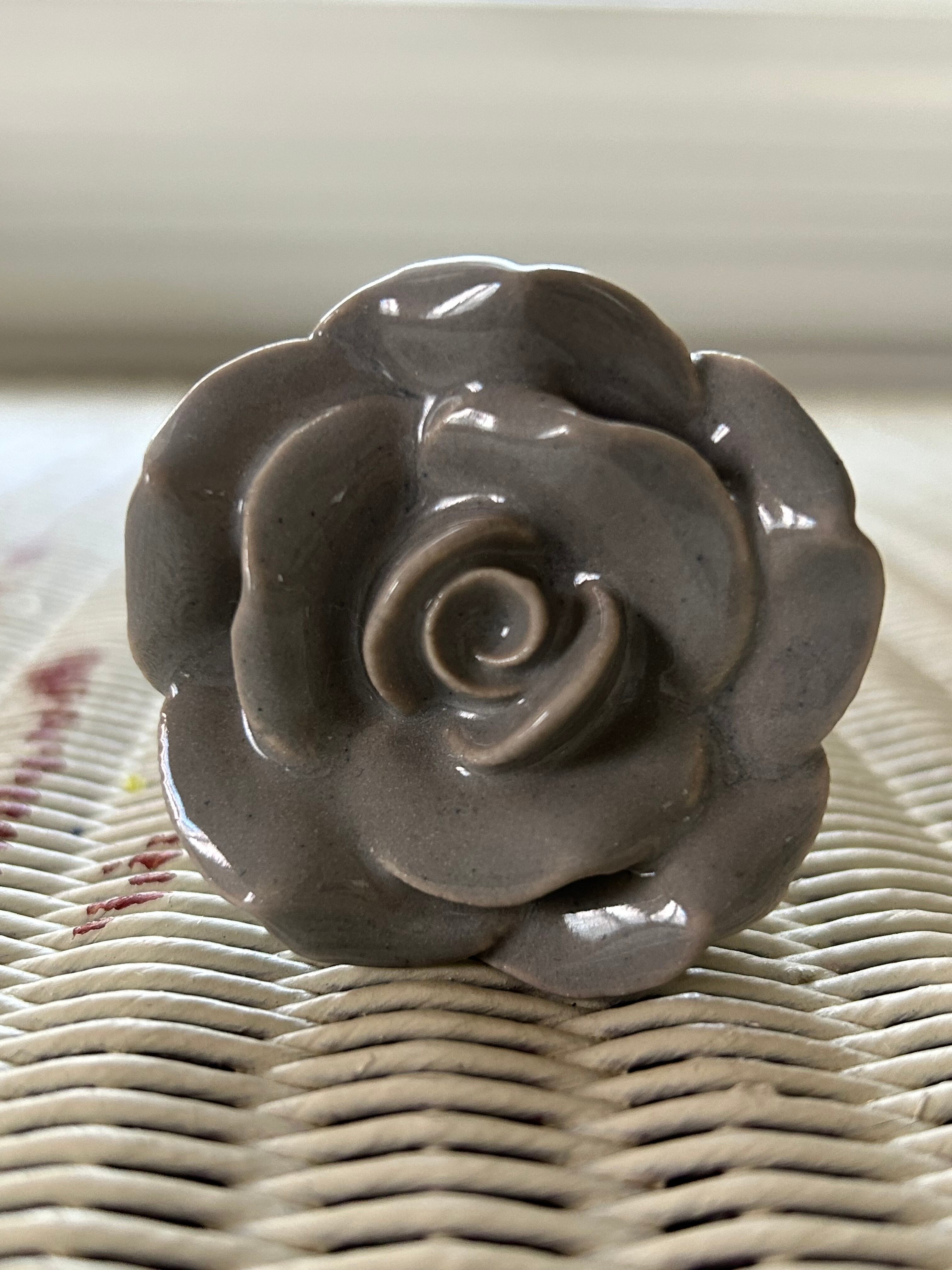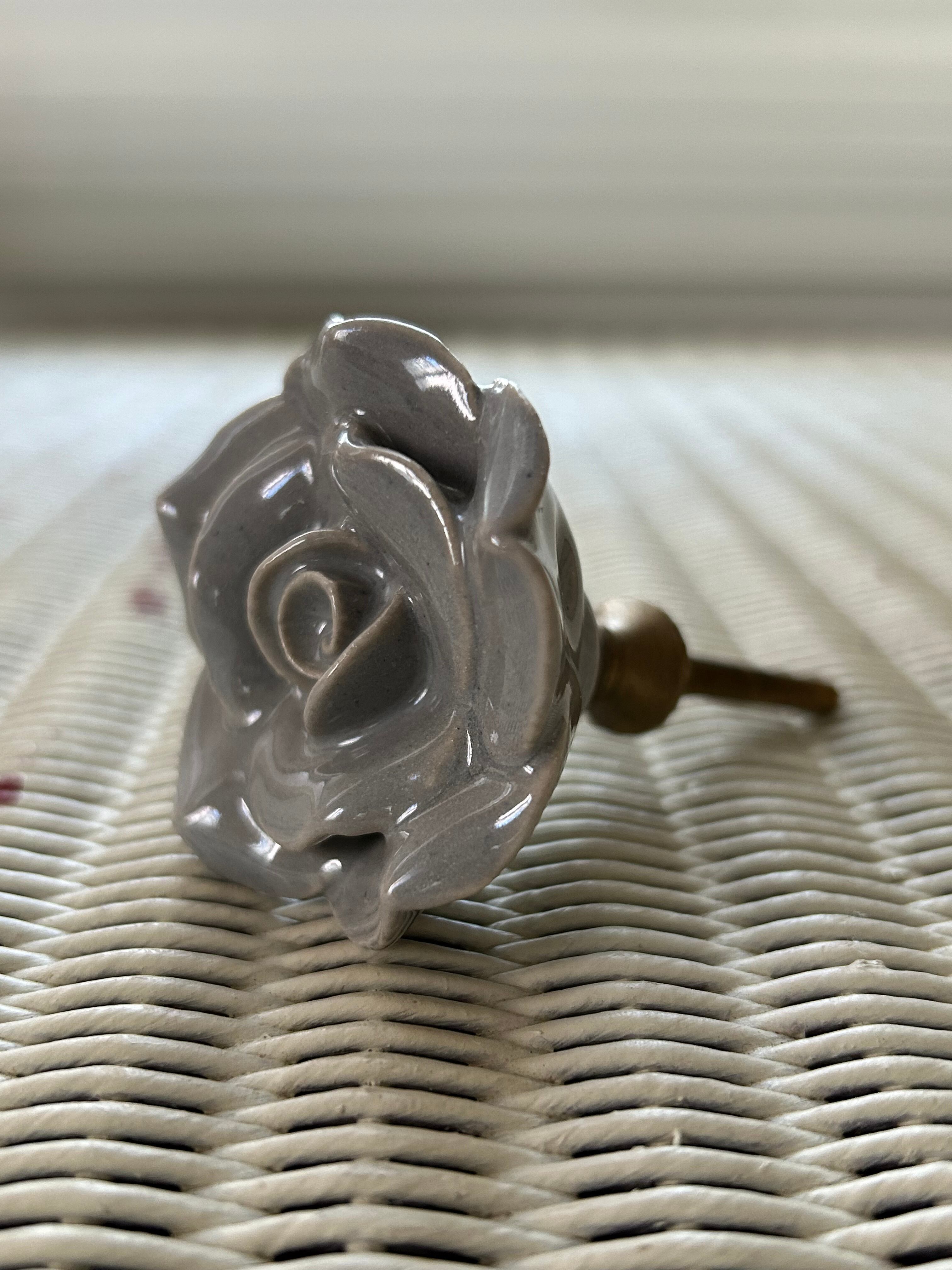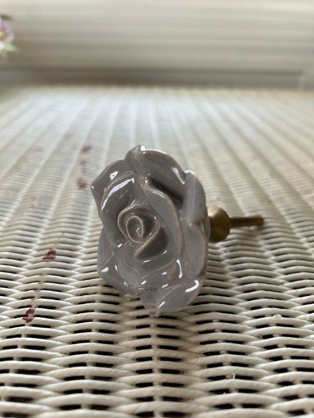 フランス 陶器の取っ手 つまみ Rose グレー シャビーシック パーツ ハンドメイド リメイク