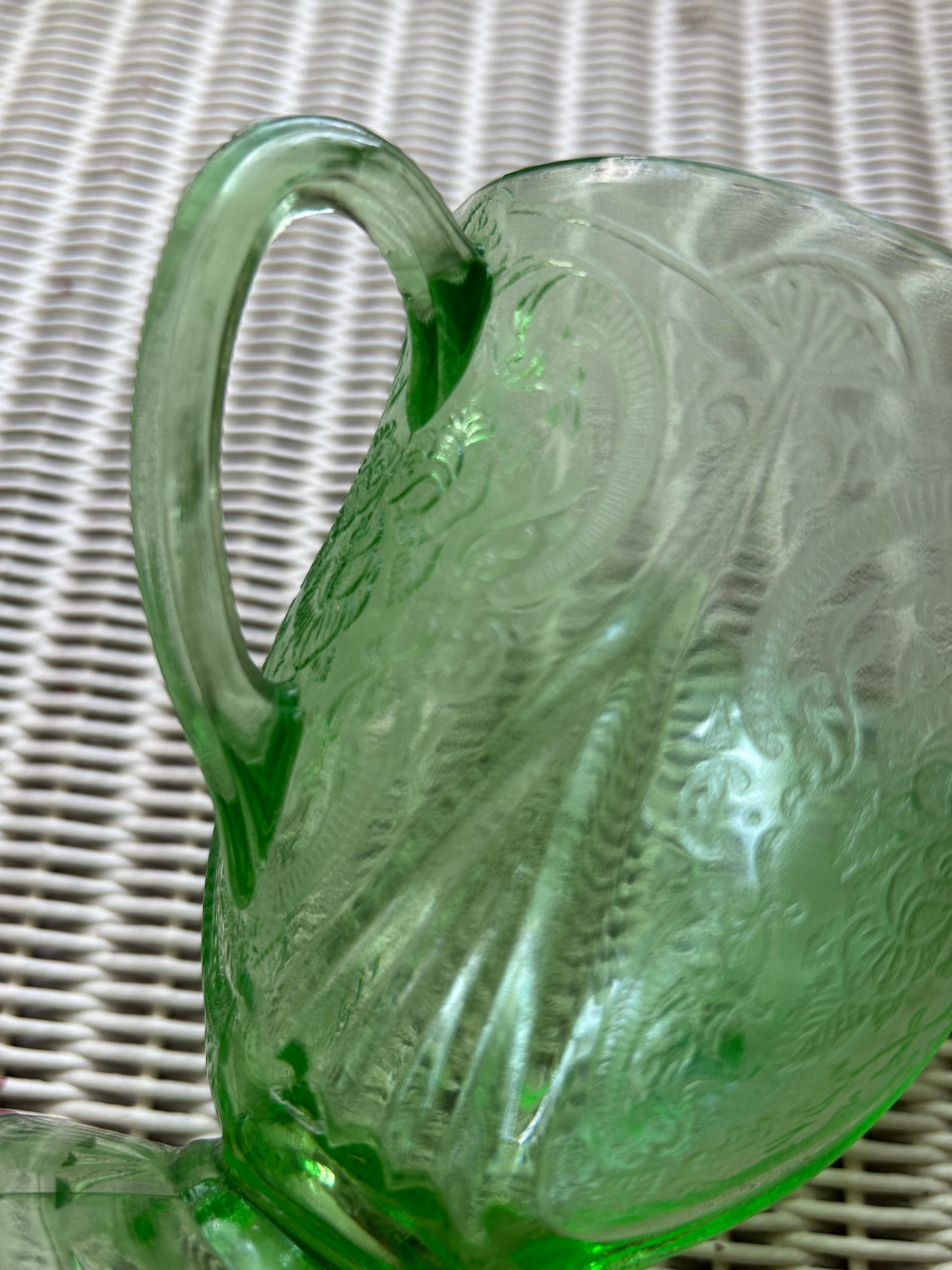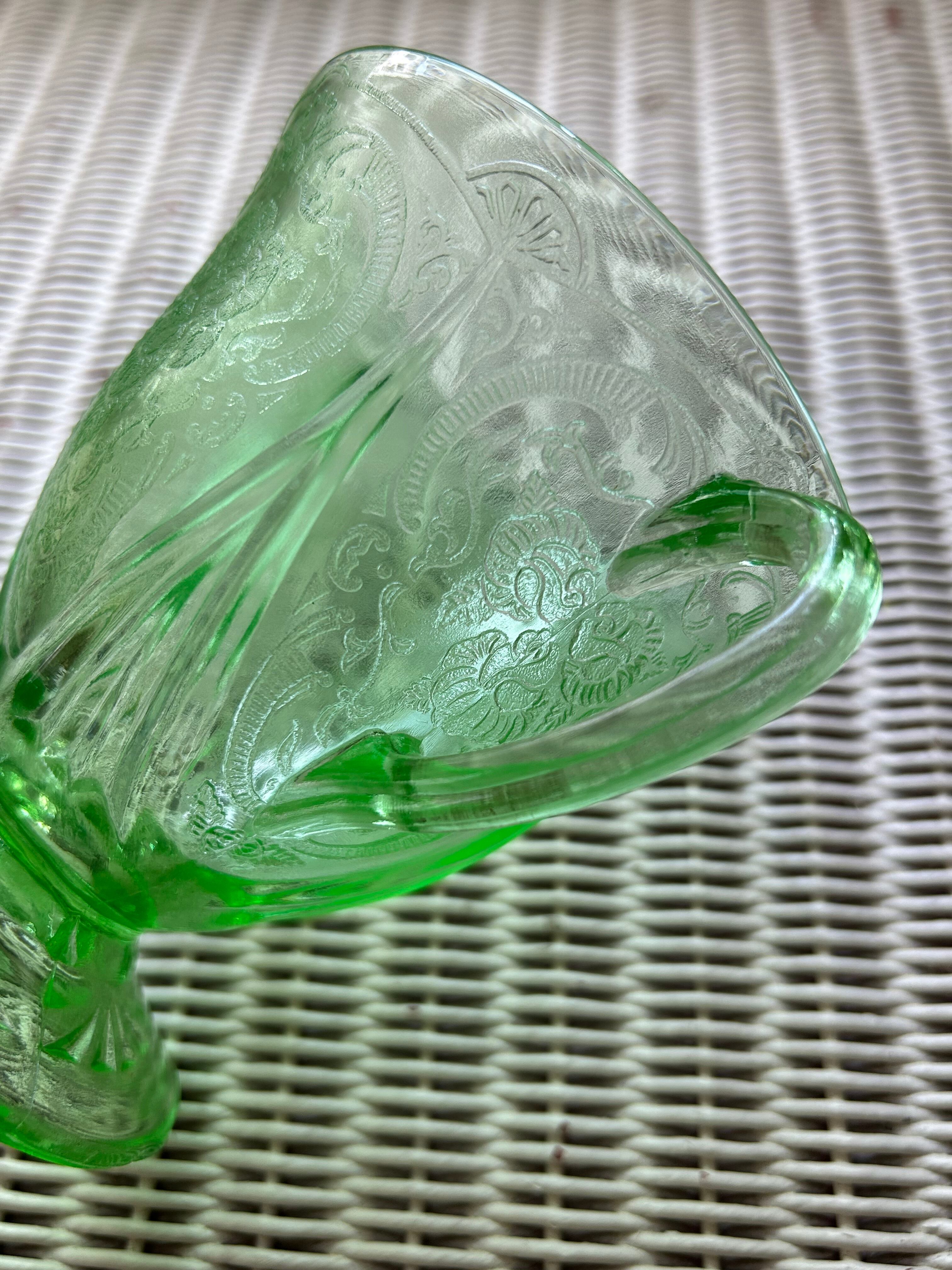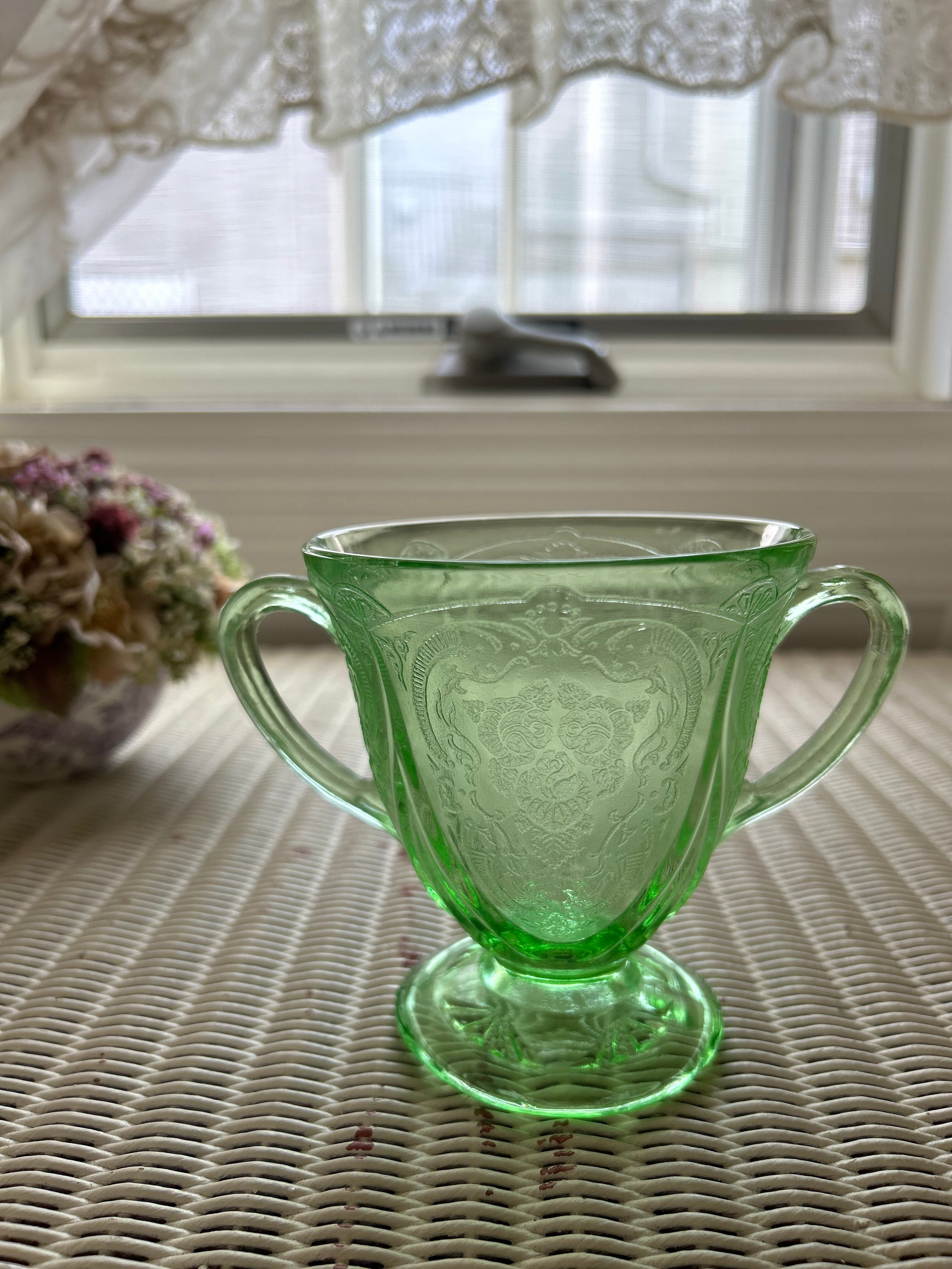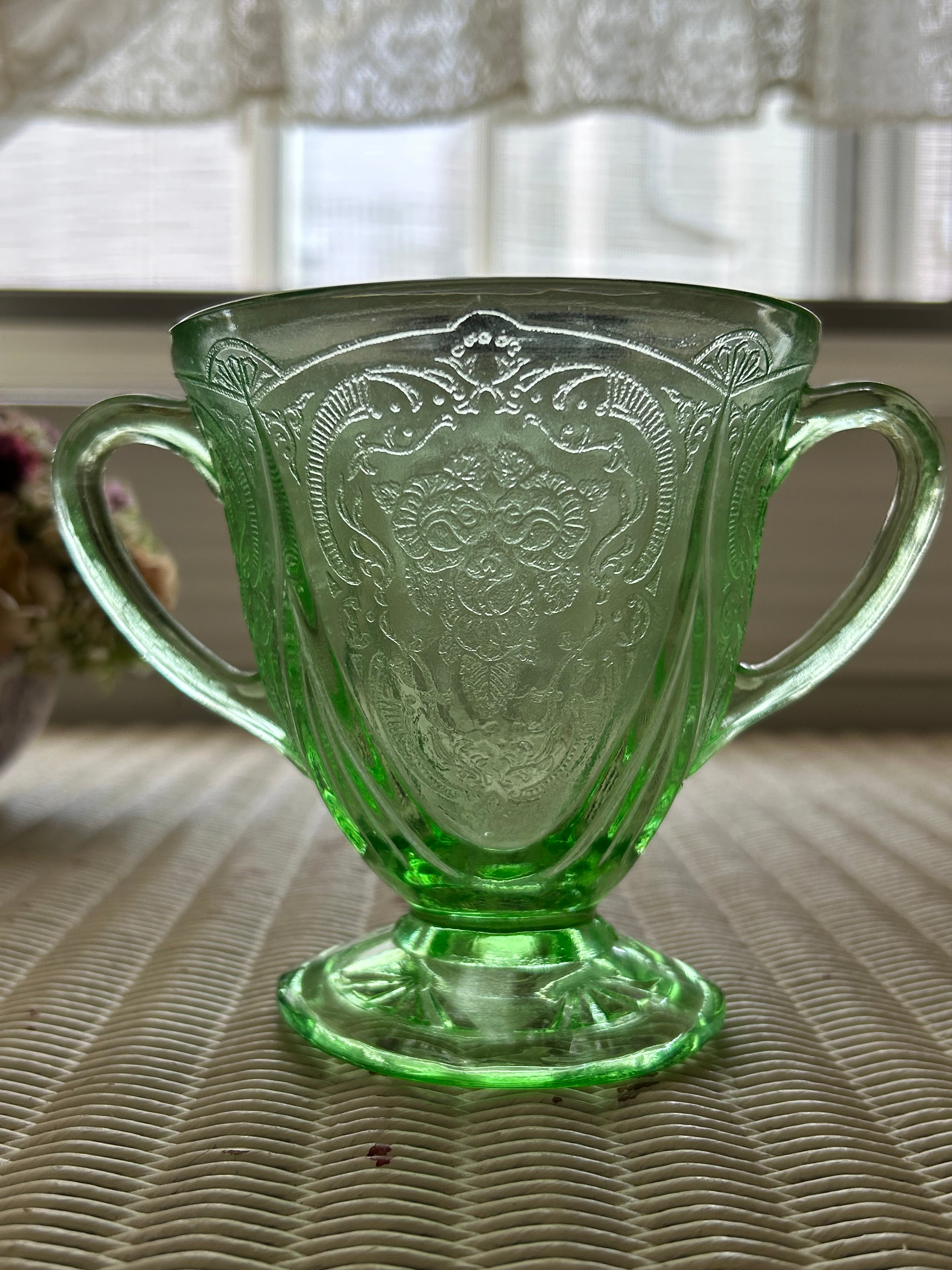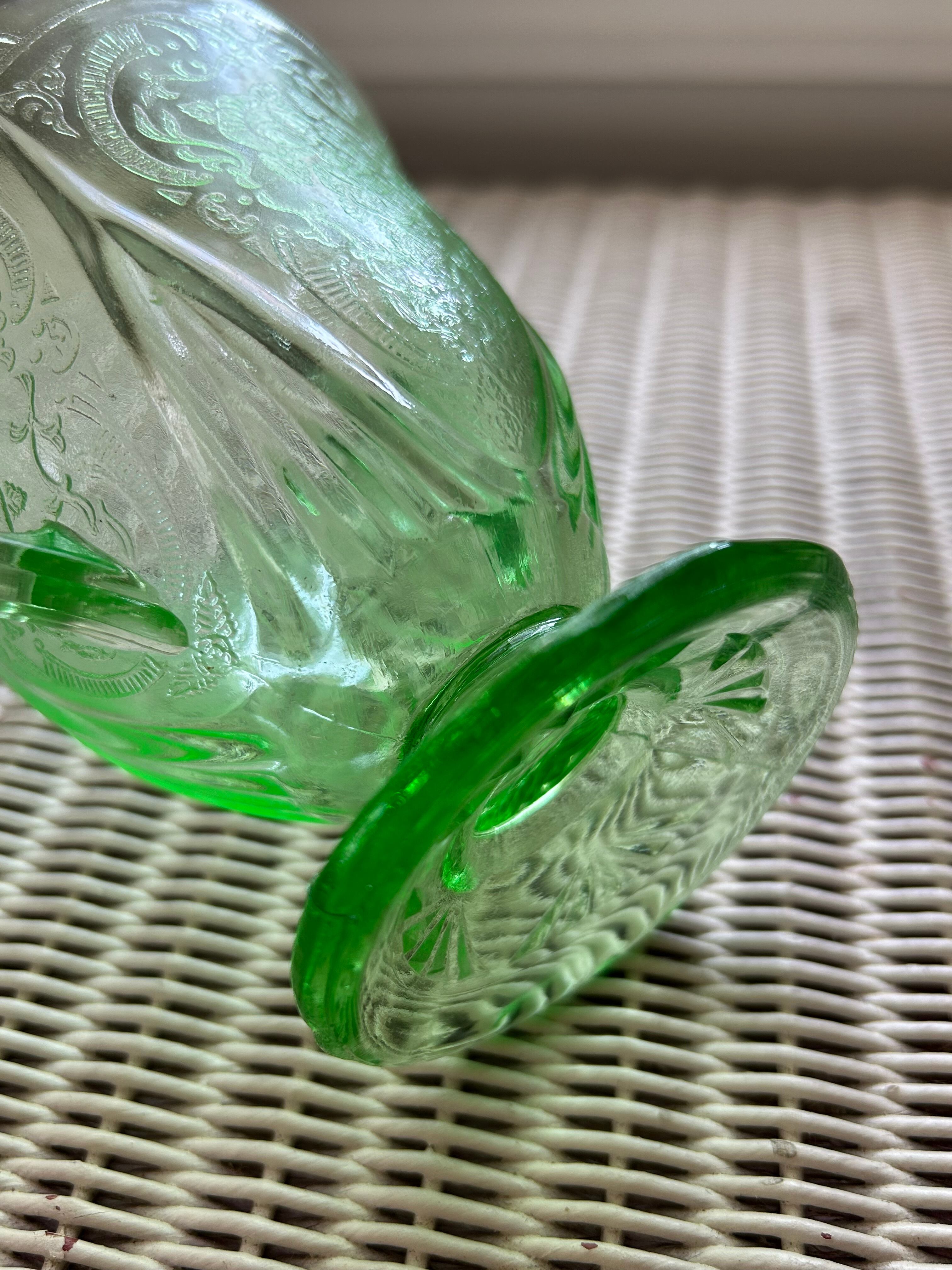 米国アンティーク Hazel-Atlas ヘーゼルアトラス ロイヤルレース グリーン ディプレッションガラス 1930年代 シュガーポット フラワーベース インテリア