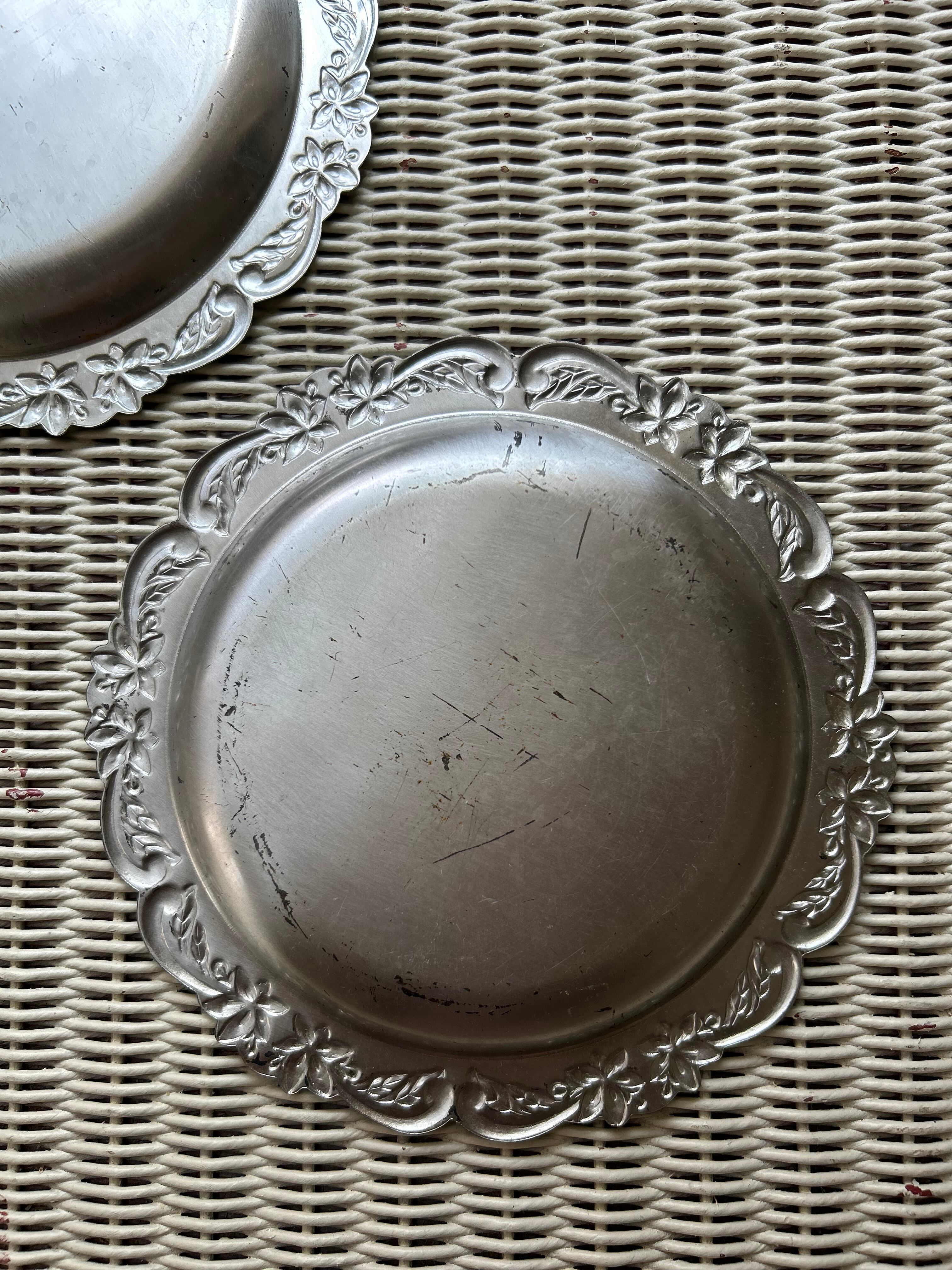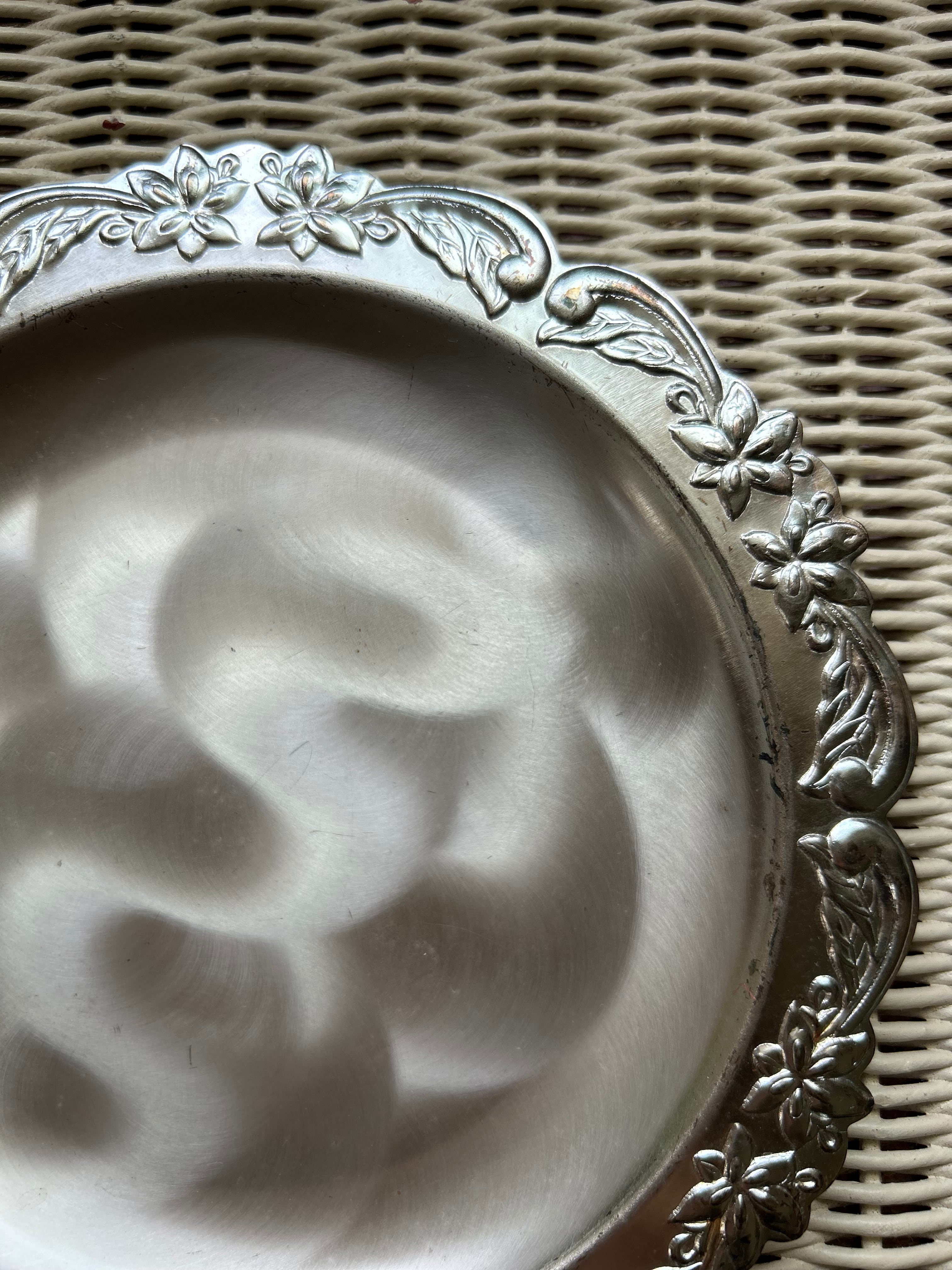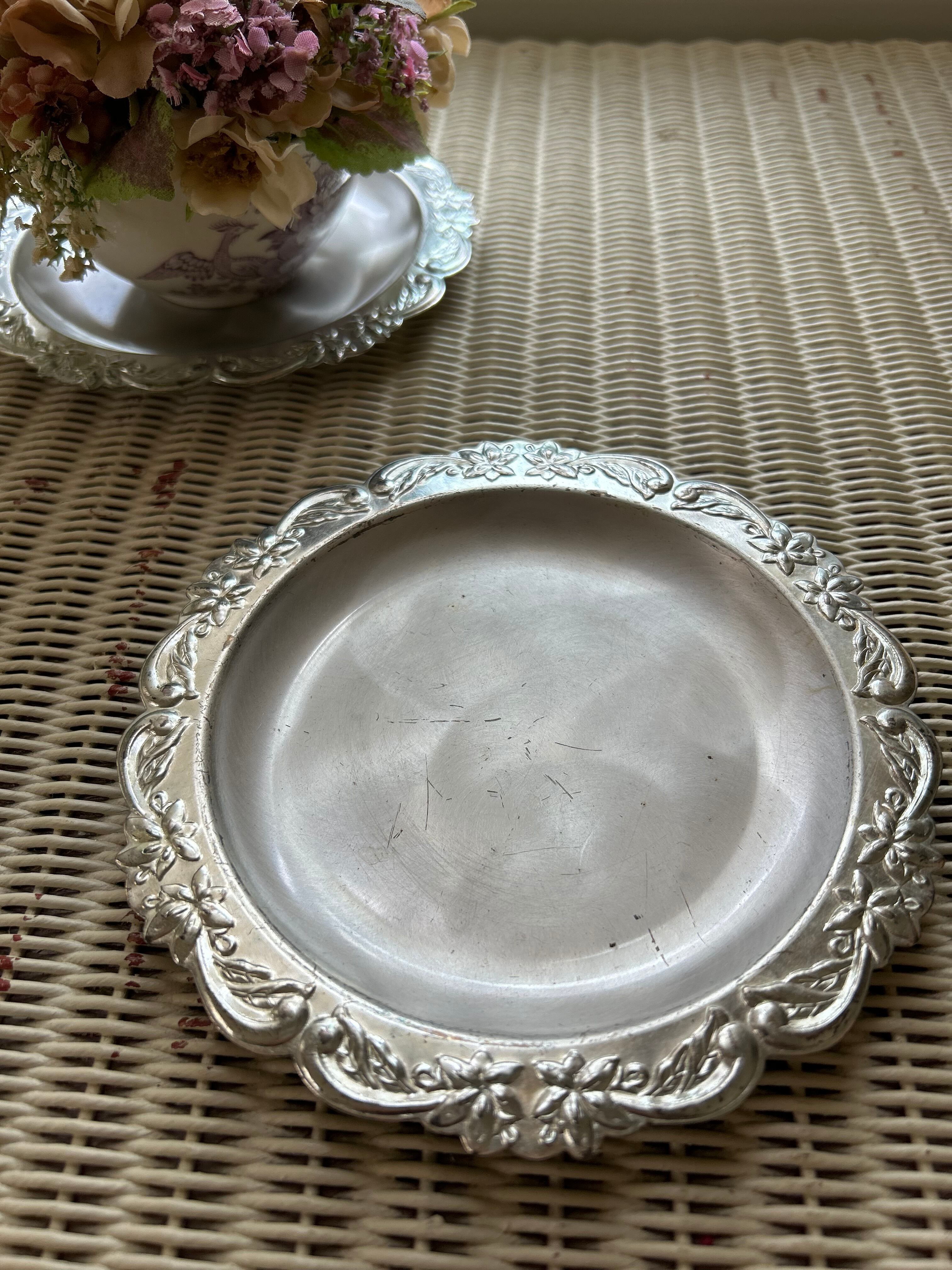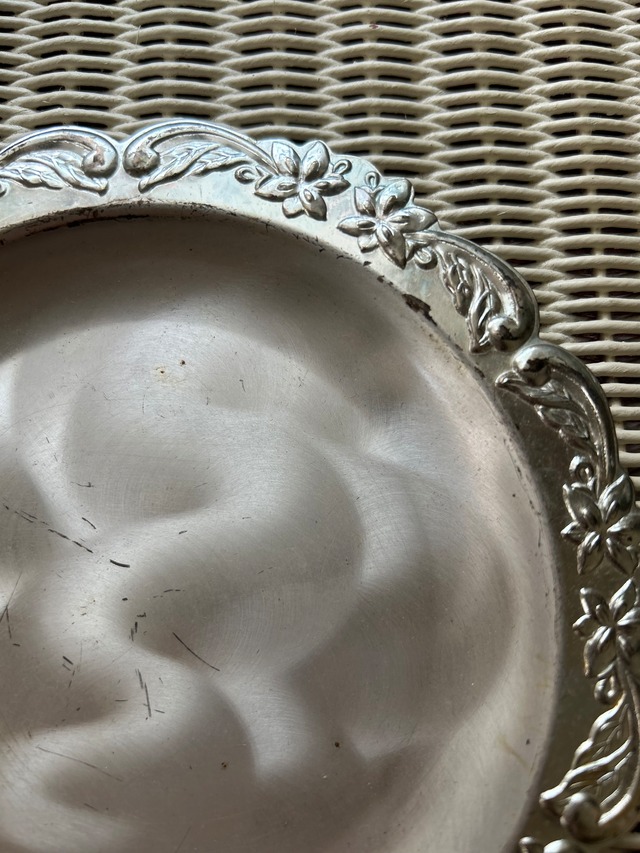 SALE Japanese Vintage 昭和レトロ ステンレス エンボス柄 受け皿 小物入れ ディスプレイ 鉢受け