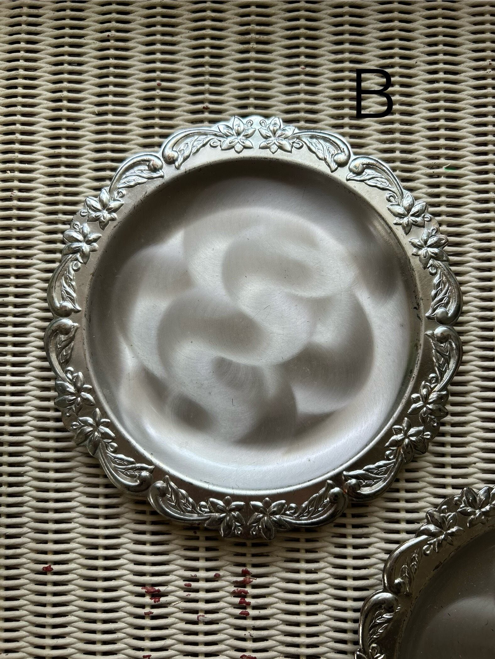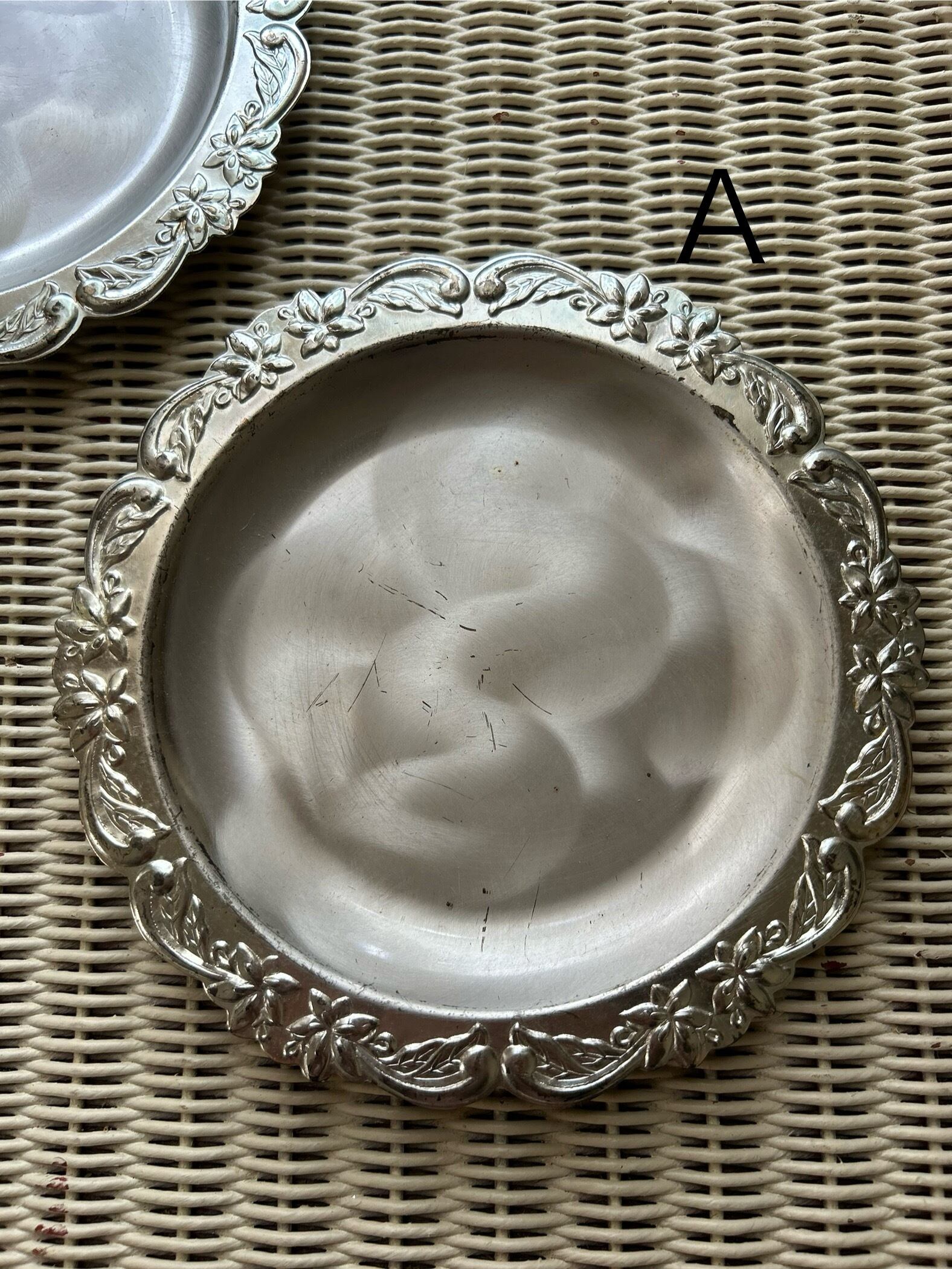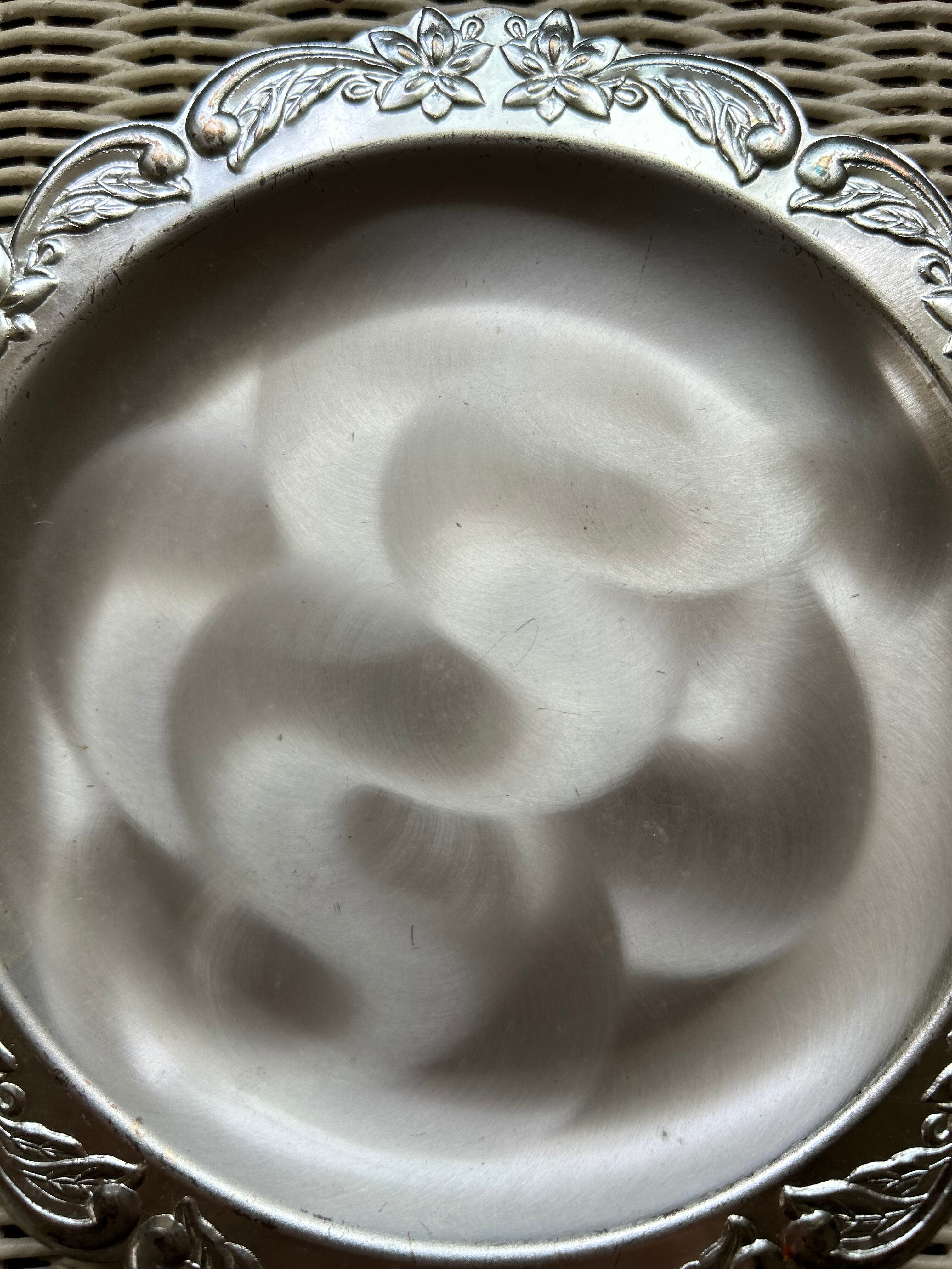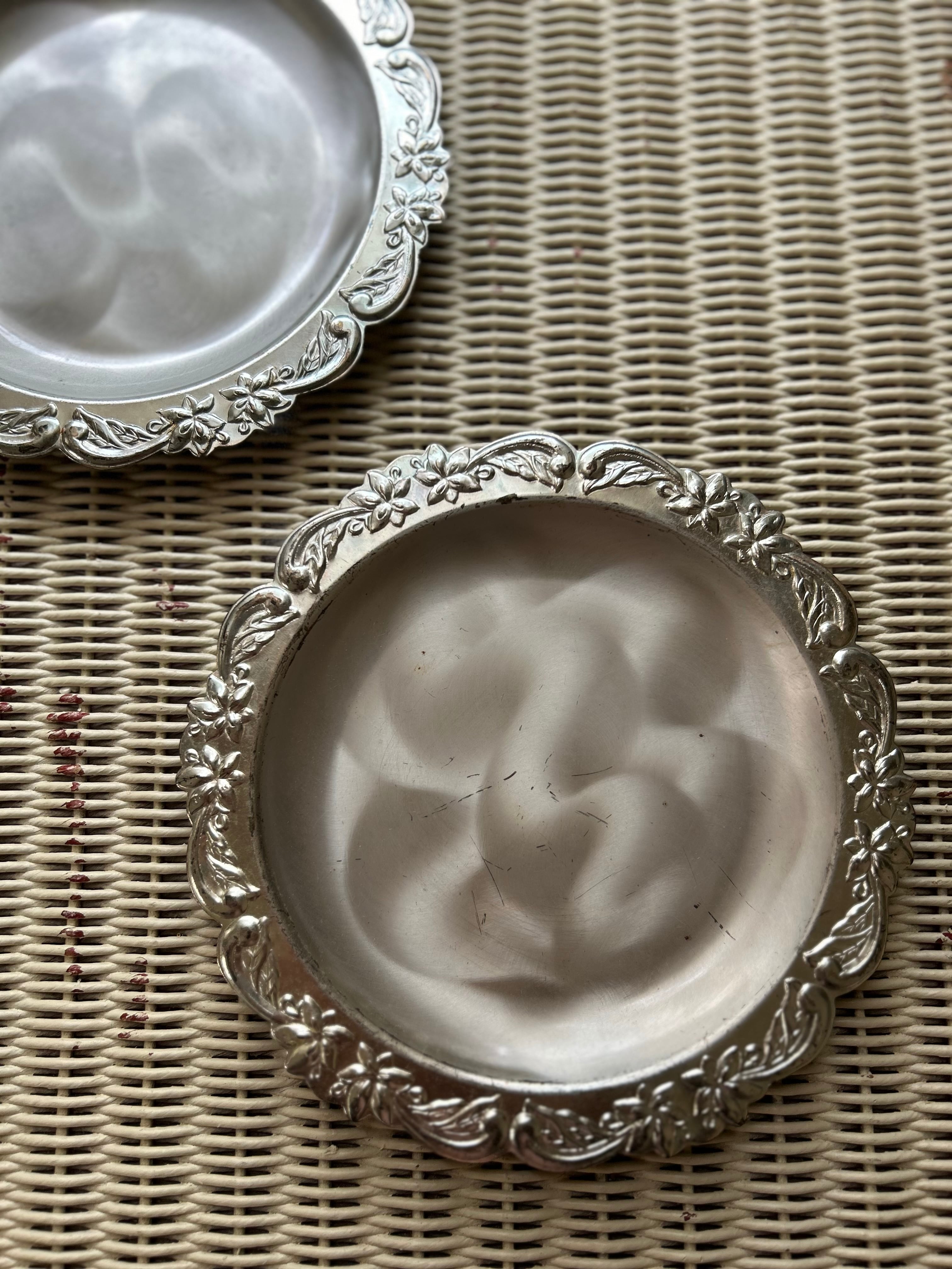 SALE Japanese Vintage 昭和レトロ ステンレス エンボス柄 受け皿 小物入れ ディスプレイ 鉢受け