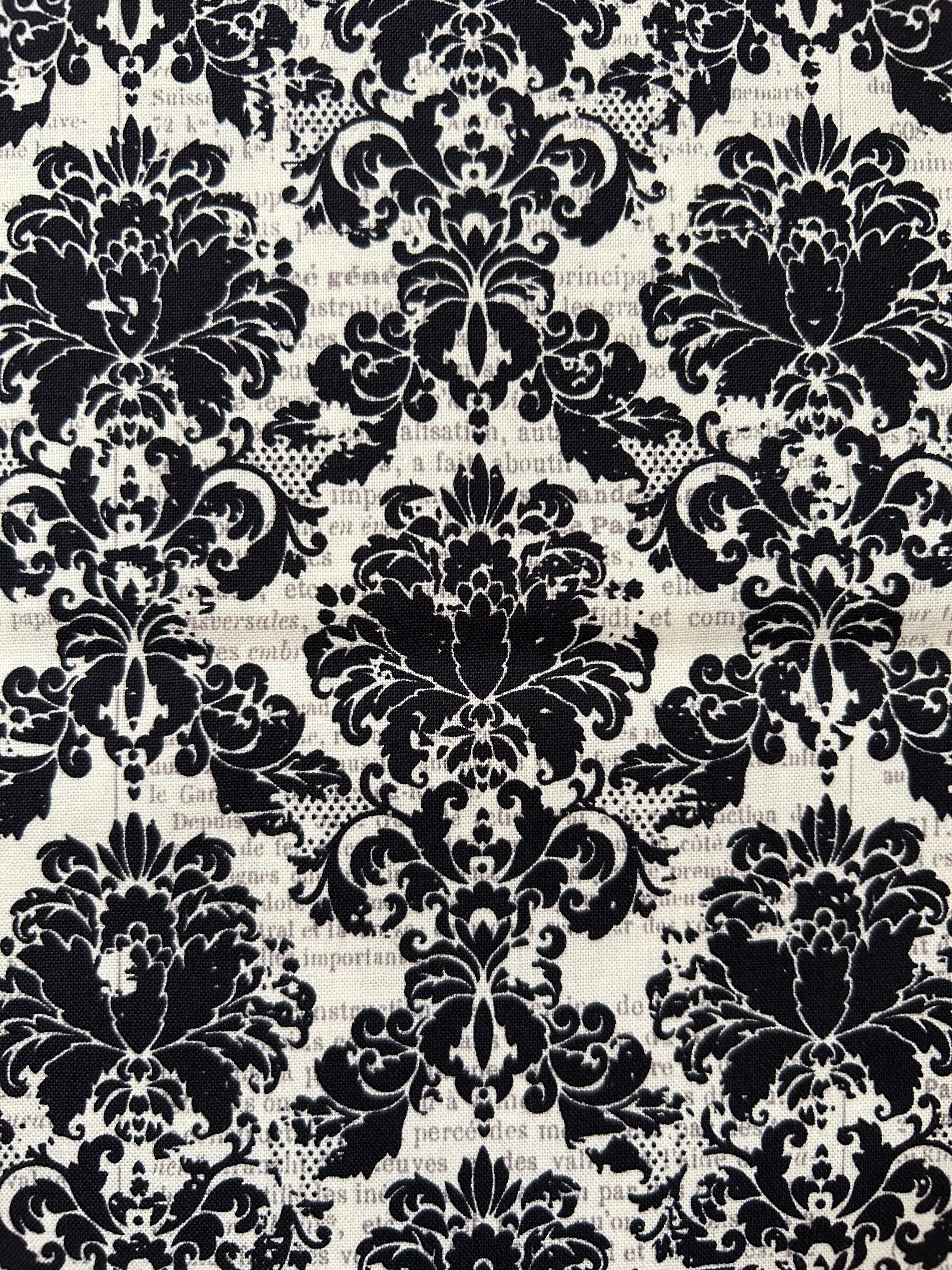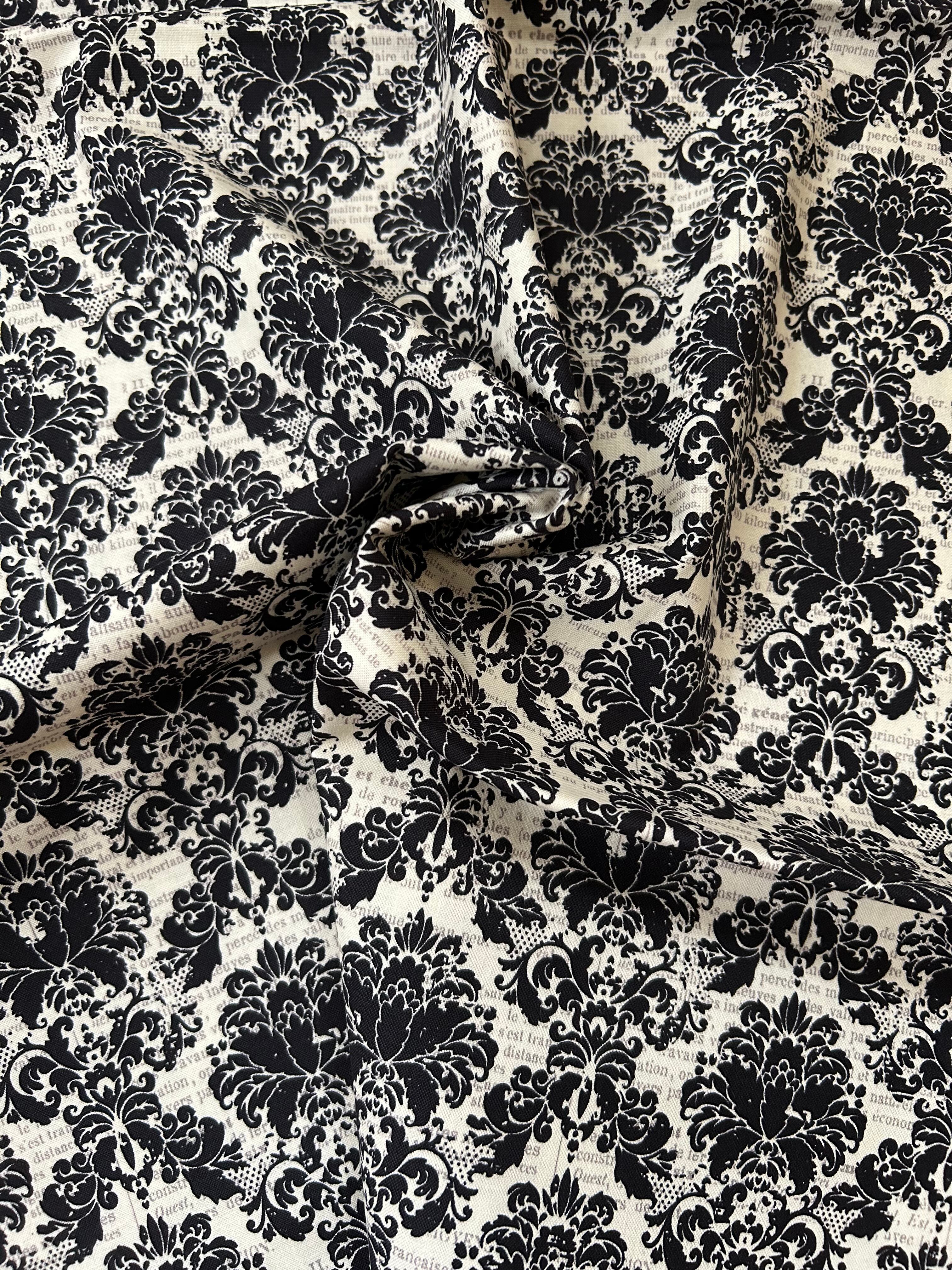 輸入コットンファブリック ダマスク柄×英字 USAファブリック カルトナージュ