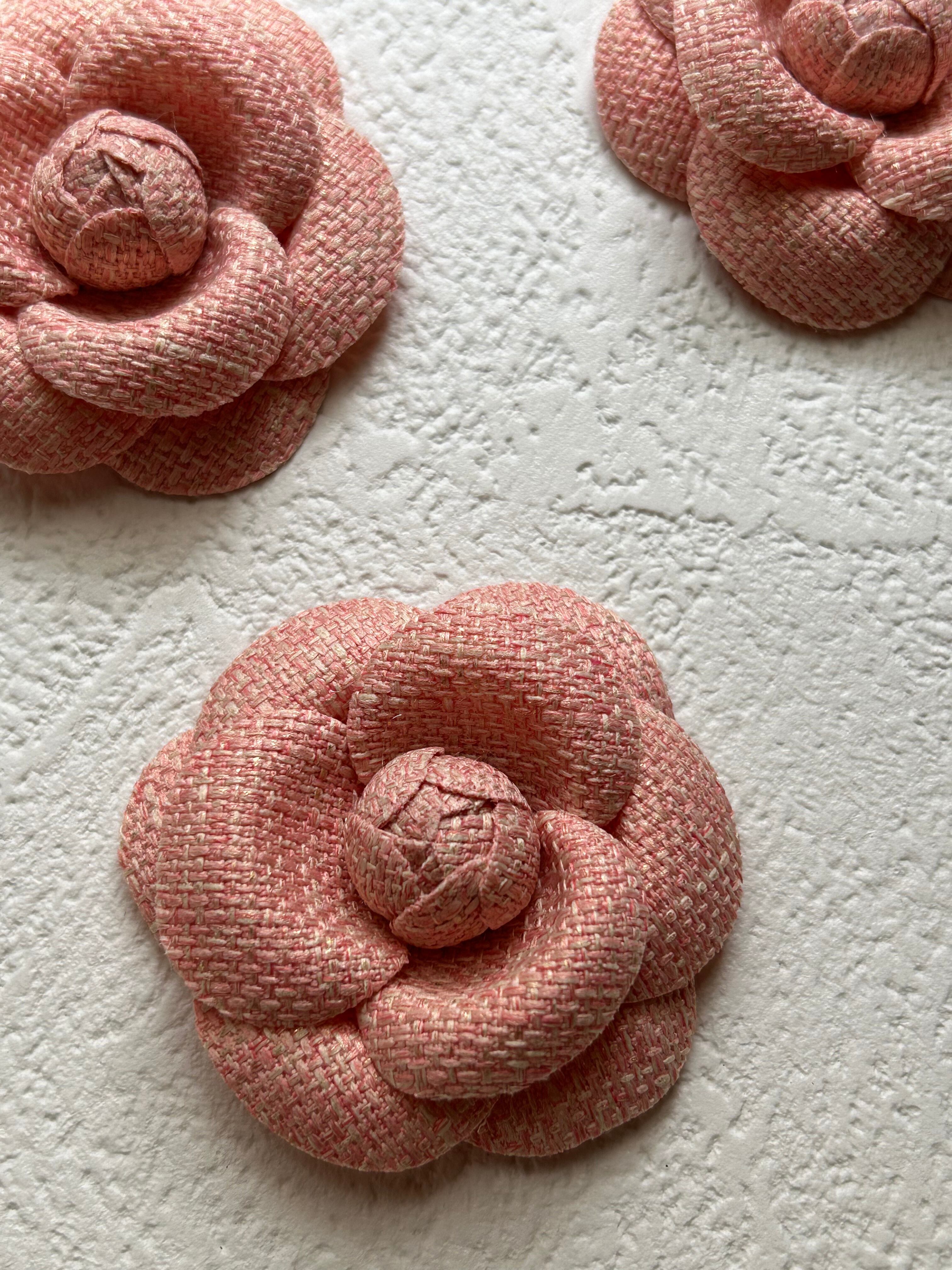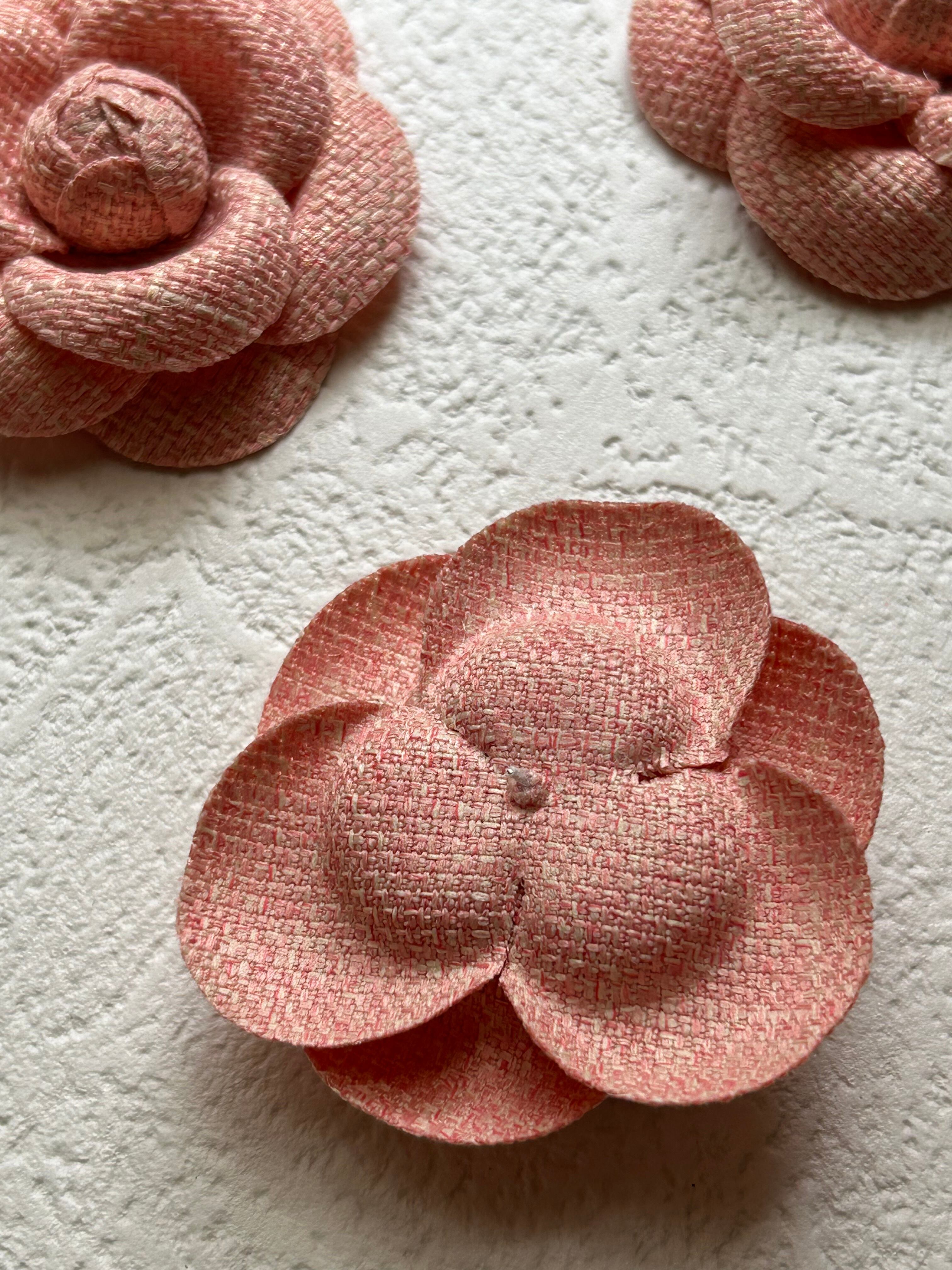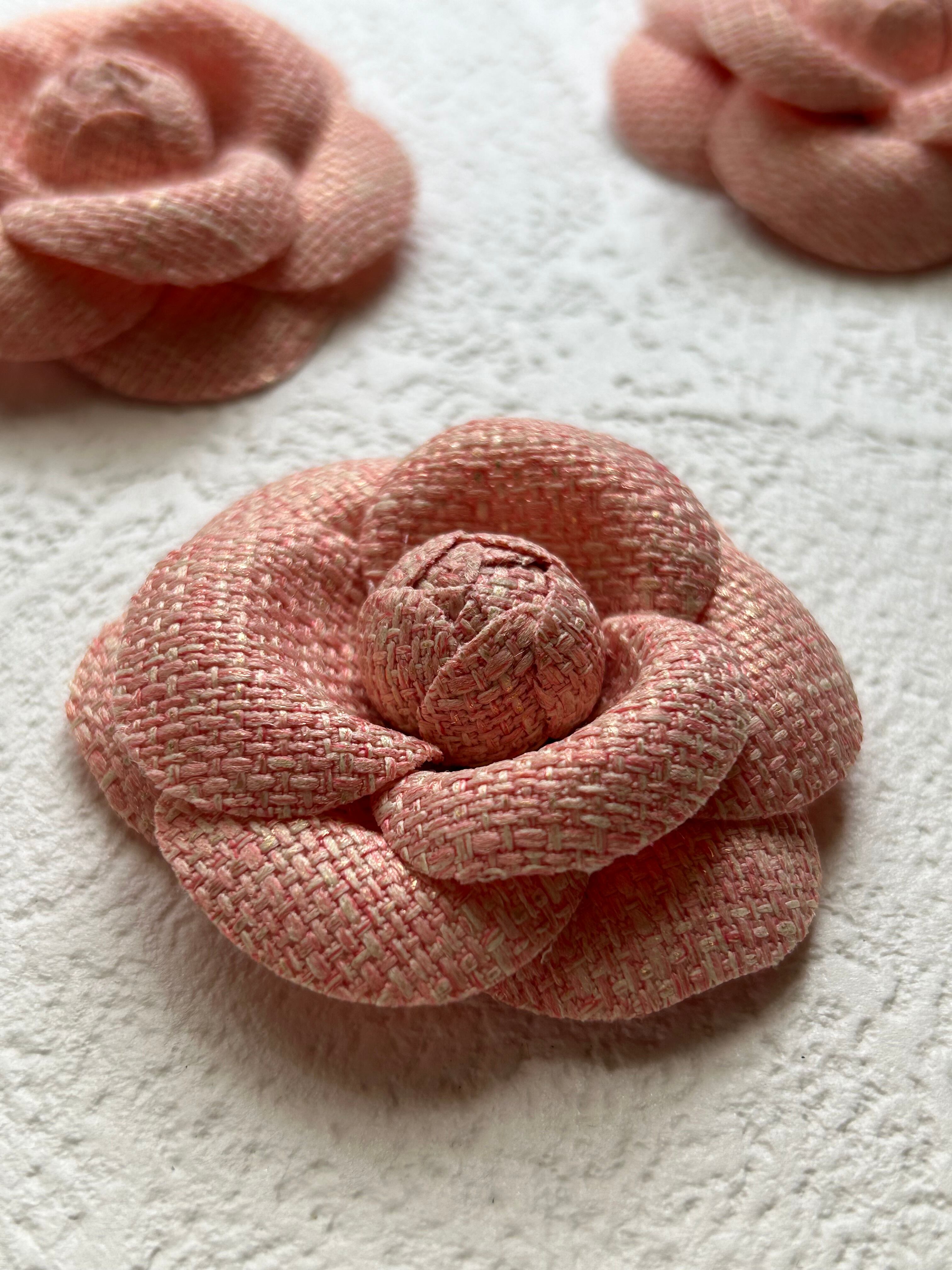 輸入デザインパーツ カメリア ツイード調 ピンク カルトナージュ ヘアーアクセサリー シューズクリップ