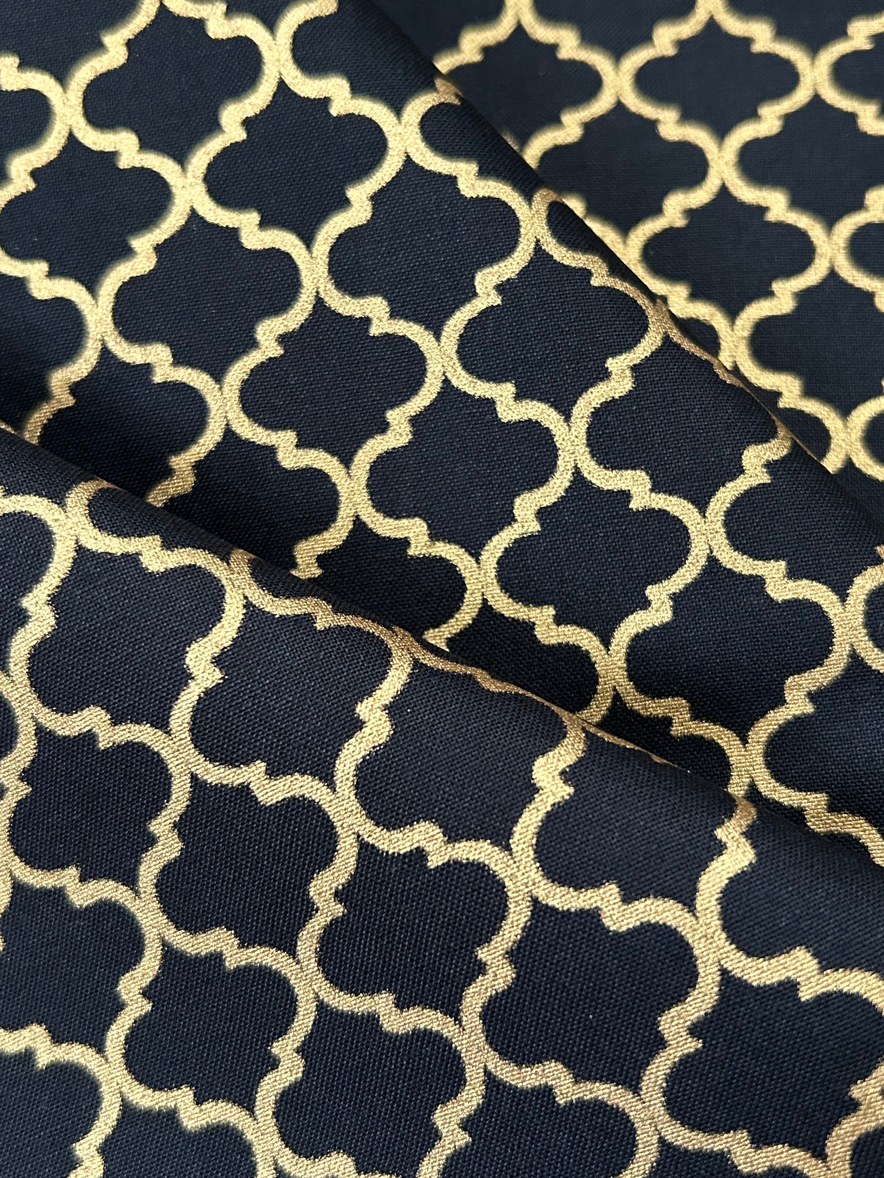 輸入コットンファブリック モロッカン柄 ブラック×ゴールド USAファブリック カルトナージュ