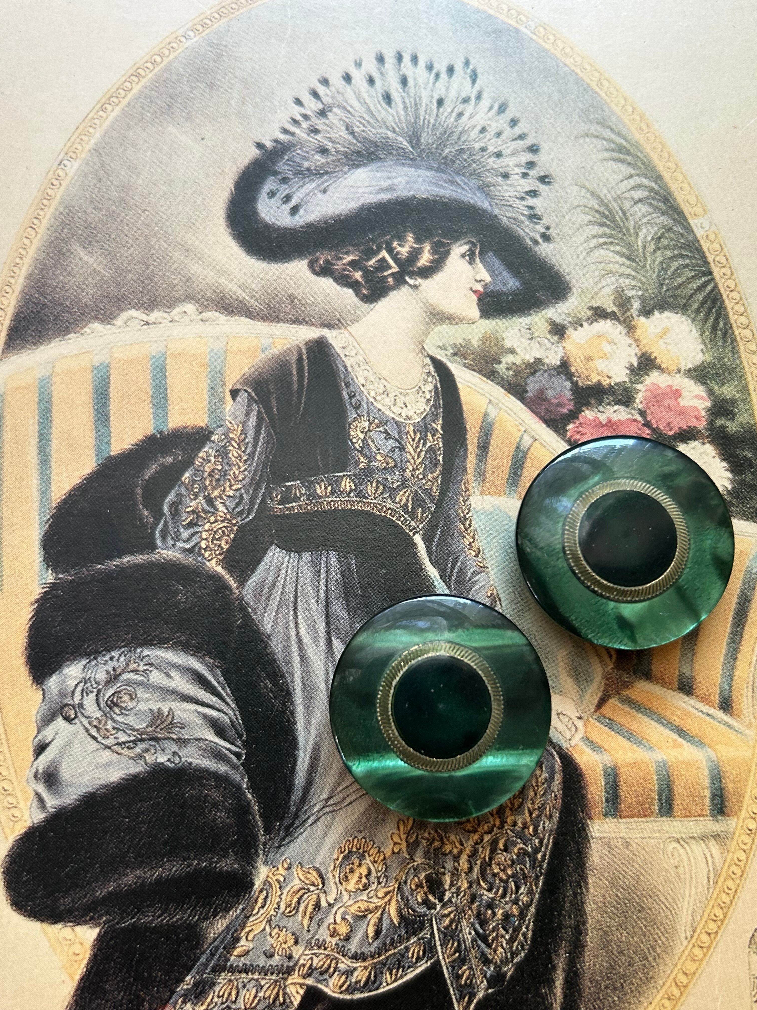 イタリアVintage ボタン オーロラグリーン 27mm アクセサリーパーツ カルトナージュ デコレーション材