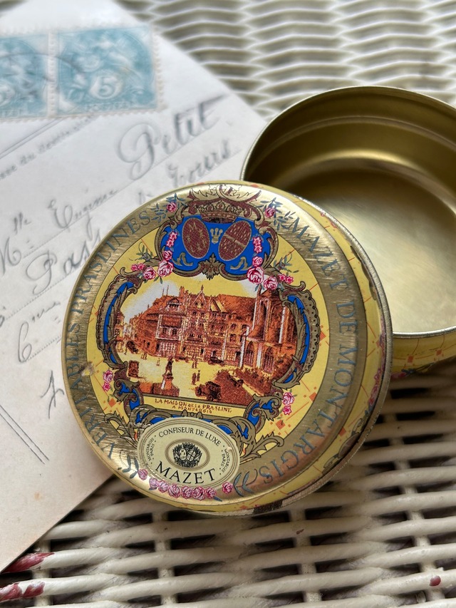 フランス ブロカント MAZET DE MONTARGIS マゼ ミニTin缶 小物入れ 撮影小物 インテリア