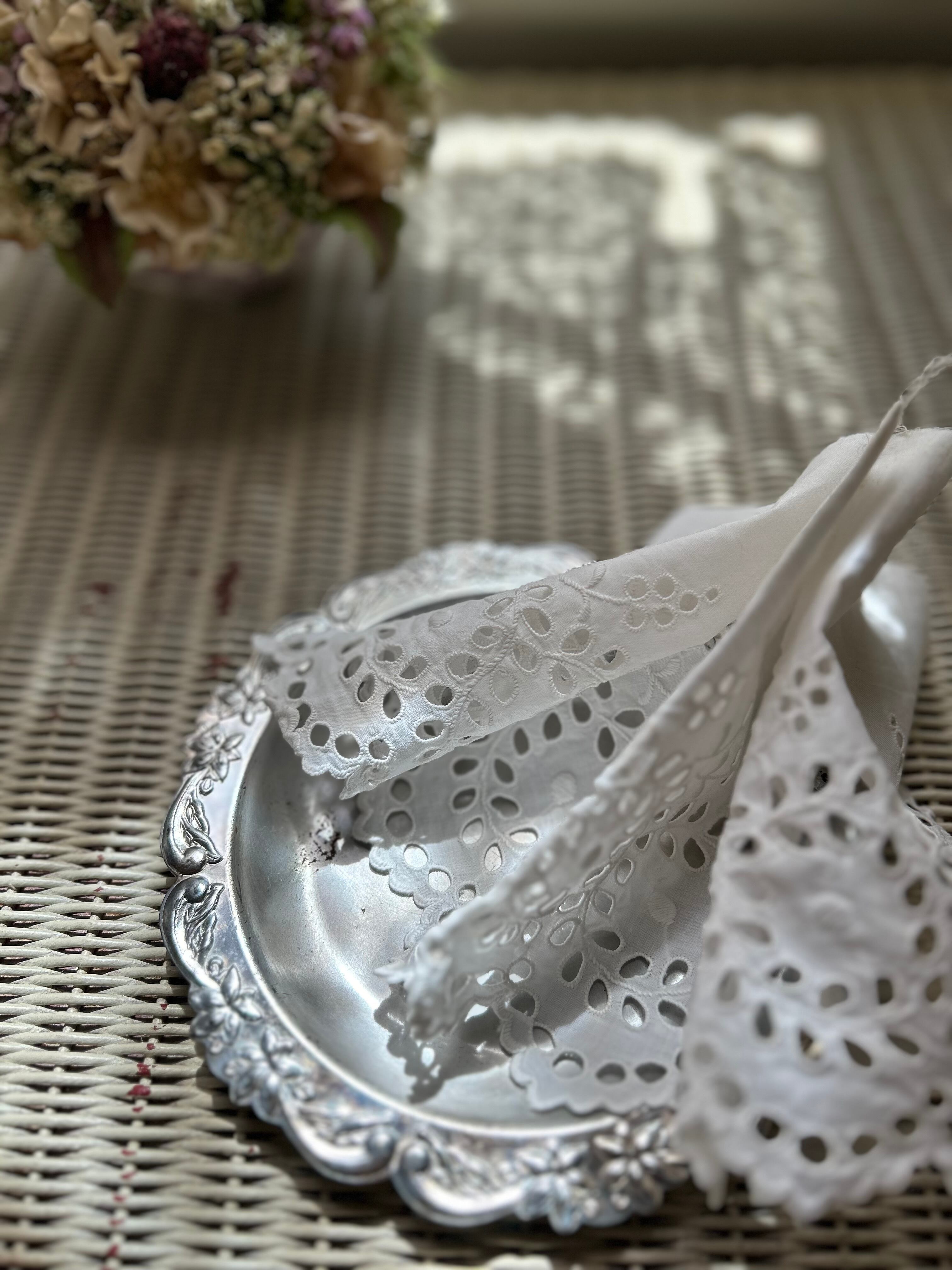 フランスVintage カットワークレース 1960年代 約 40cm デコレーション カルトナージュ コラージュ
