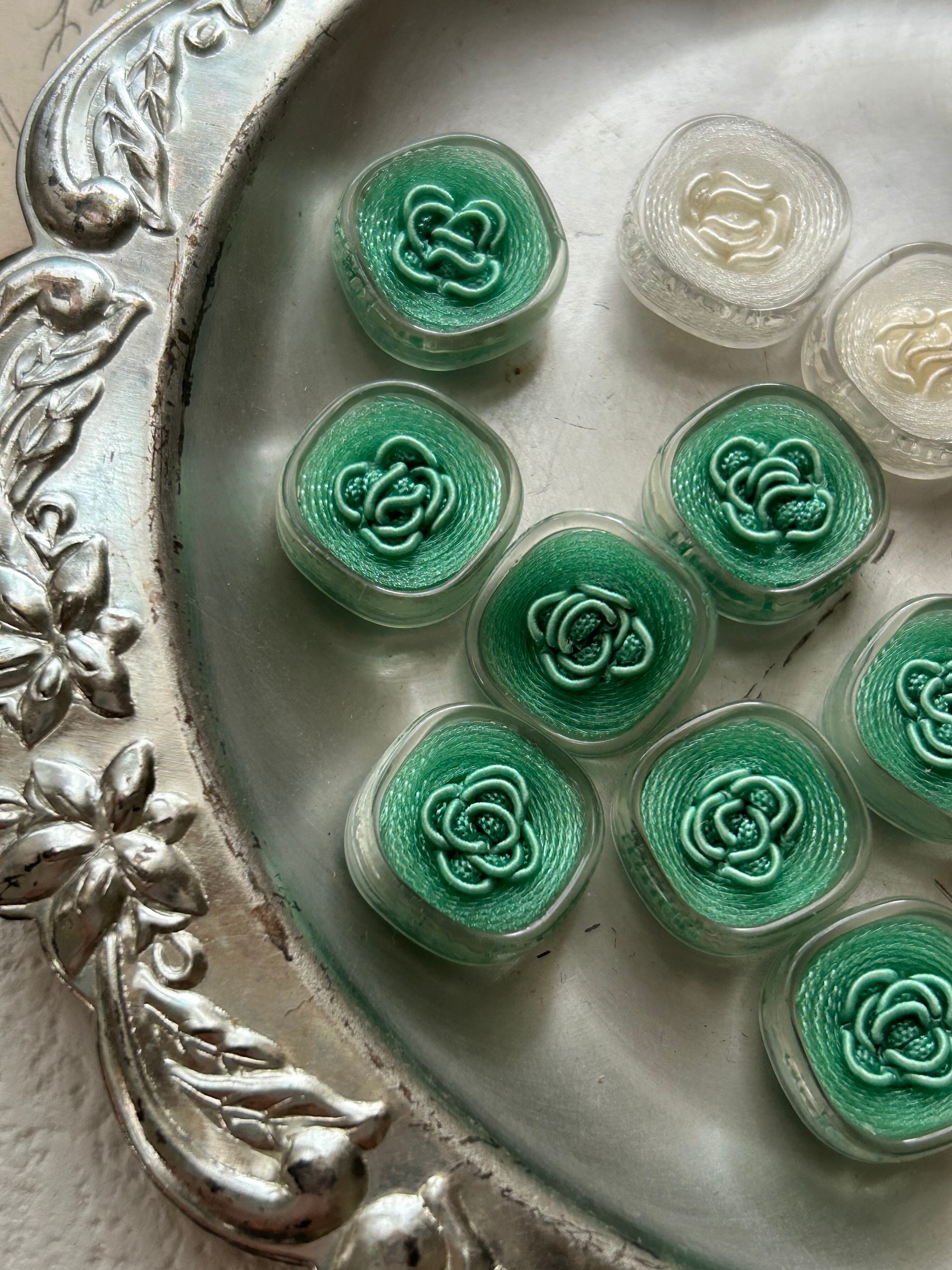 Japanese Vintage ボタン 16mm button コードボタン フラワー アクセサリーパーツ 装飾材 カルトナージュ
