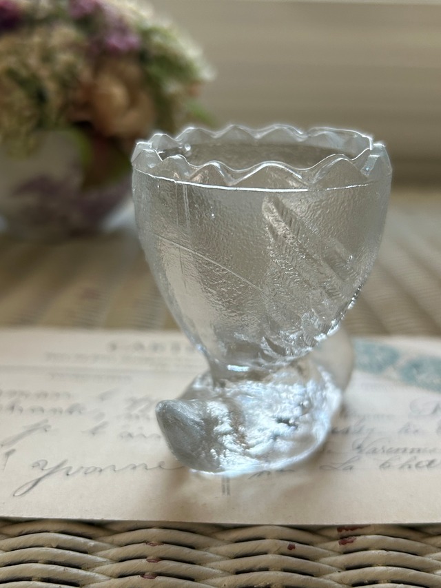 古いガラスのエッグスタンドになります。