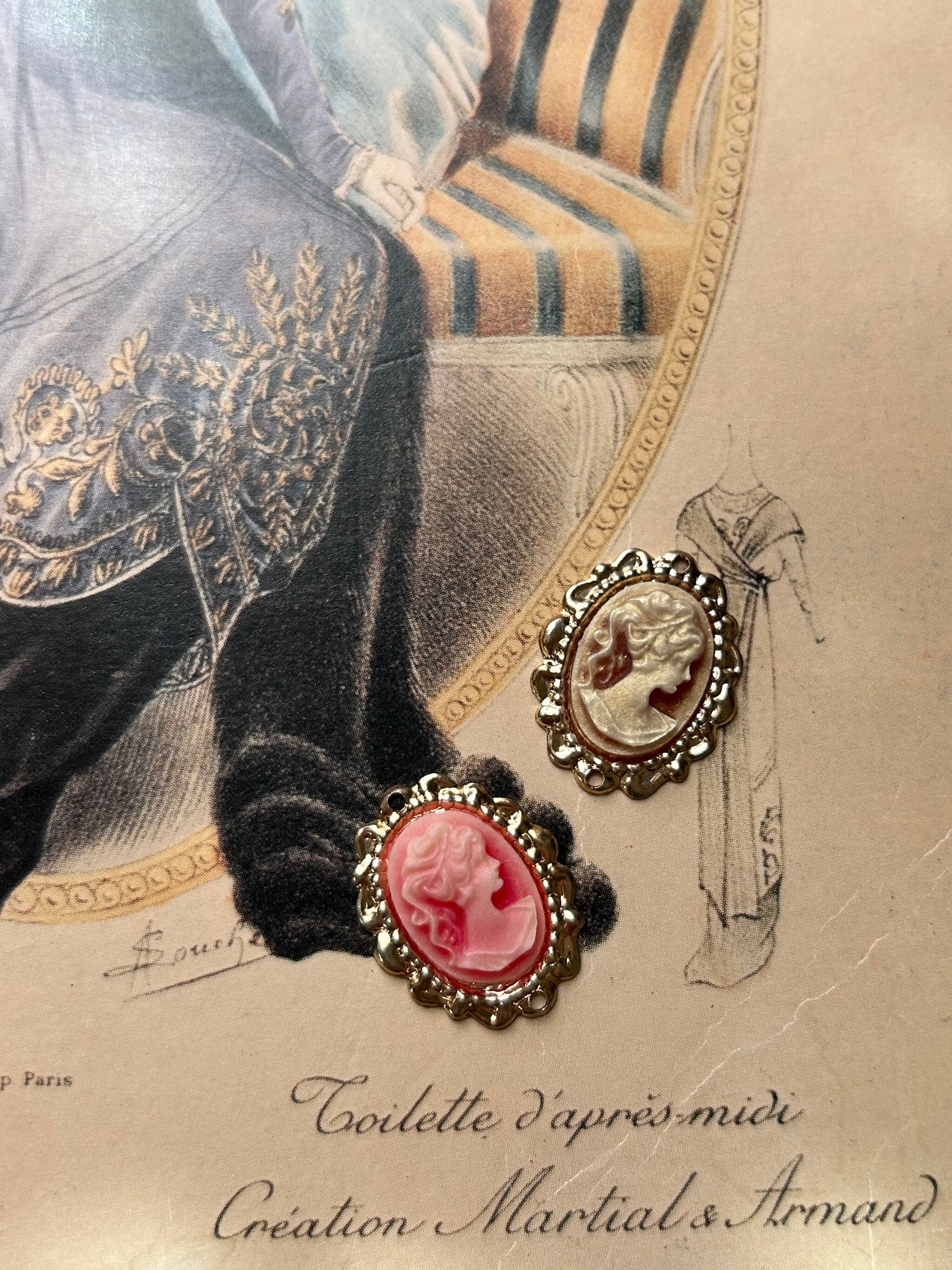 輸入デザインパーツ 台座付ミニカメオ ピンク/ベージュ カルトナージュ デコレーション材 アクセサリーパーツ