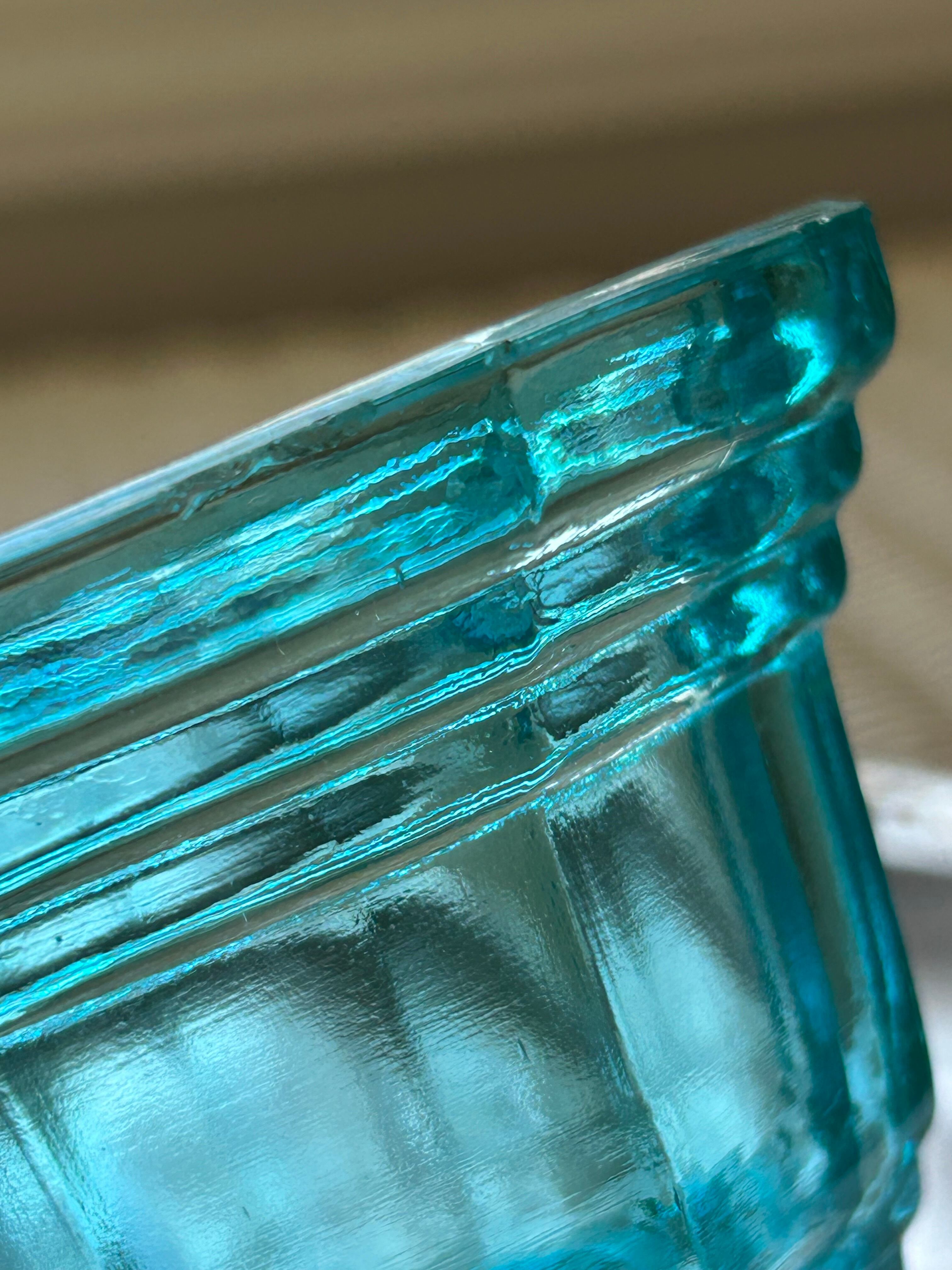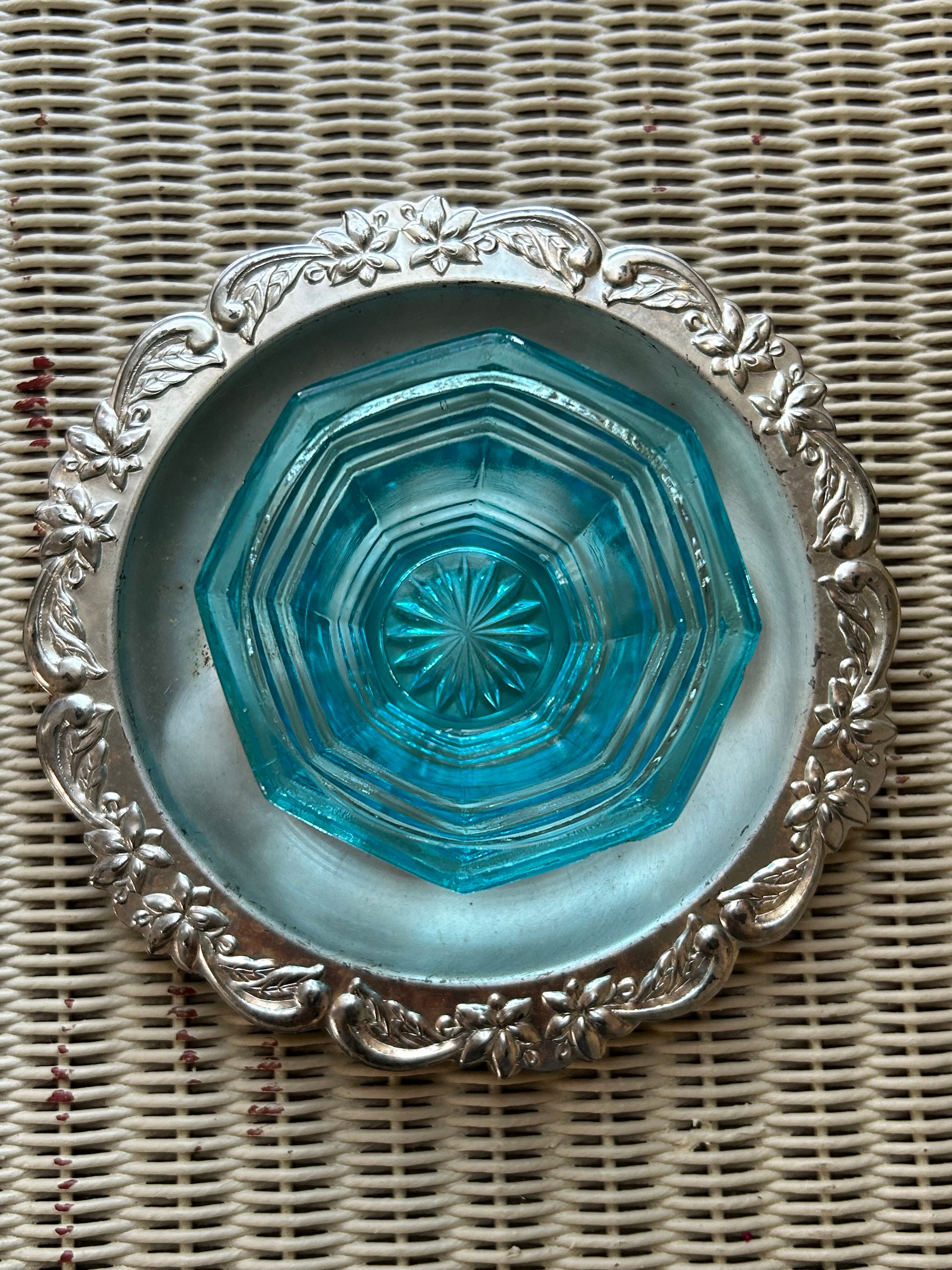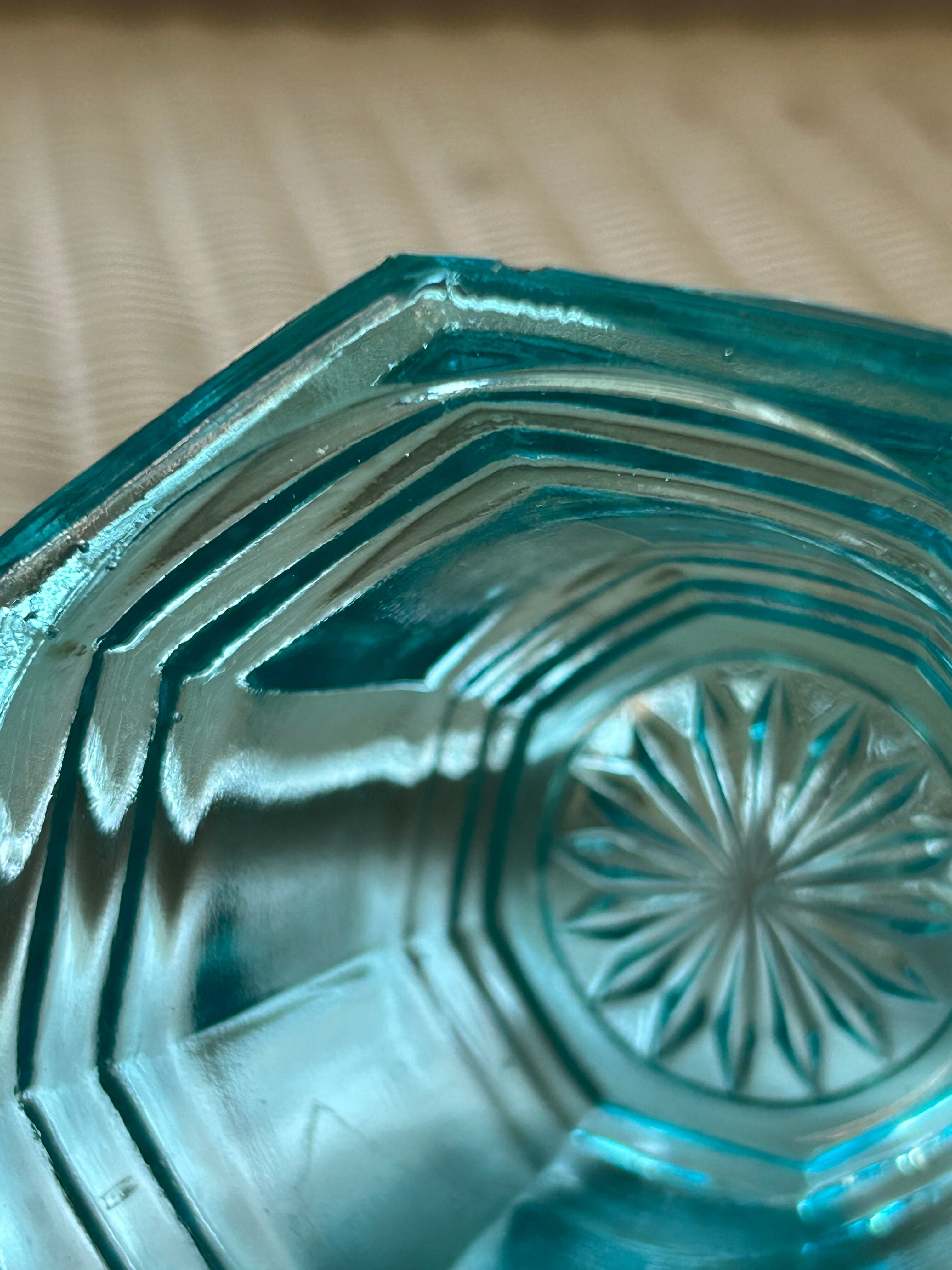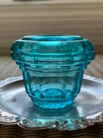 英国 アンティーク 八角形のガラスのトリンケット アルテミス ブルーガラス 小物入れ インテリア