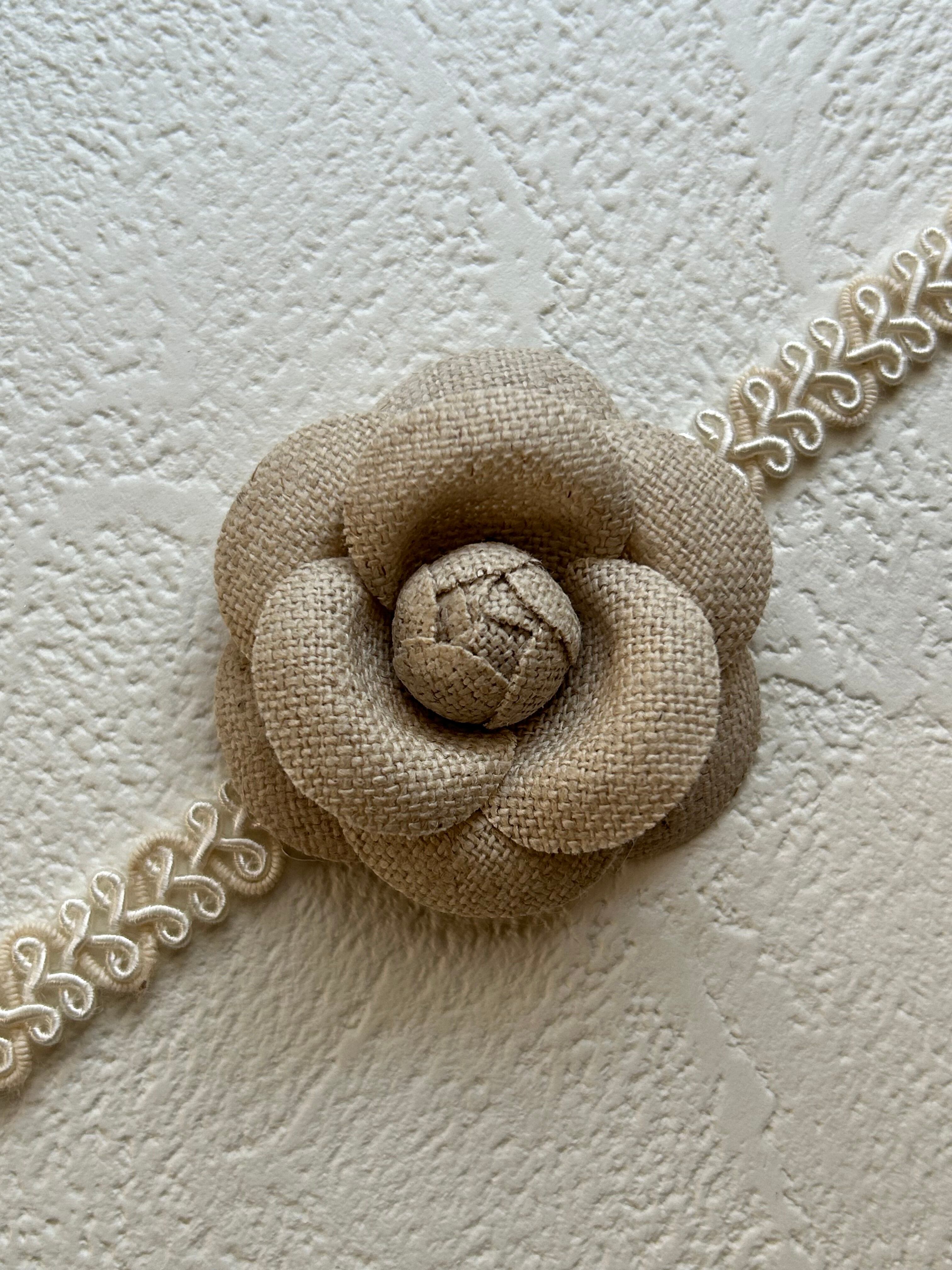 輸入デザインパーツ カメリア リネン調 ミルクティーベージュ カルトナージュ コサージュ ヘアアクセサリー シューズクリップ