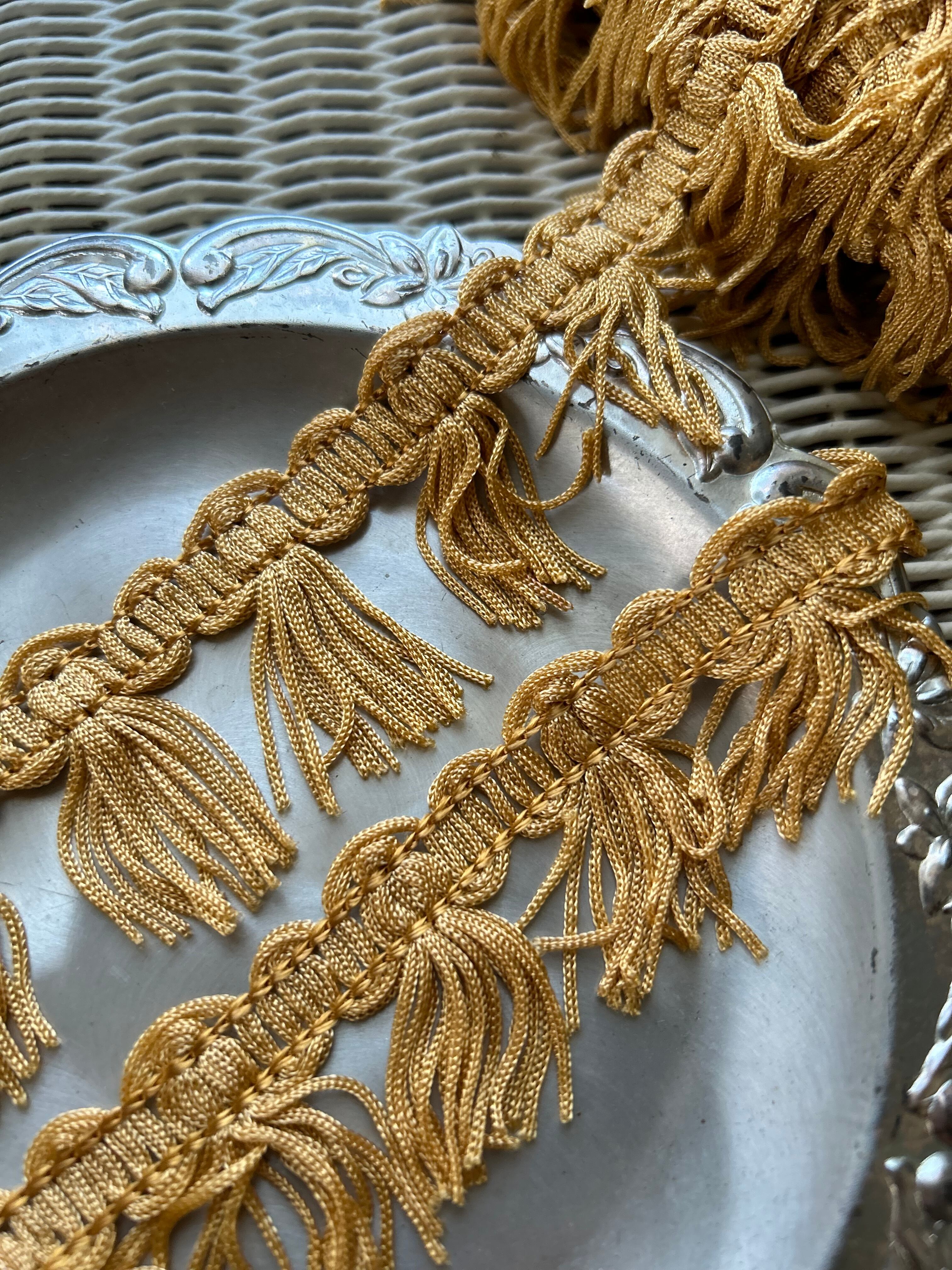 英国Vintage イエローゴールド フリンジブレード トリム 35mm リリアン カルトナージュ スツール デコレーション材
