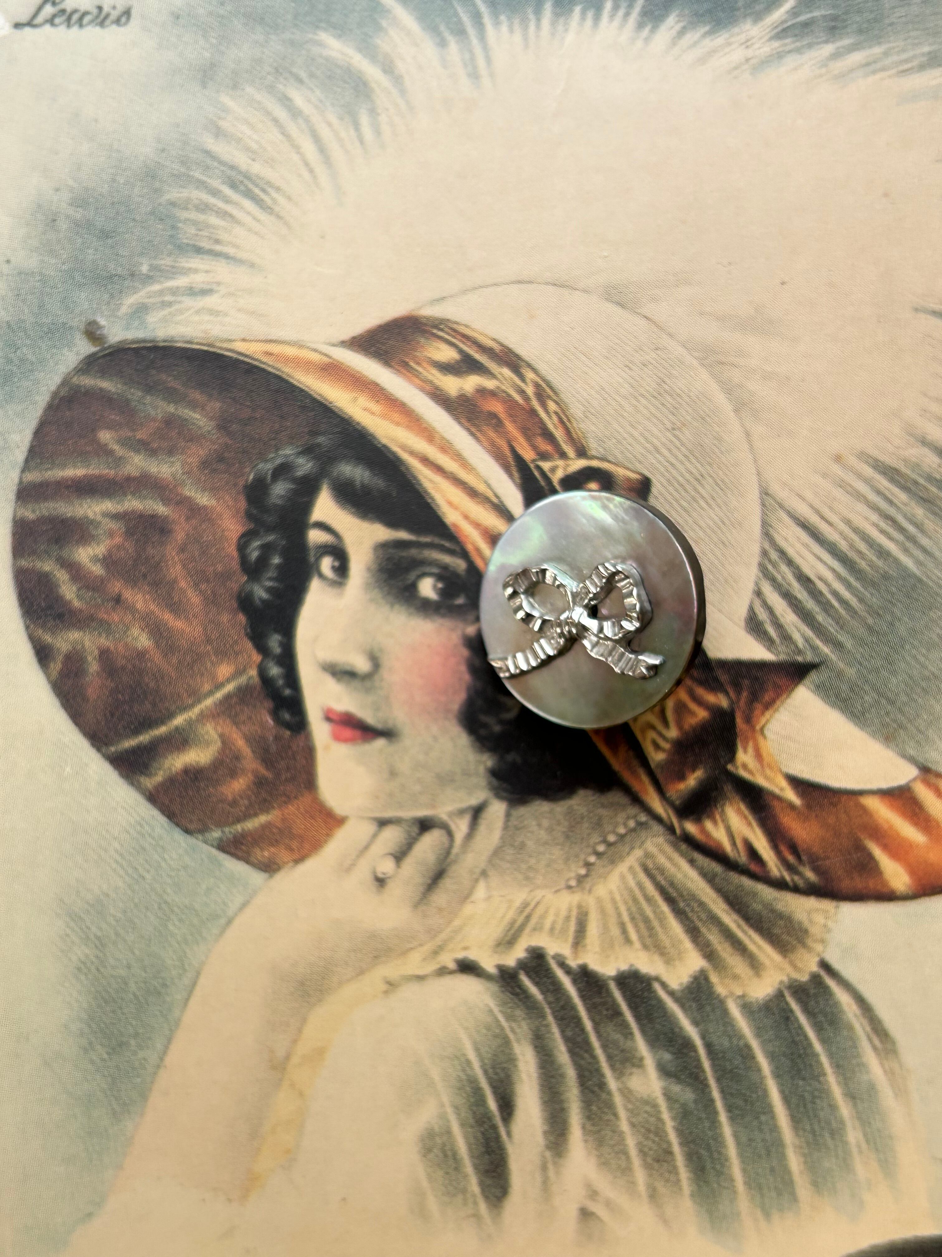 Japanese Vintage ボタン シェル×Ruban リボン 17mm アクセサリーパーツ デコレーション材