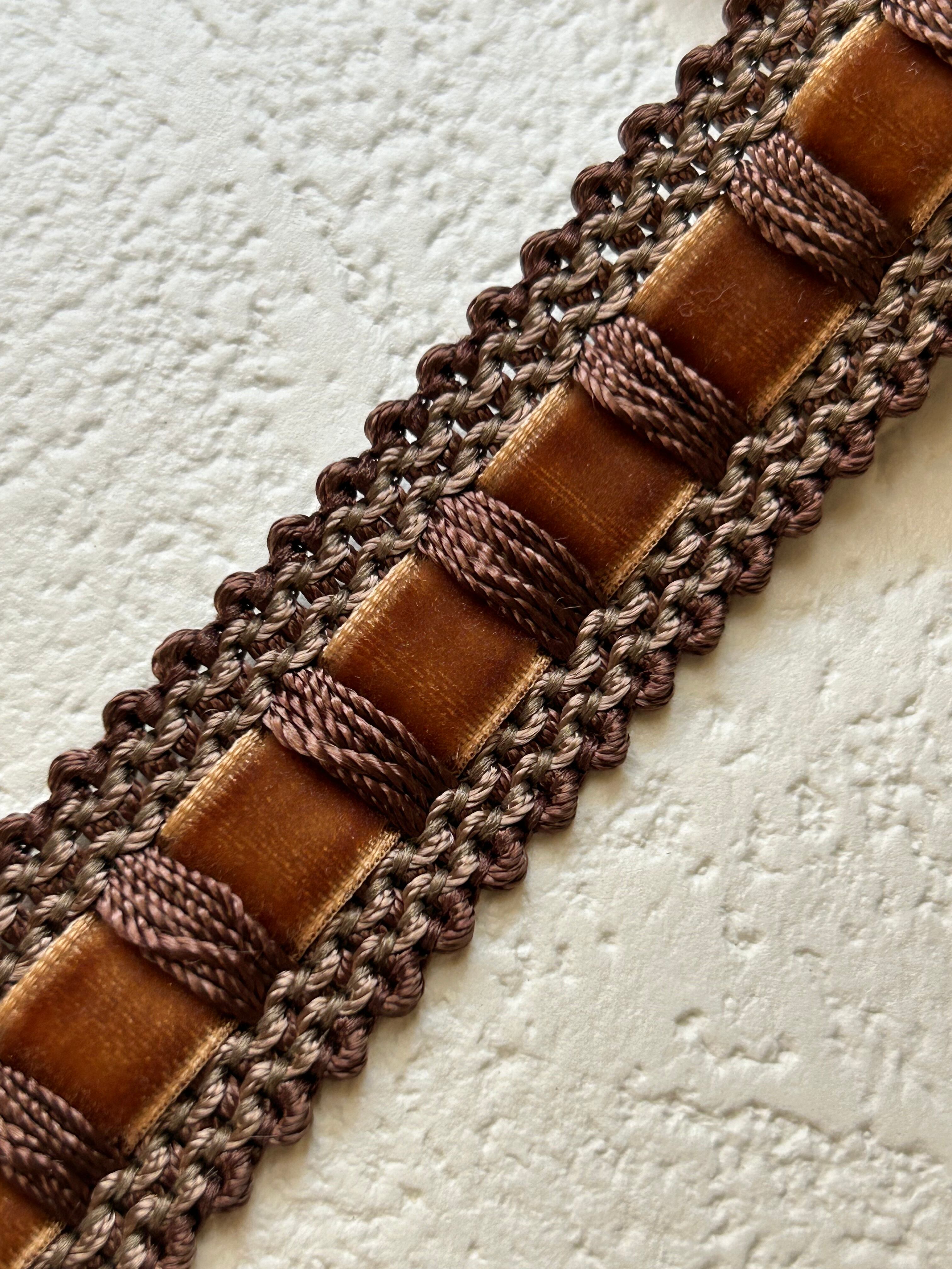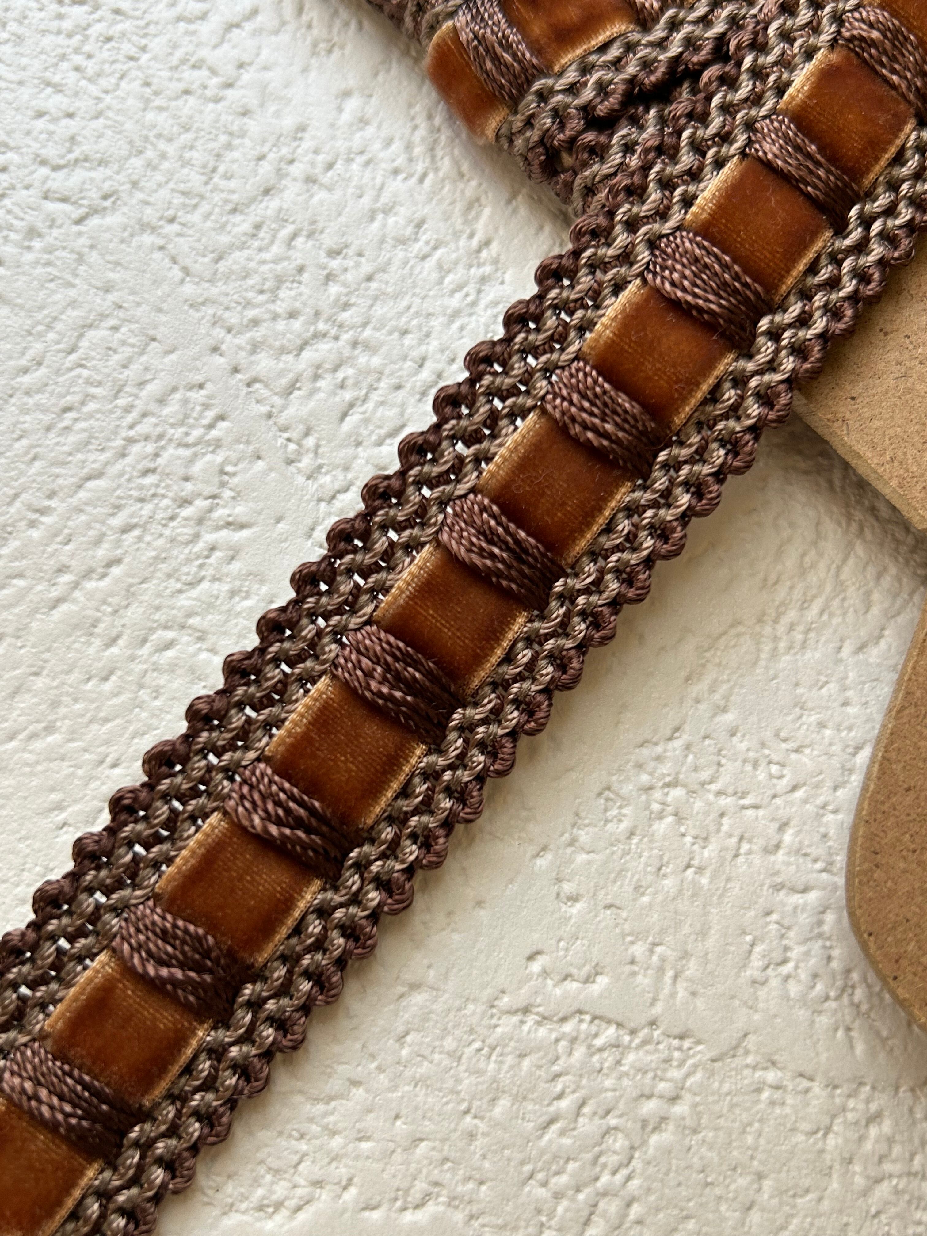 輸入デザインブレード ブラウン ベルベットリボン 100cm /カット カルトナージュ スツール デコレーション材