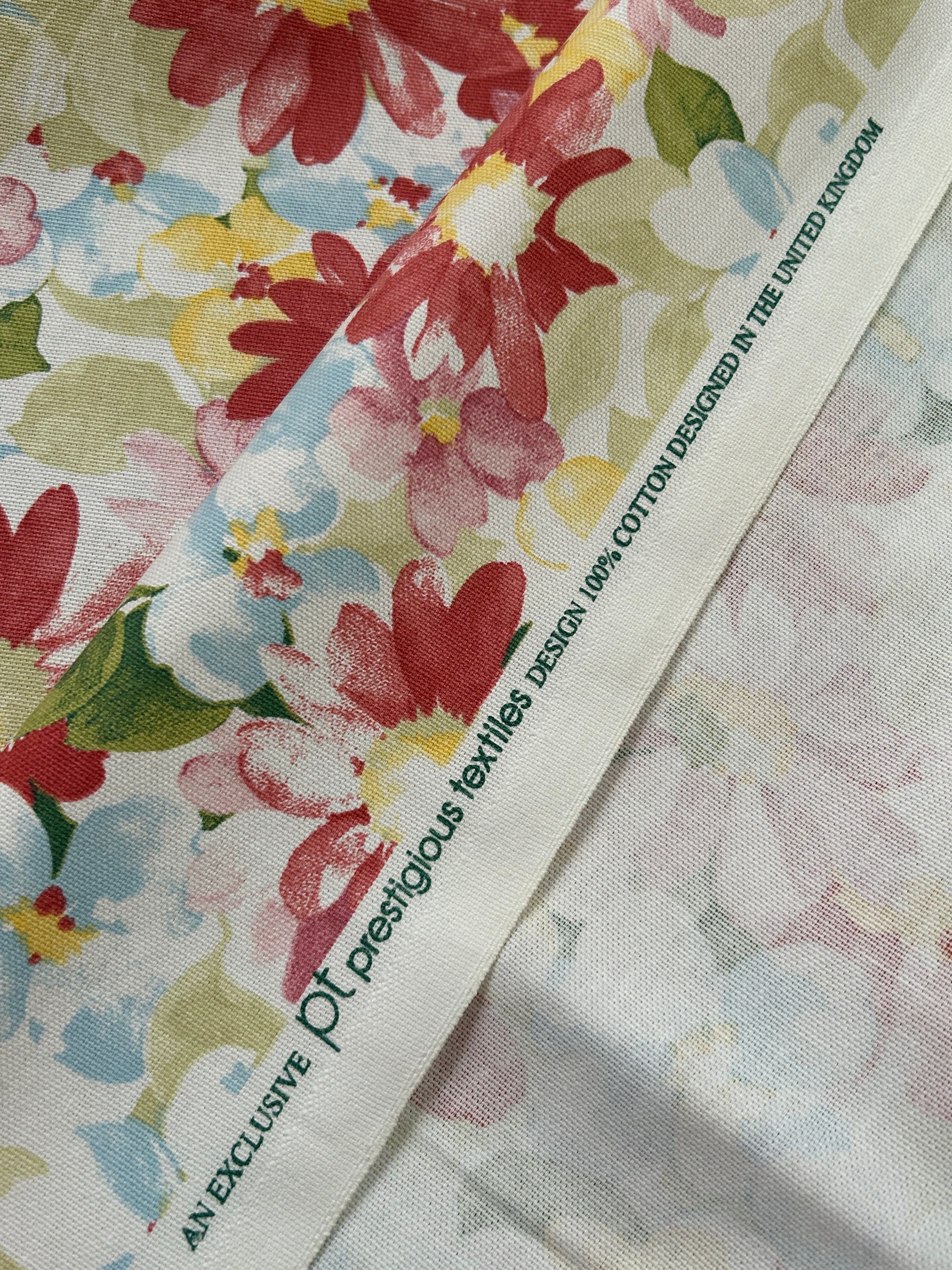 英国 輸入コットンファブリック フラワー柄 マルチカラー カルトナージュ
