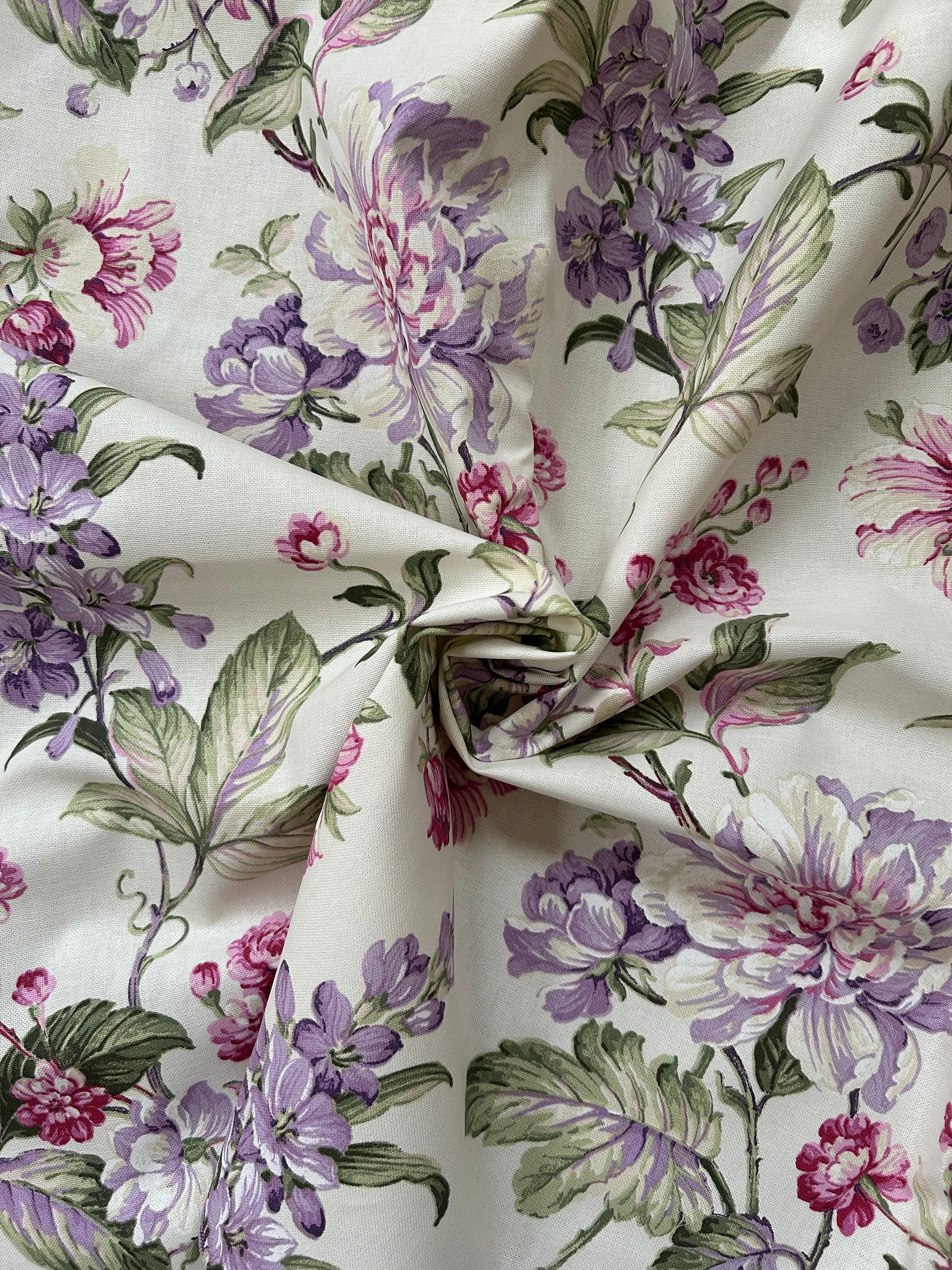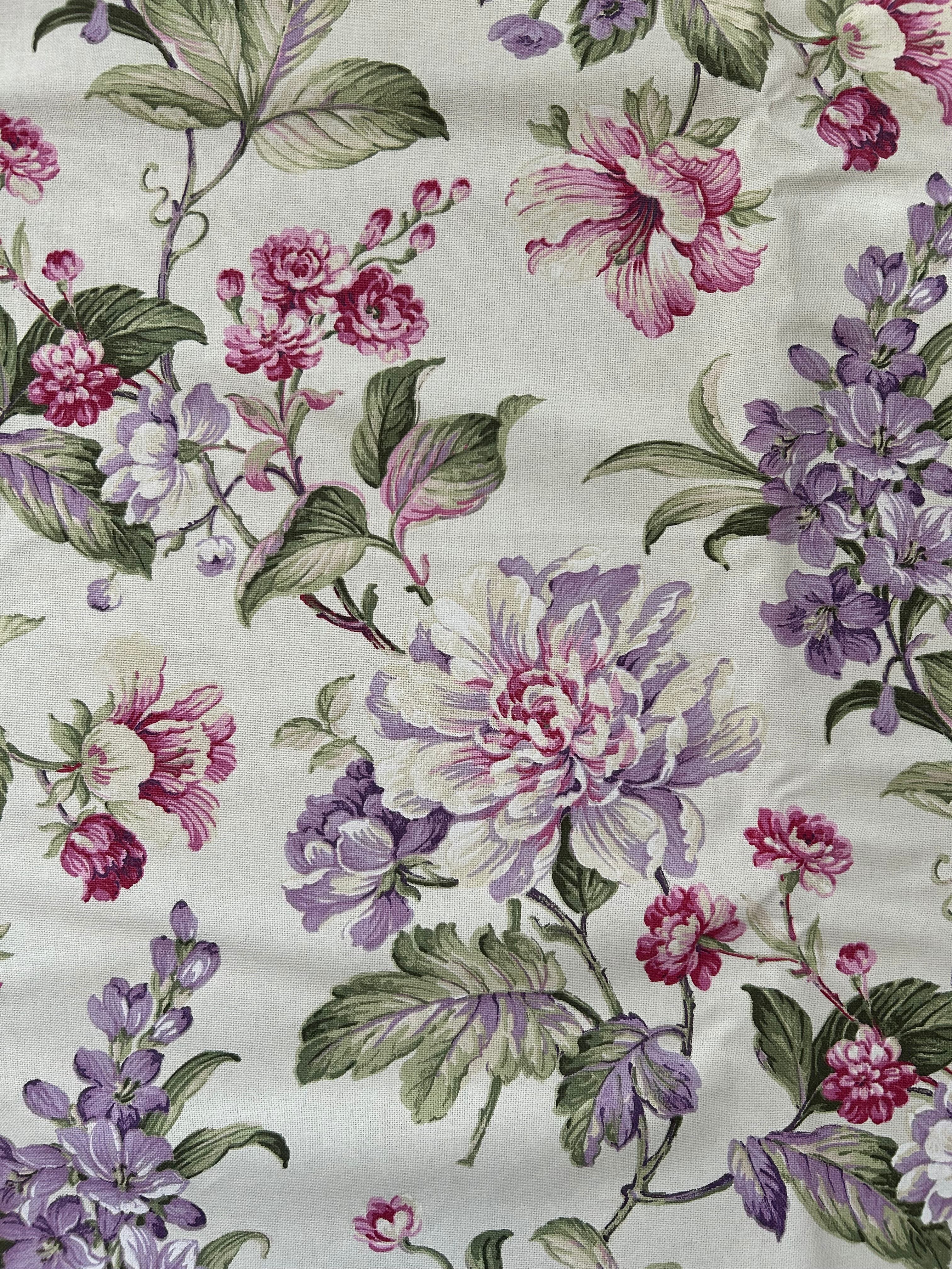 ライラックでしょうか。大柄のパープル、ピンクのボタニカル柄