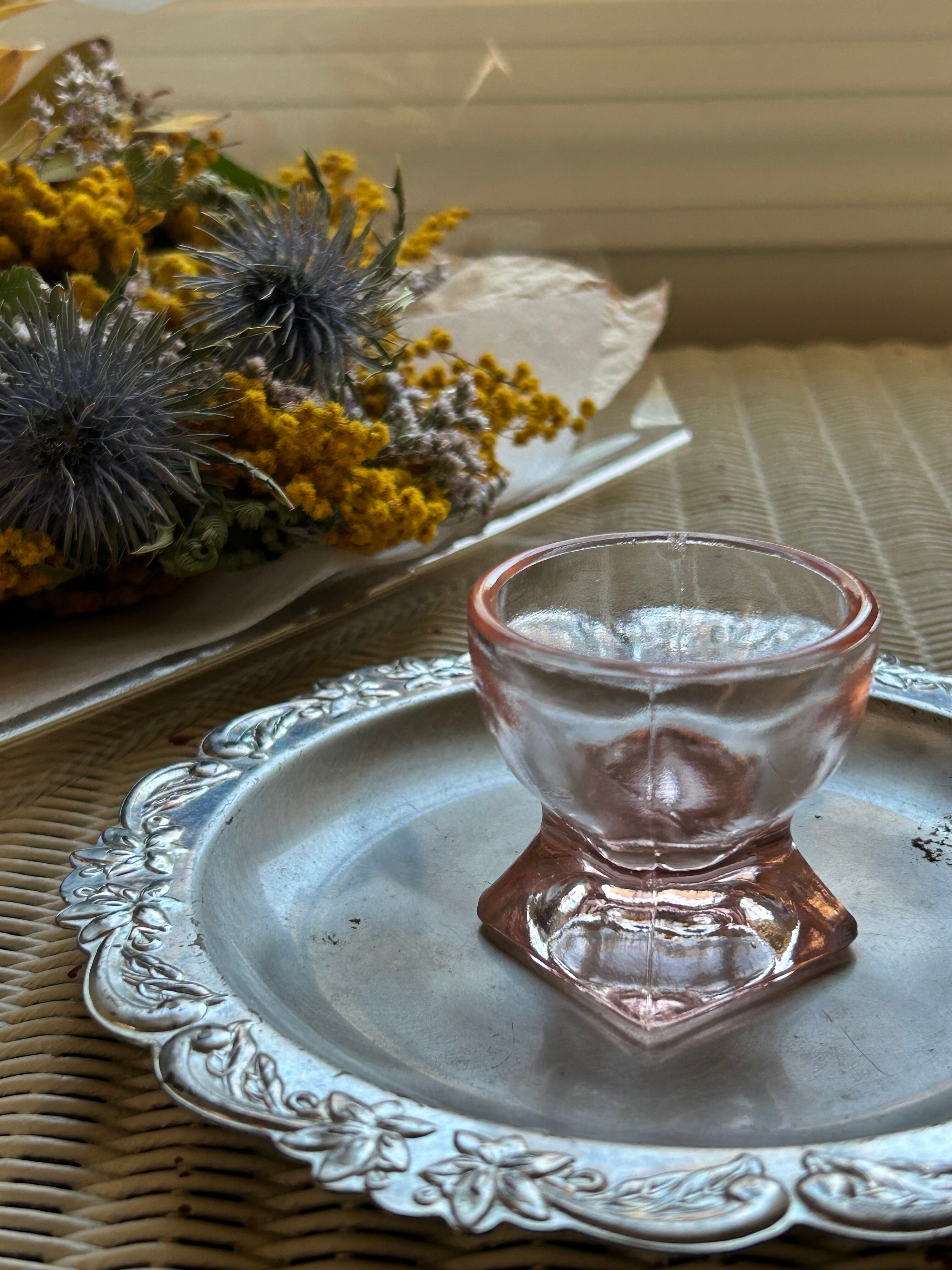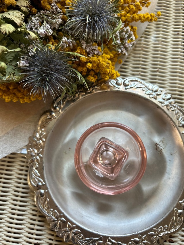 フランスアンティーク ピンクガラスのエッグスタンド フラワーベース インテリア