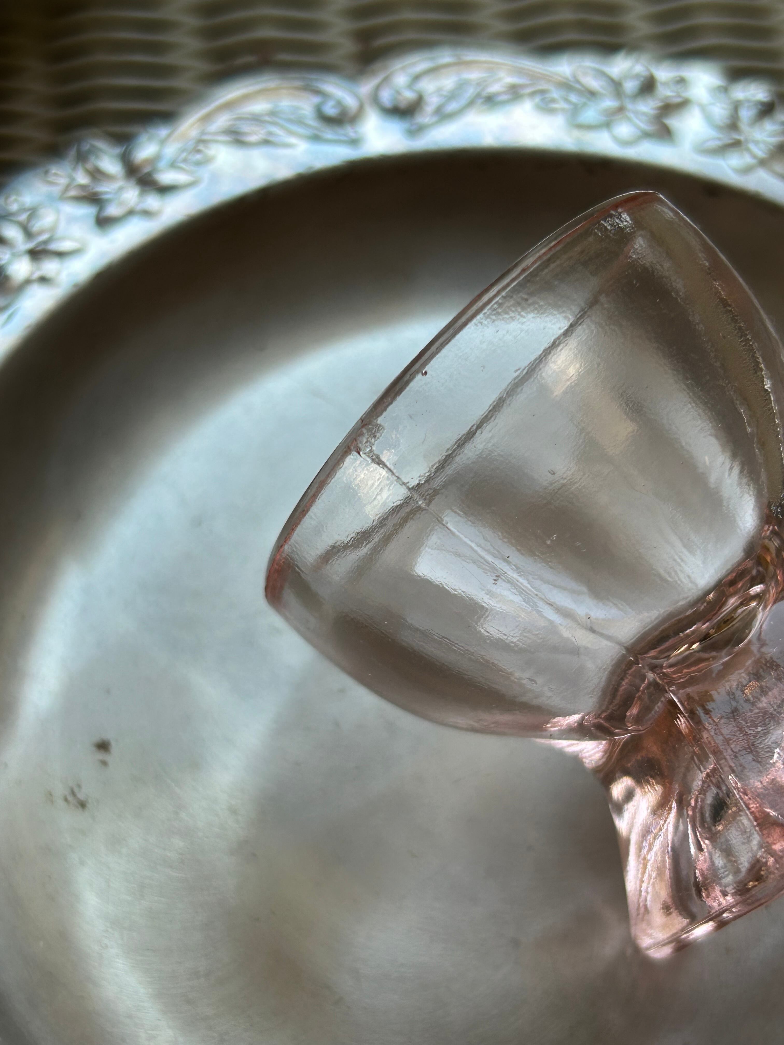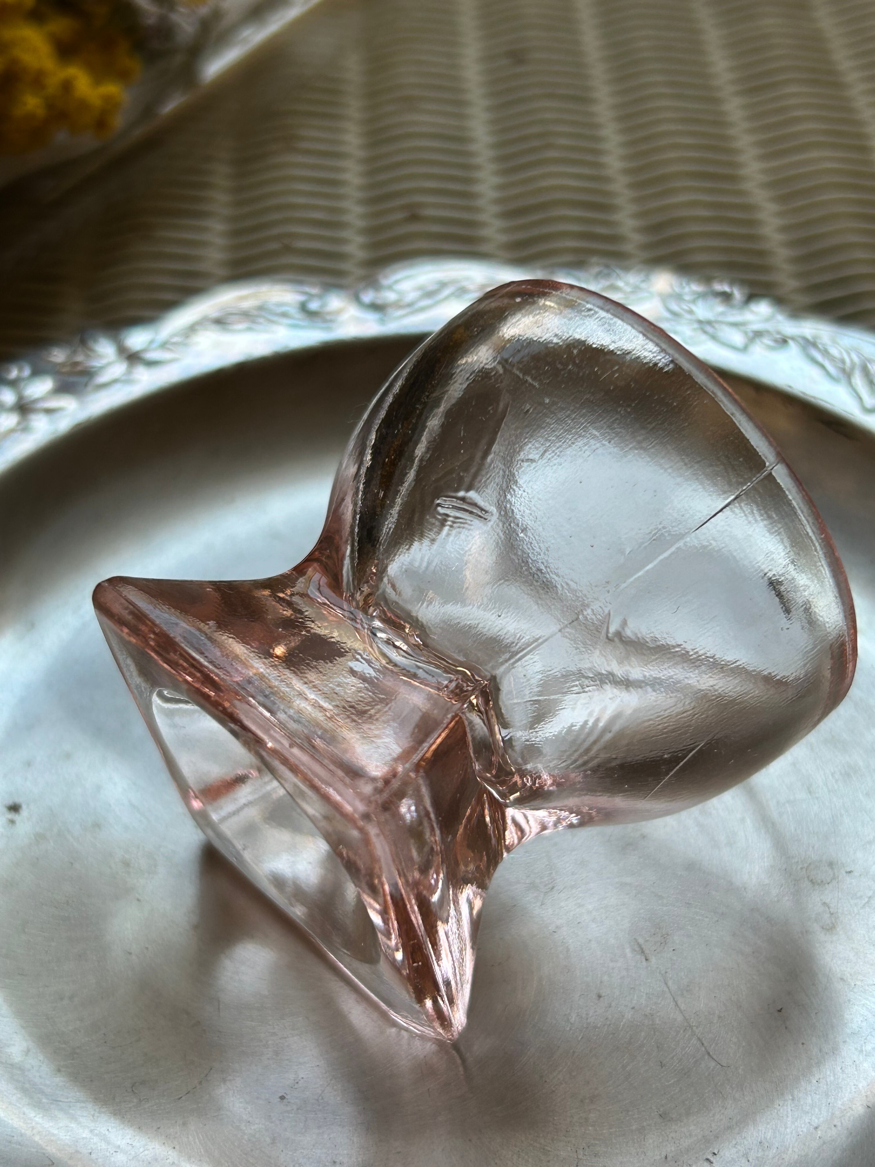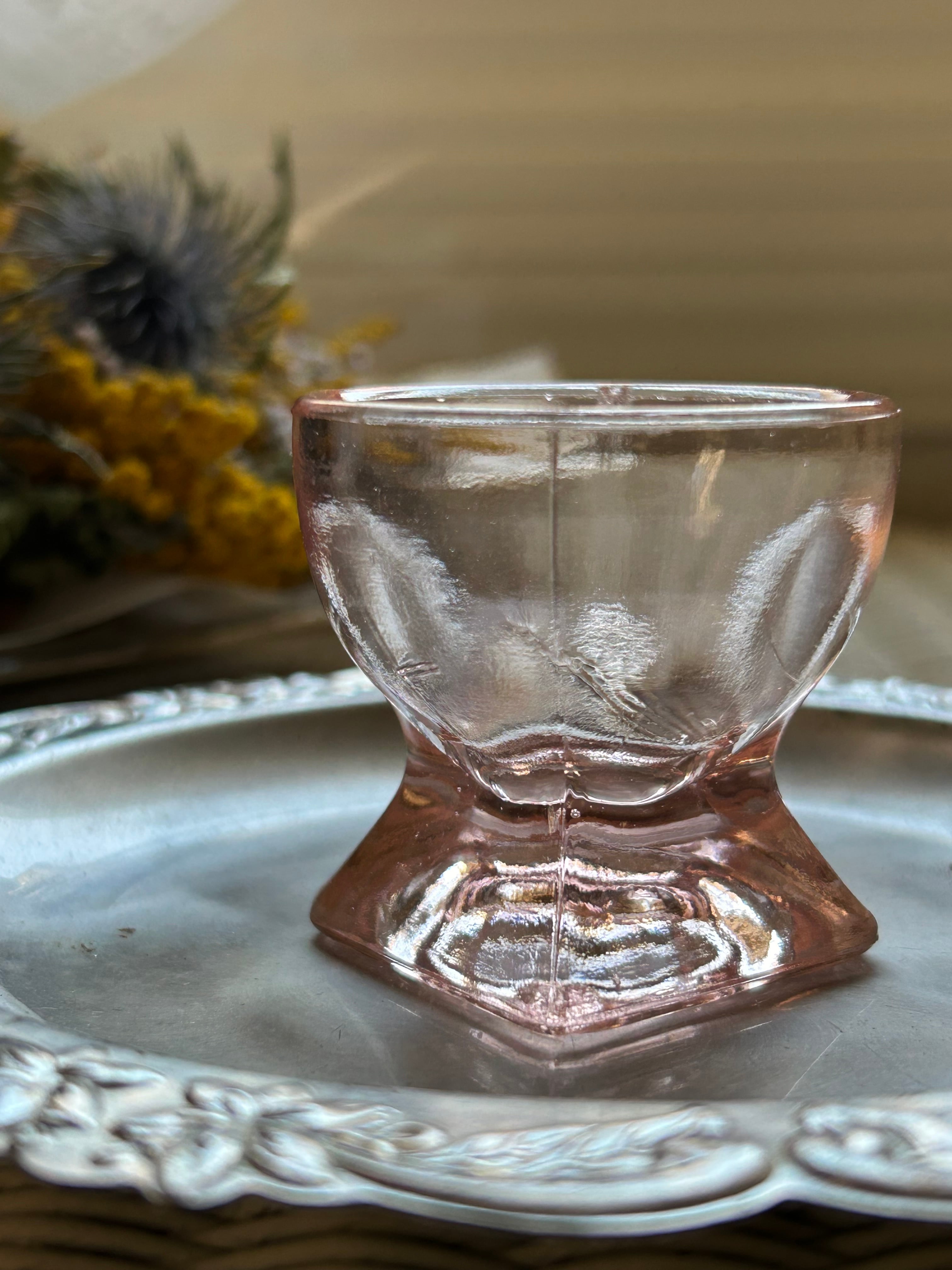 ぽってりとしたレトロ可愛いピンクガラスのエッグスタンド。