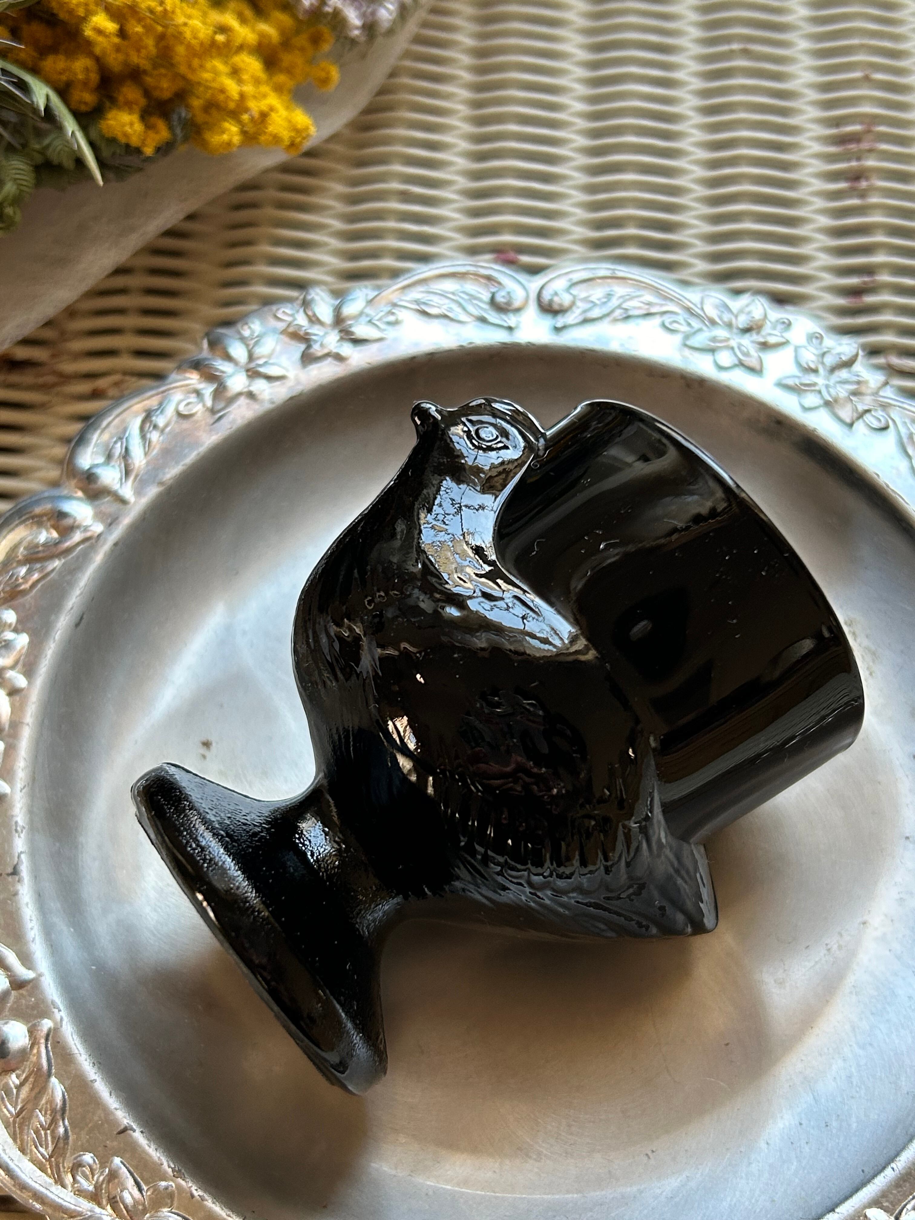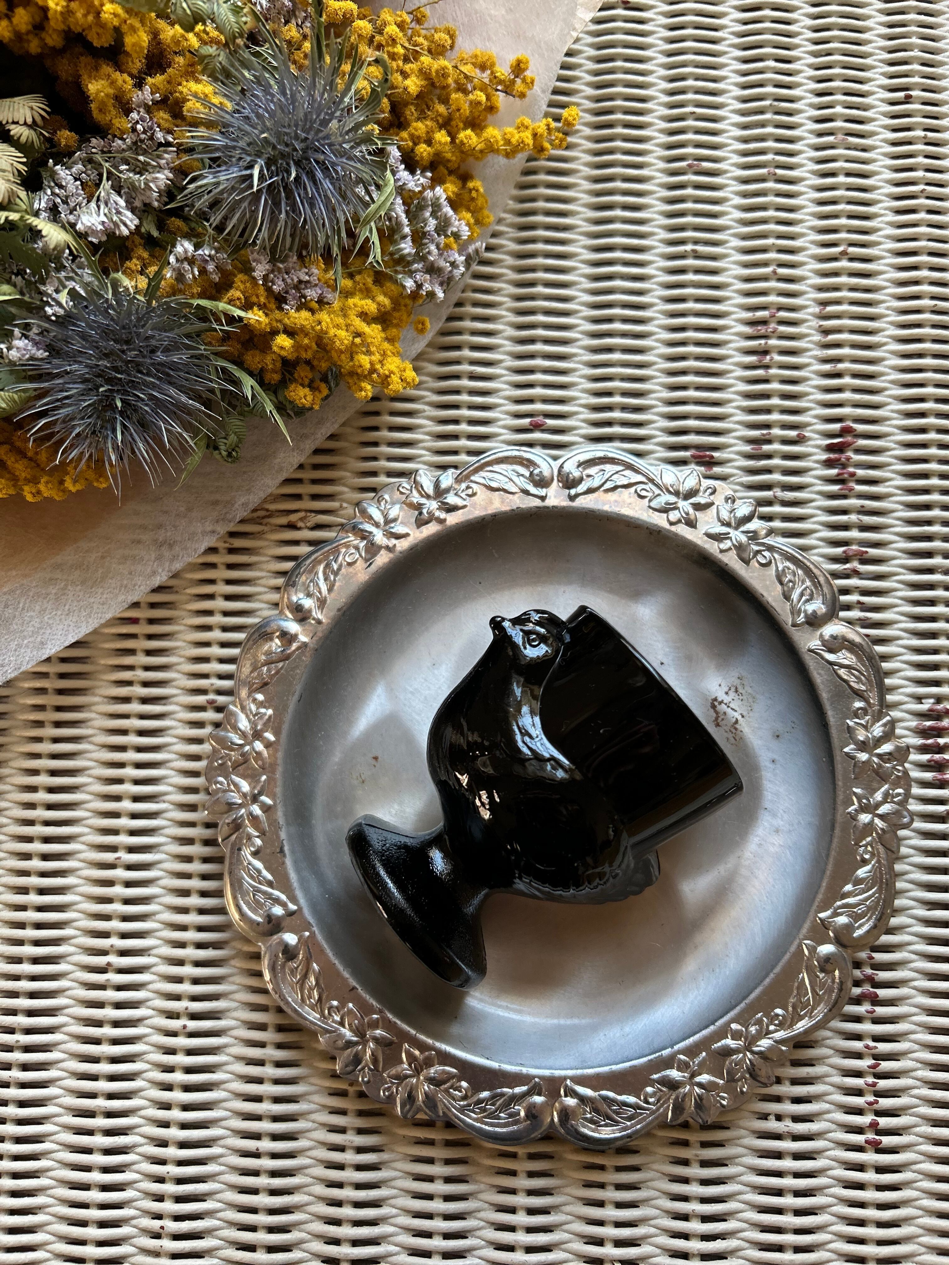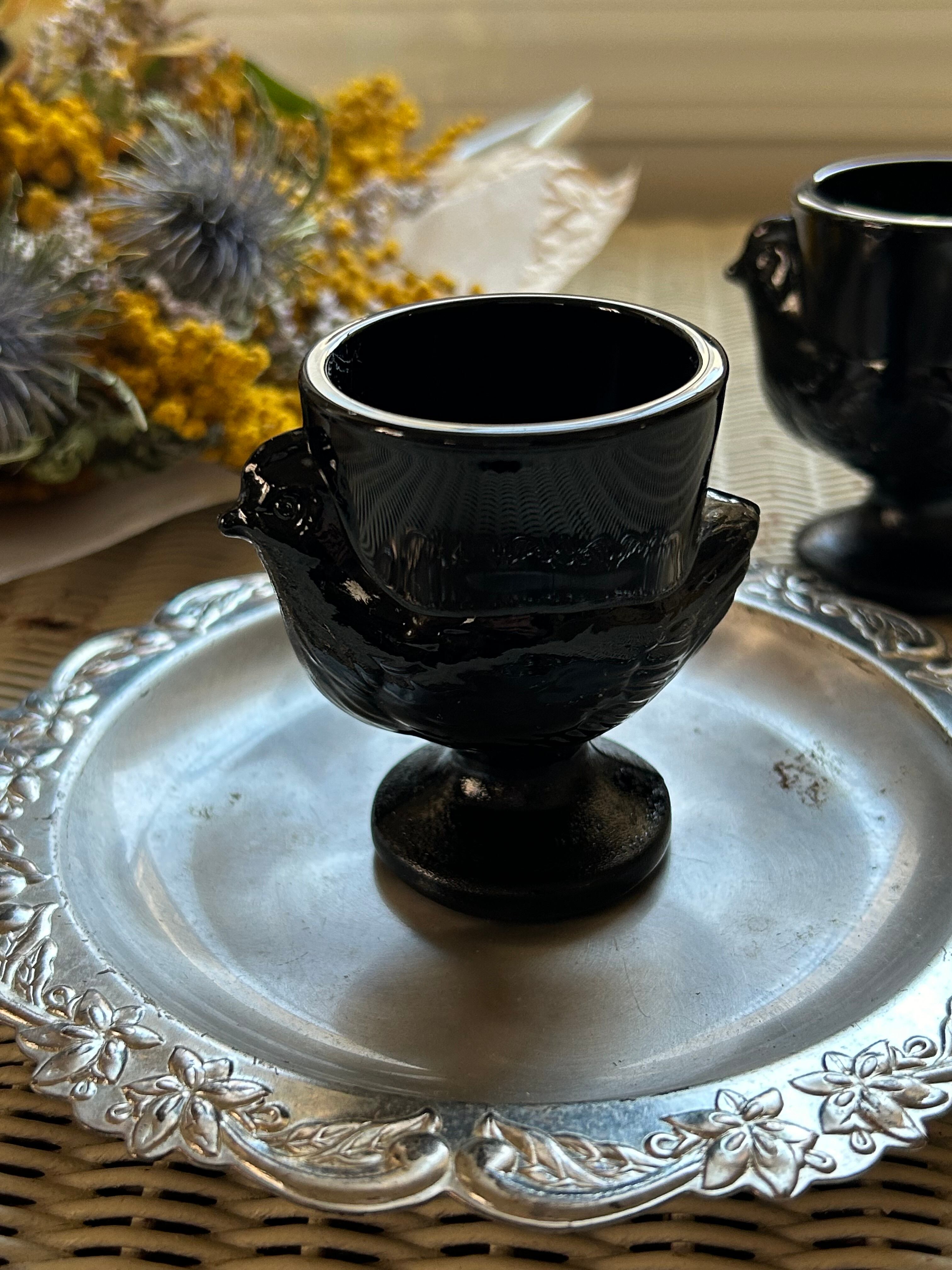 フランスヴィンテージ にわとりのエッグスタンド ブラックミルクガラス 1970年代 テーブルウェア フラワーベース インテリア