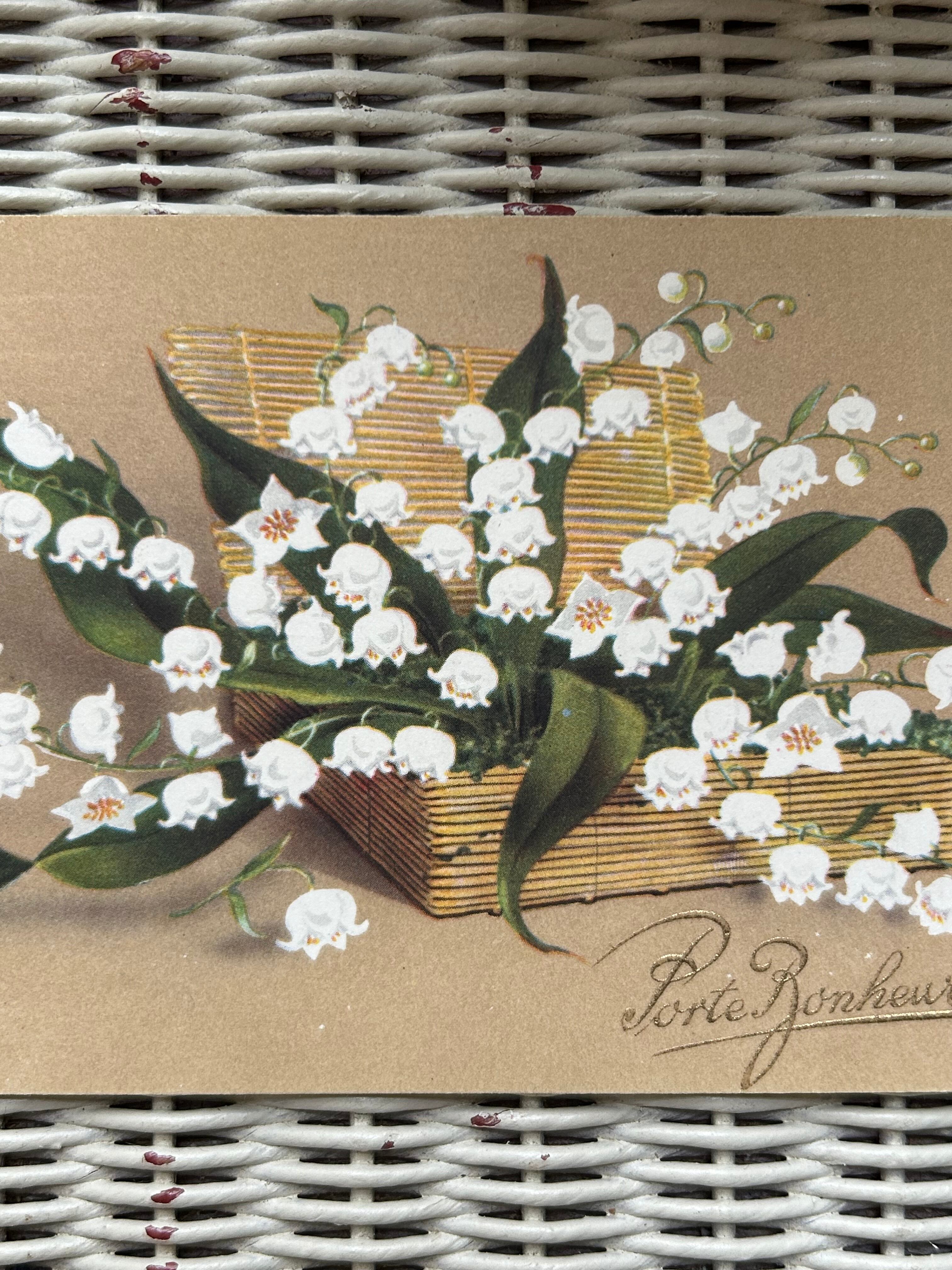 フランス アンティークポストカード porte-bonheur Muguetの花籠 すずらん スズラン 額装 インテリア