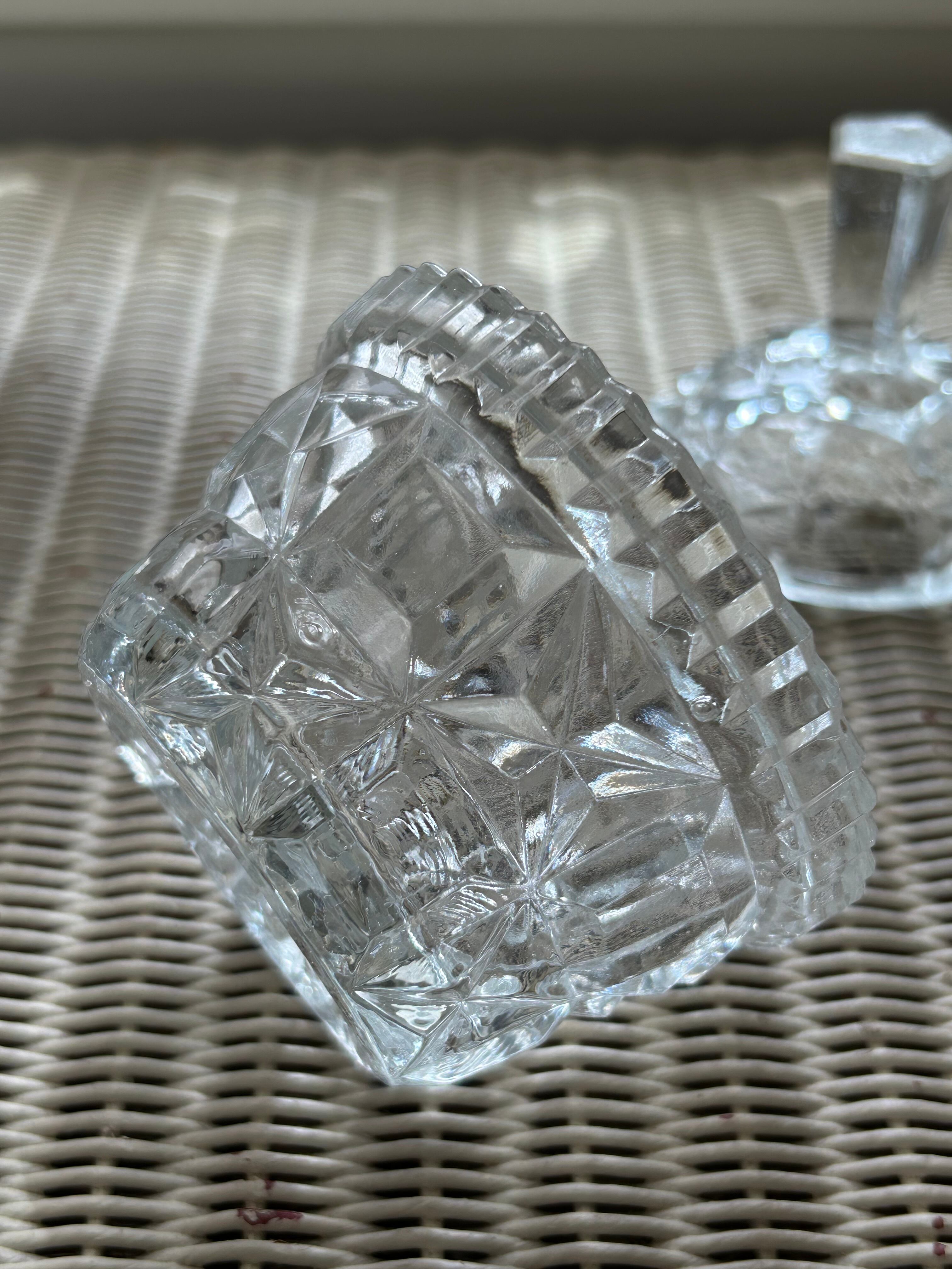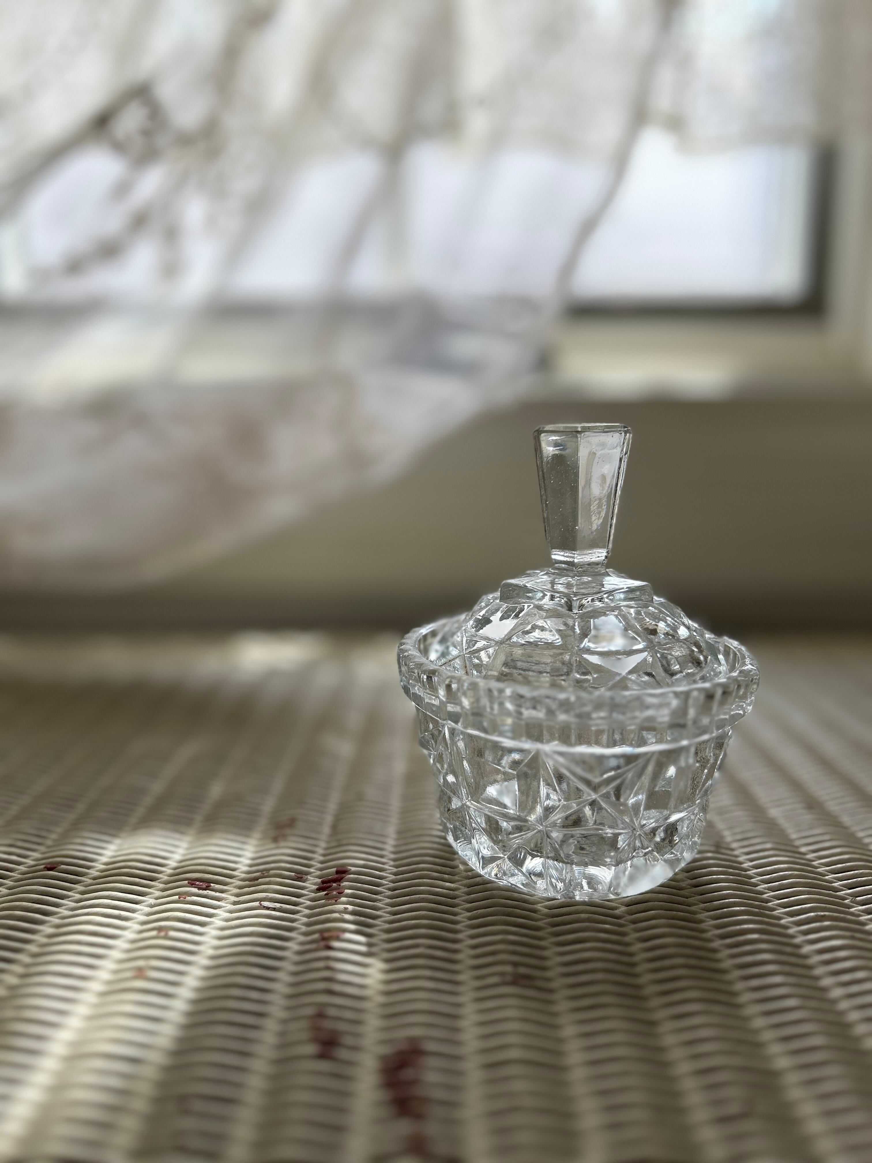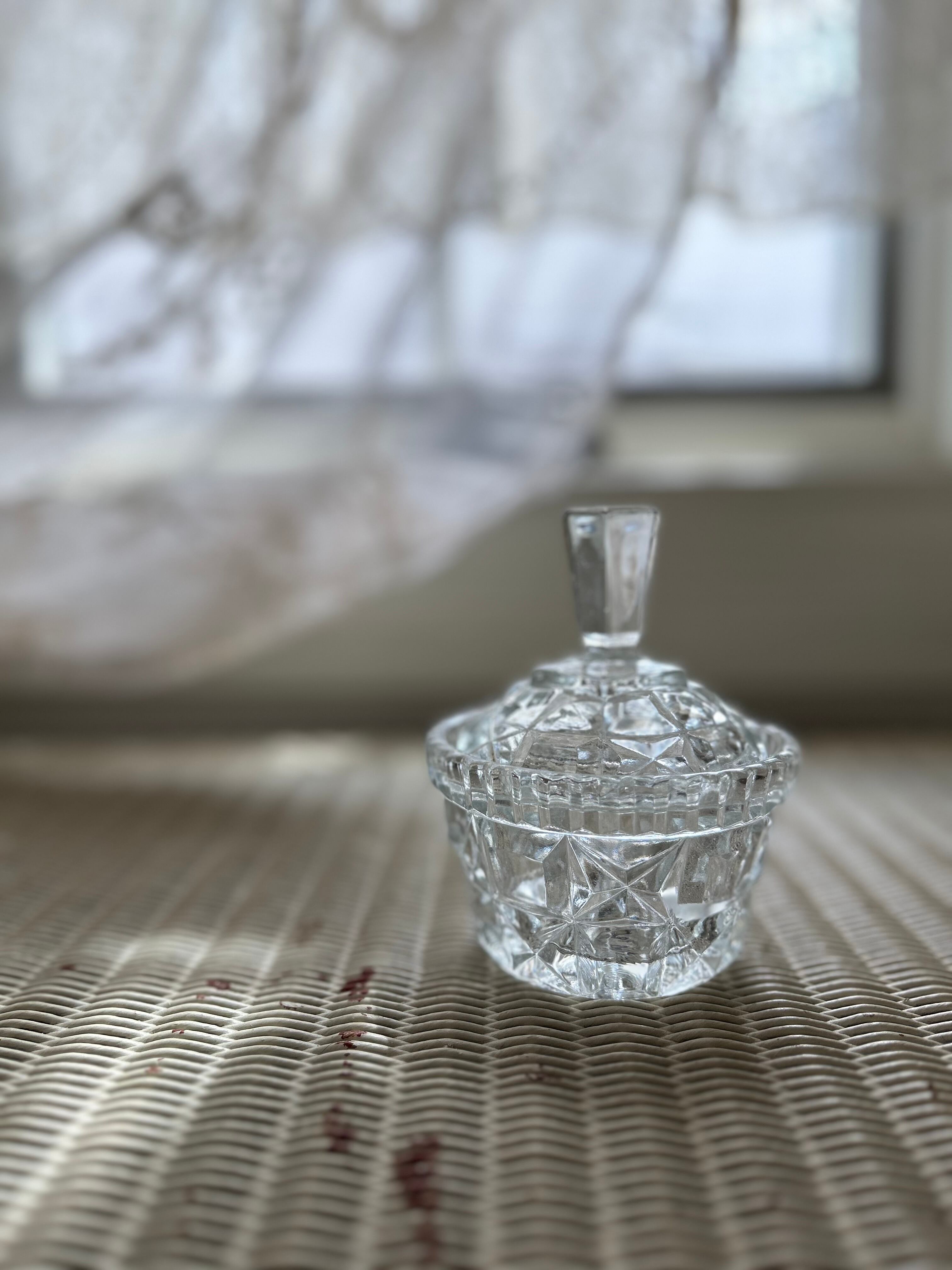 ガラスのカットが美しく、窓辺で光が差し込むとうっとりするような輝き。