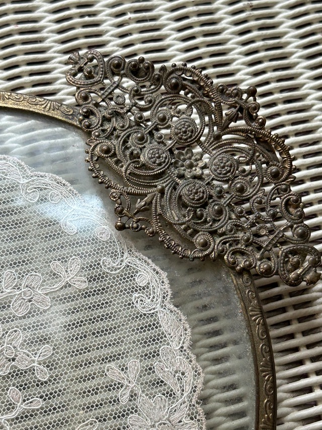 英国アンティークのプチポワンのオーバル型ドレッシングトレイです