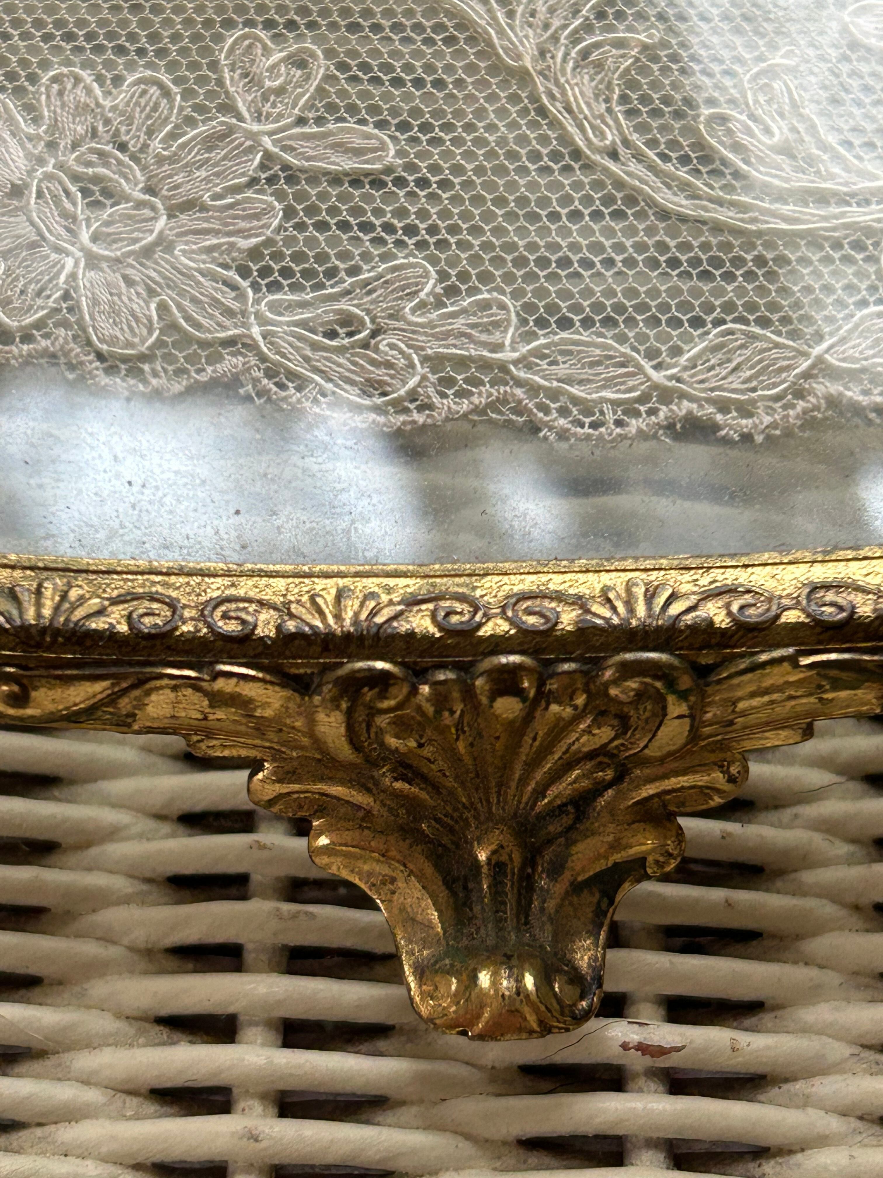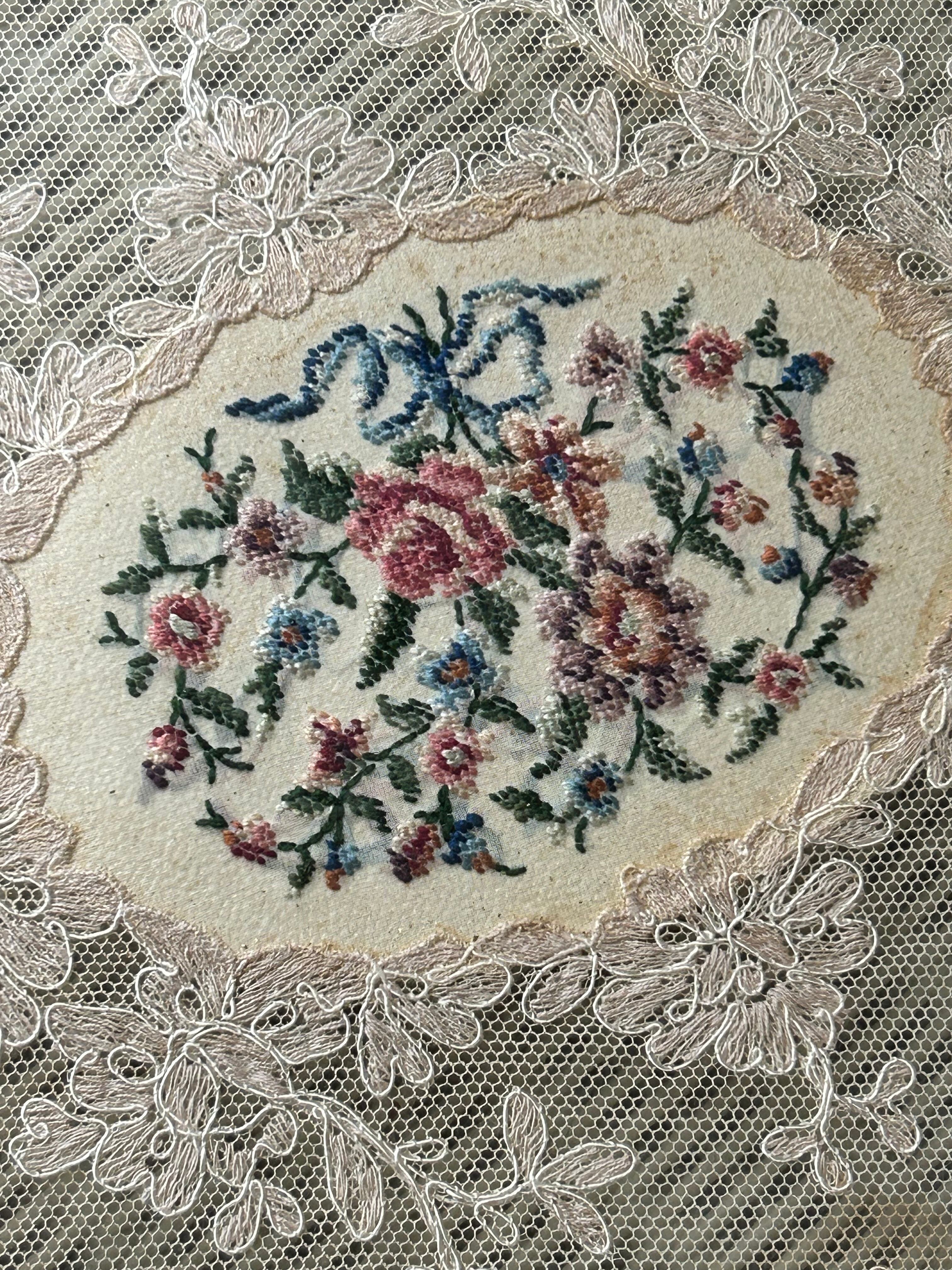 美しくエレガントなRoseやリボンのプチポワンの刺繍と繊細なレースをガラスで挟み込んだガラストレイ。
