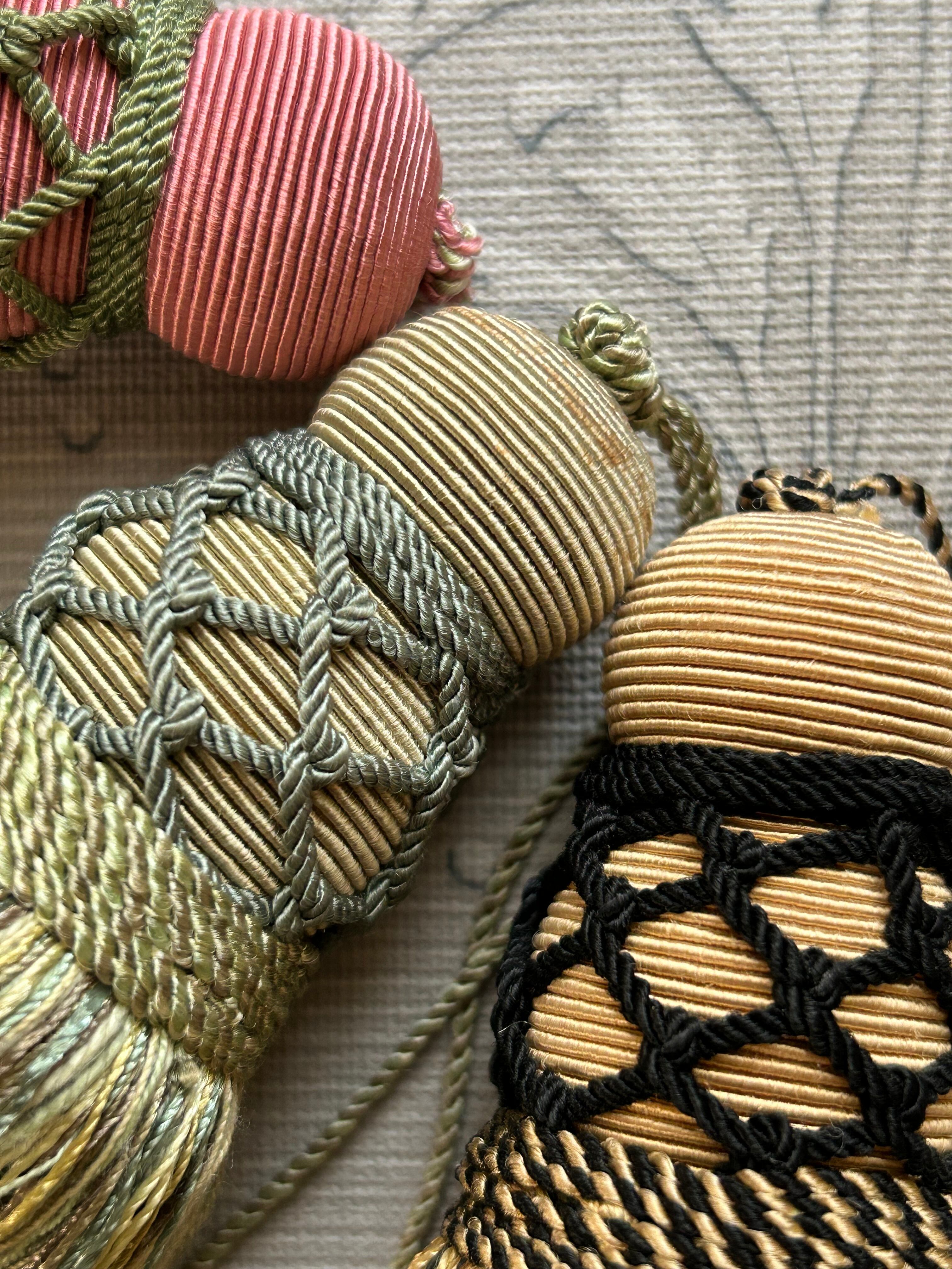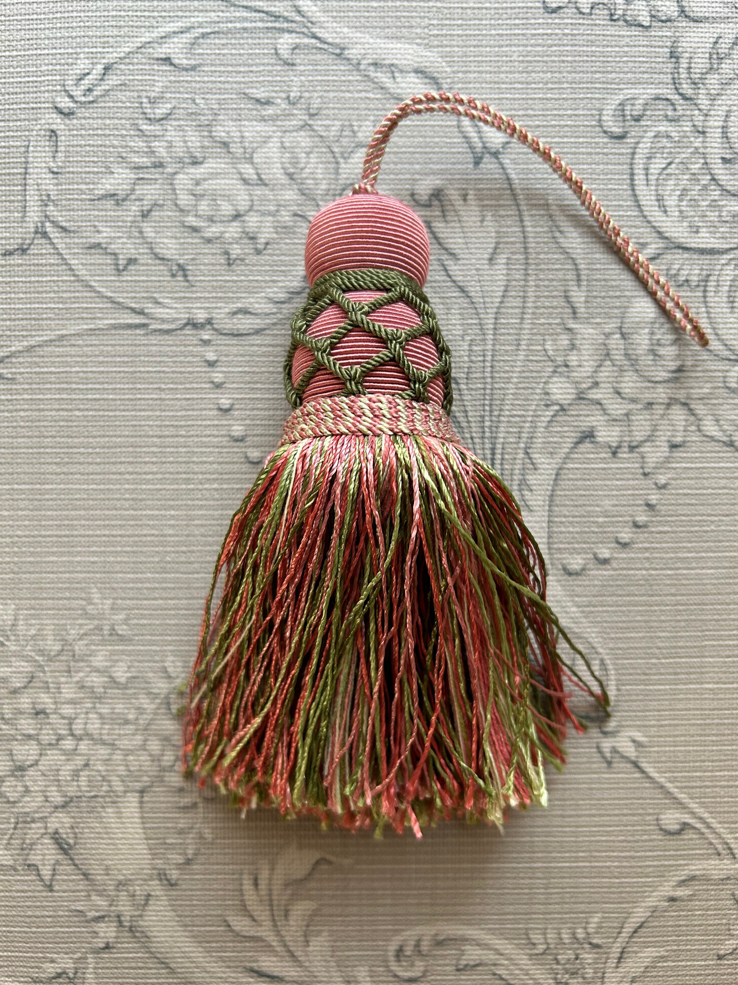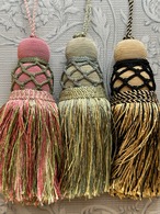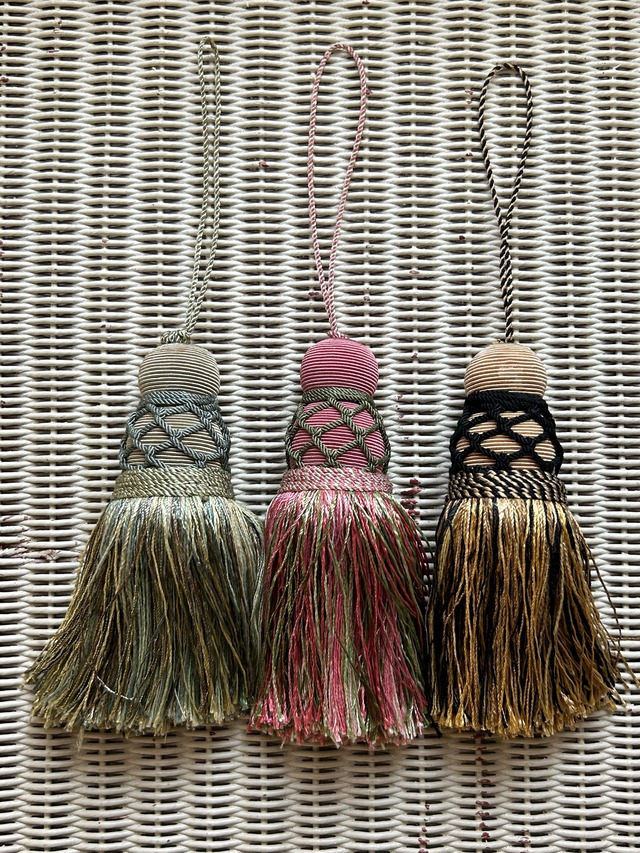 英国Vintage タッセル 約14cm ピンク/イエローゴールド/グリーン インテリアタッセル カルトナージュ インテリア茶箱 スツール