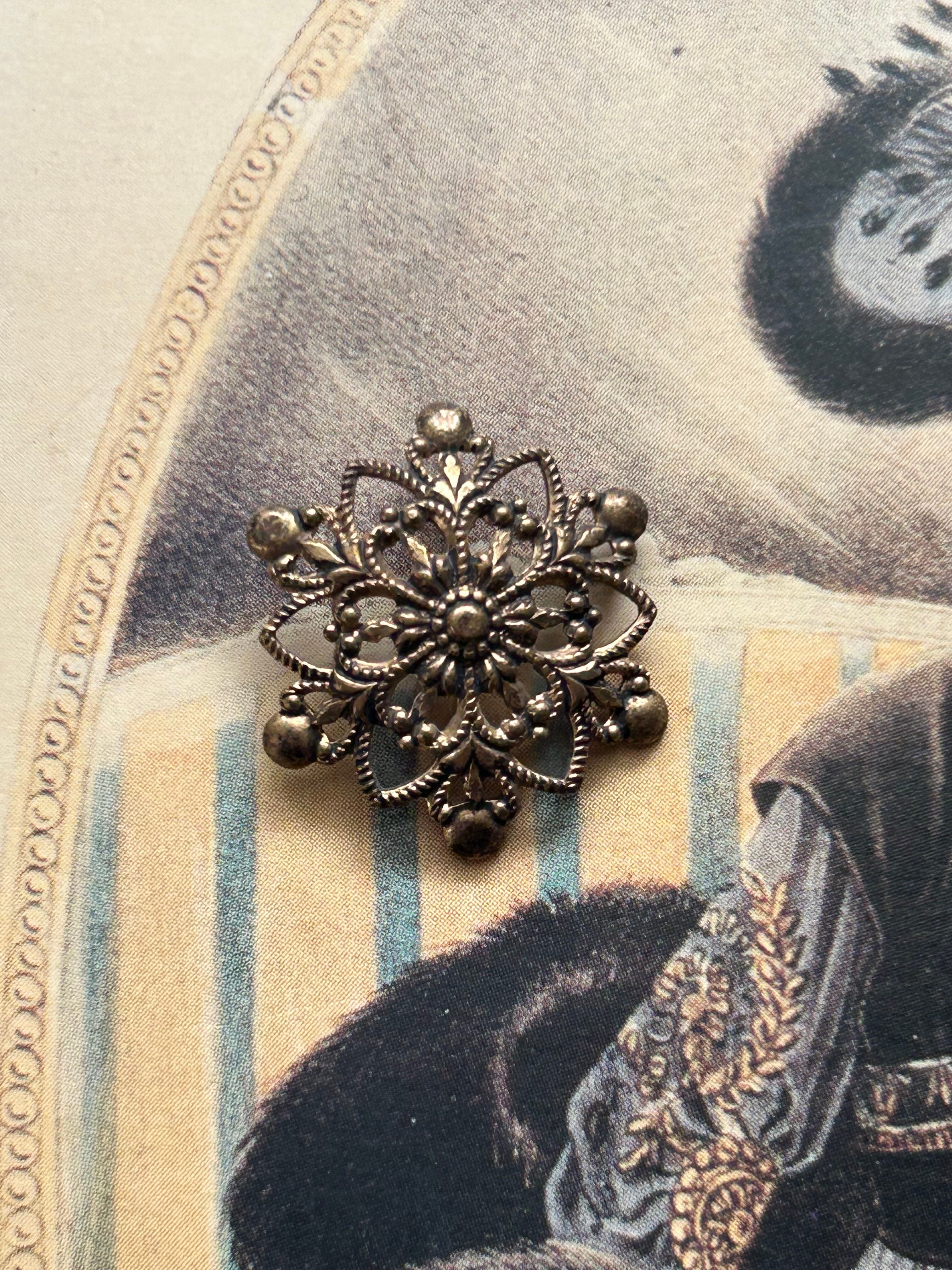 透かし、わずかにドーム状になったメタル製のアンティークボタンです。