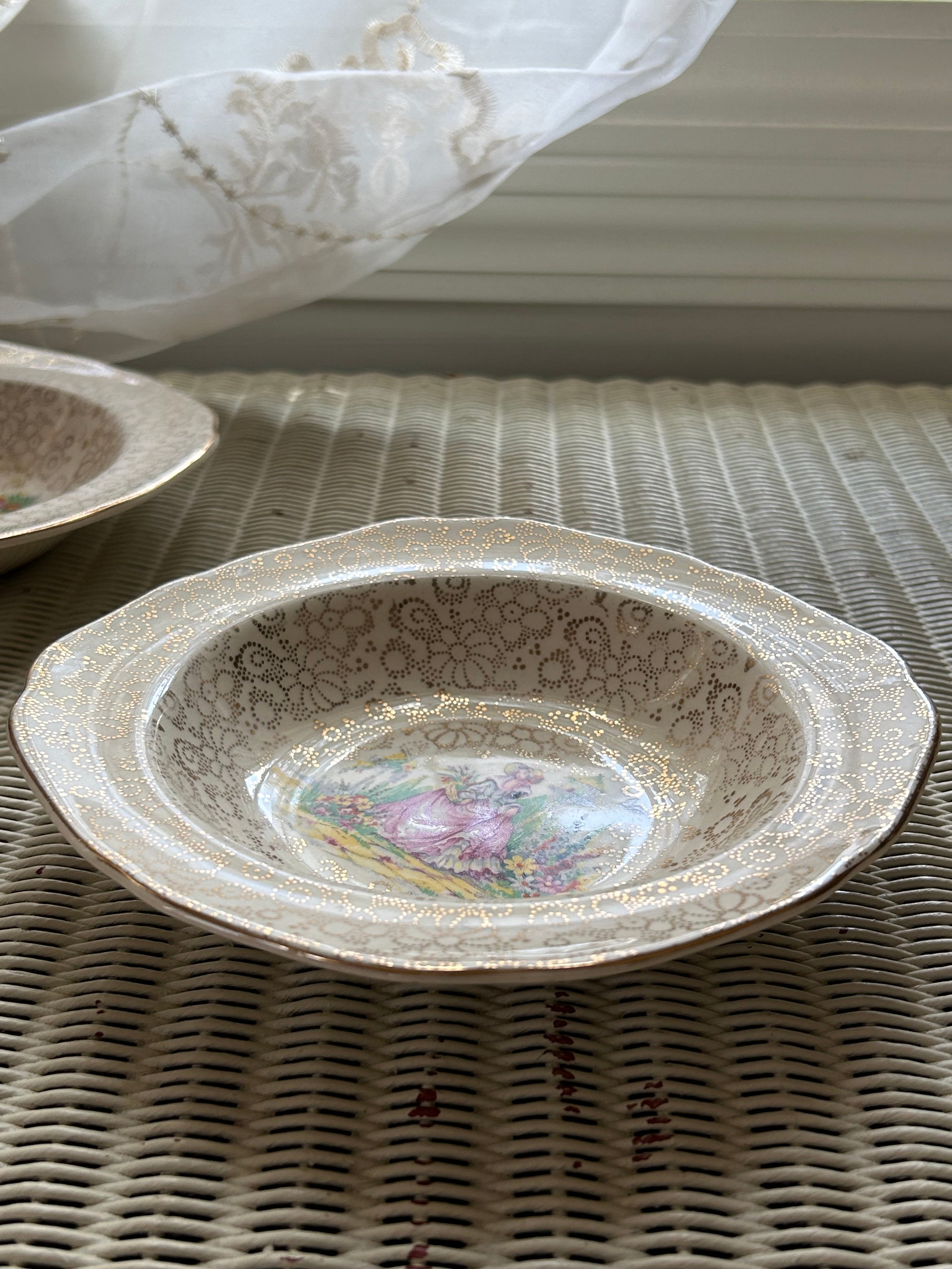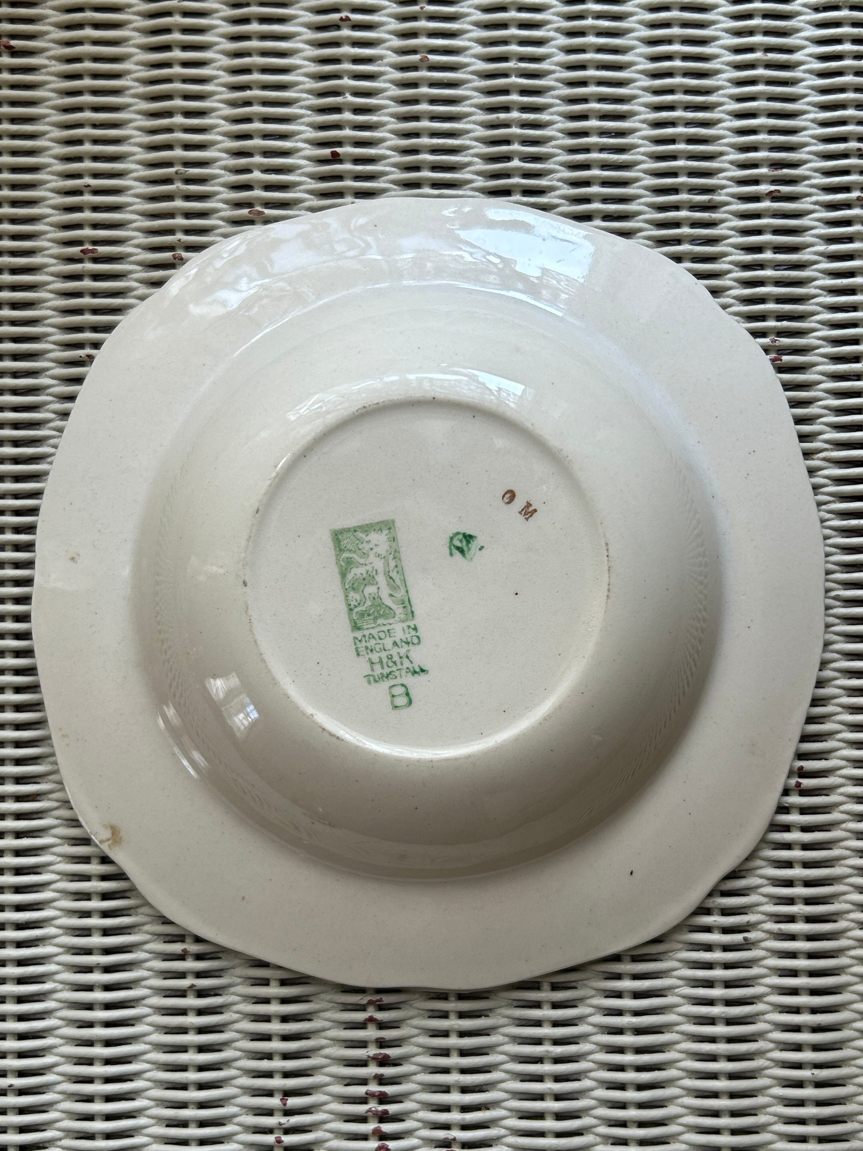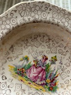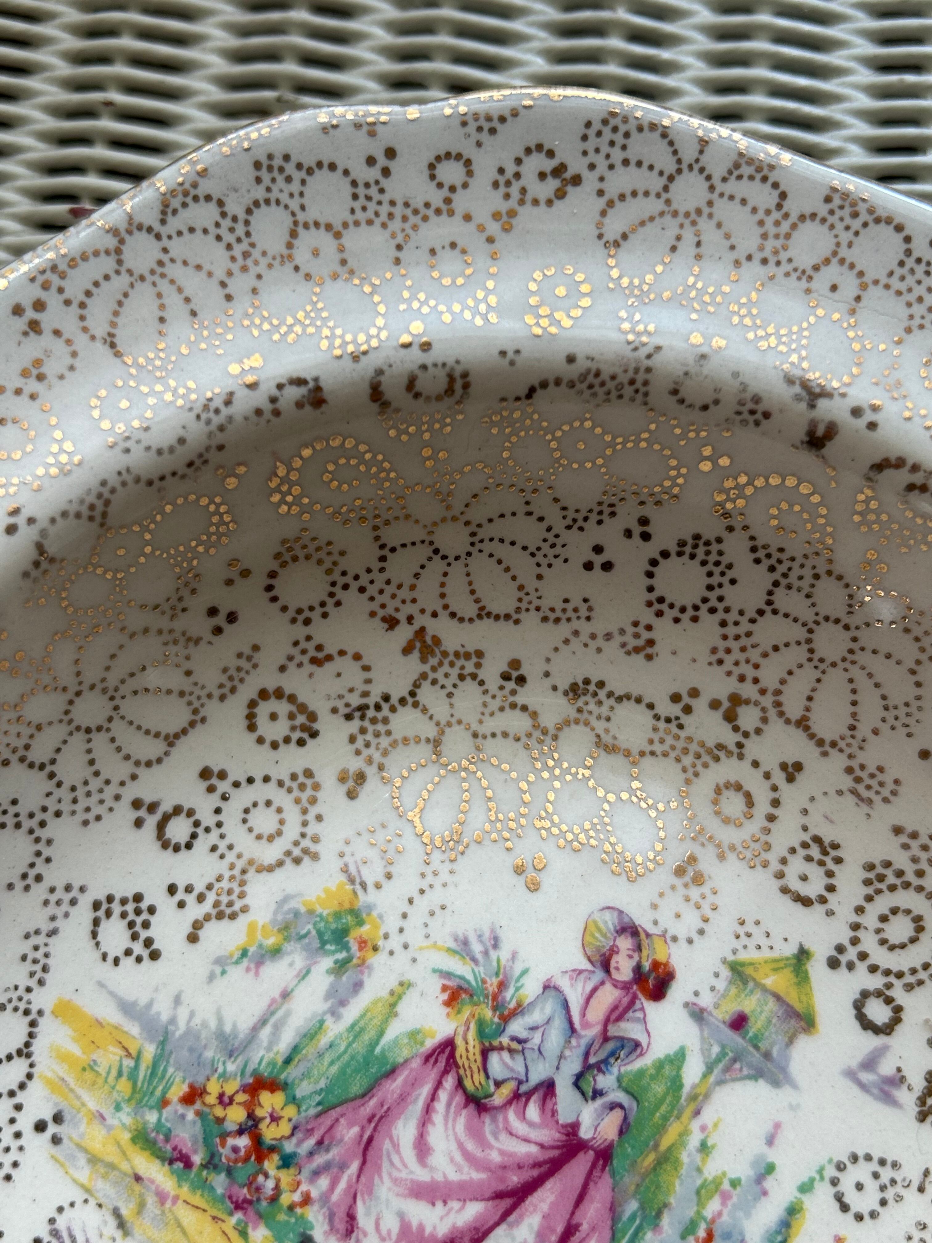 英国アンティーク H&K tunstall ホリンスヘッド&クーカム タンストール 貴婦人柄のボウルプレート 花柄 金彩