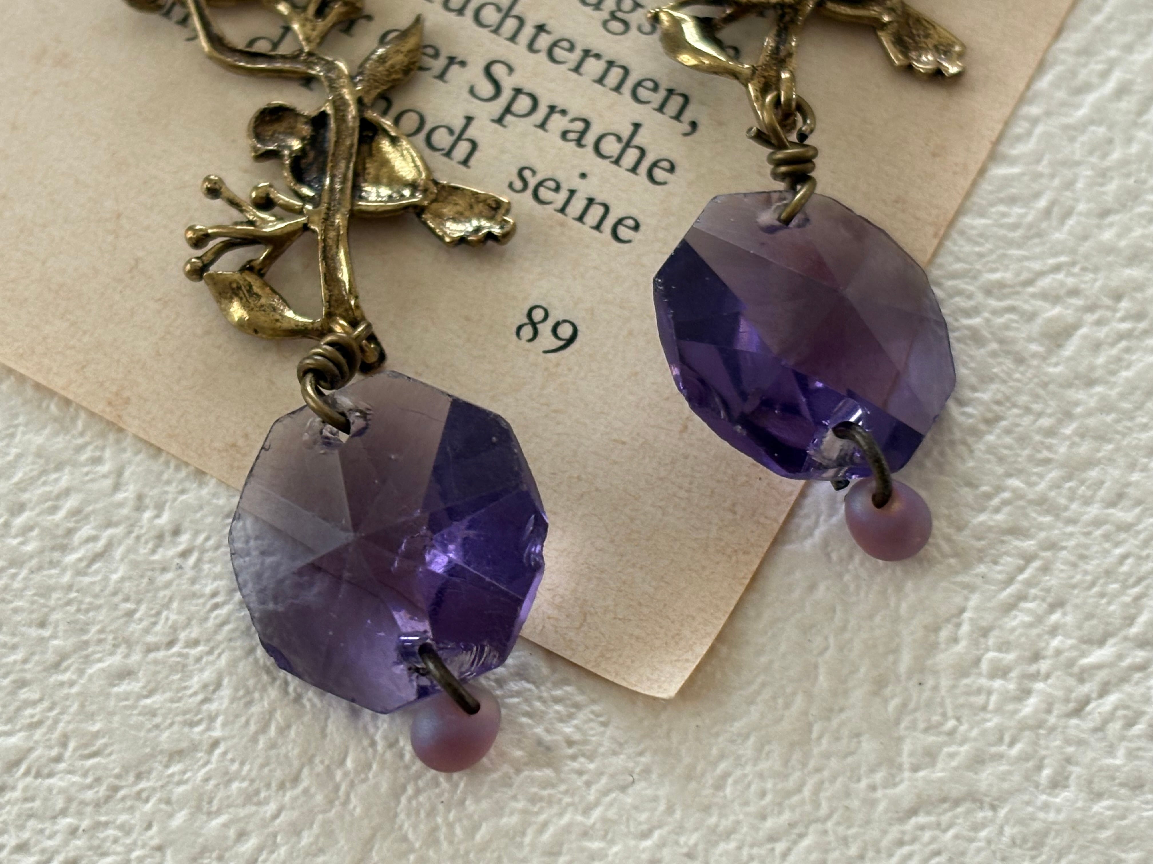 フランスで仕入れましたシャンデリアパーツとアメリカ製の小鳥の真鍮パーツ、アクリル製の葡萄の葉のパーツを組み合わせて作っていただきました。
