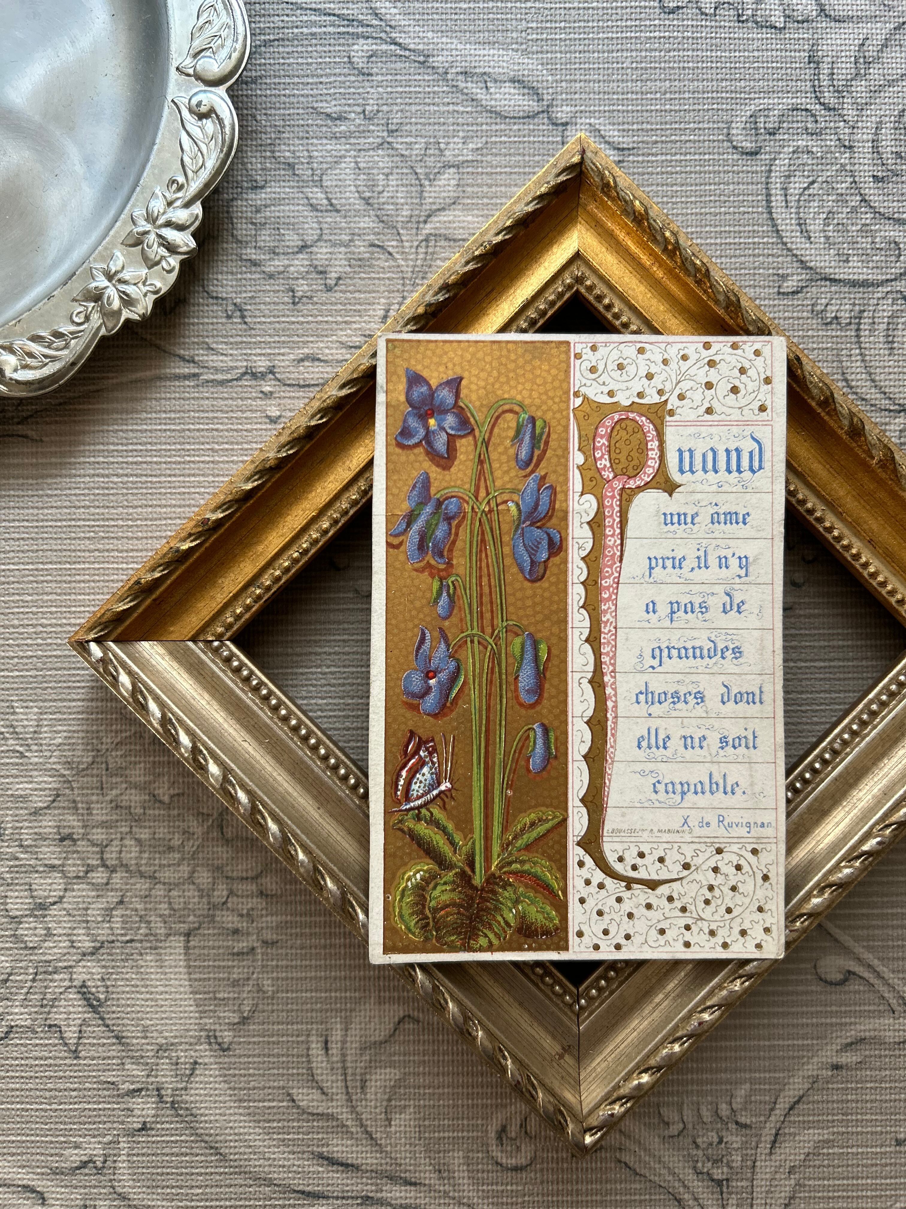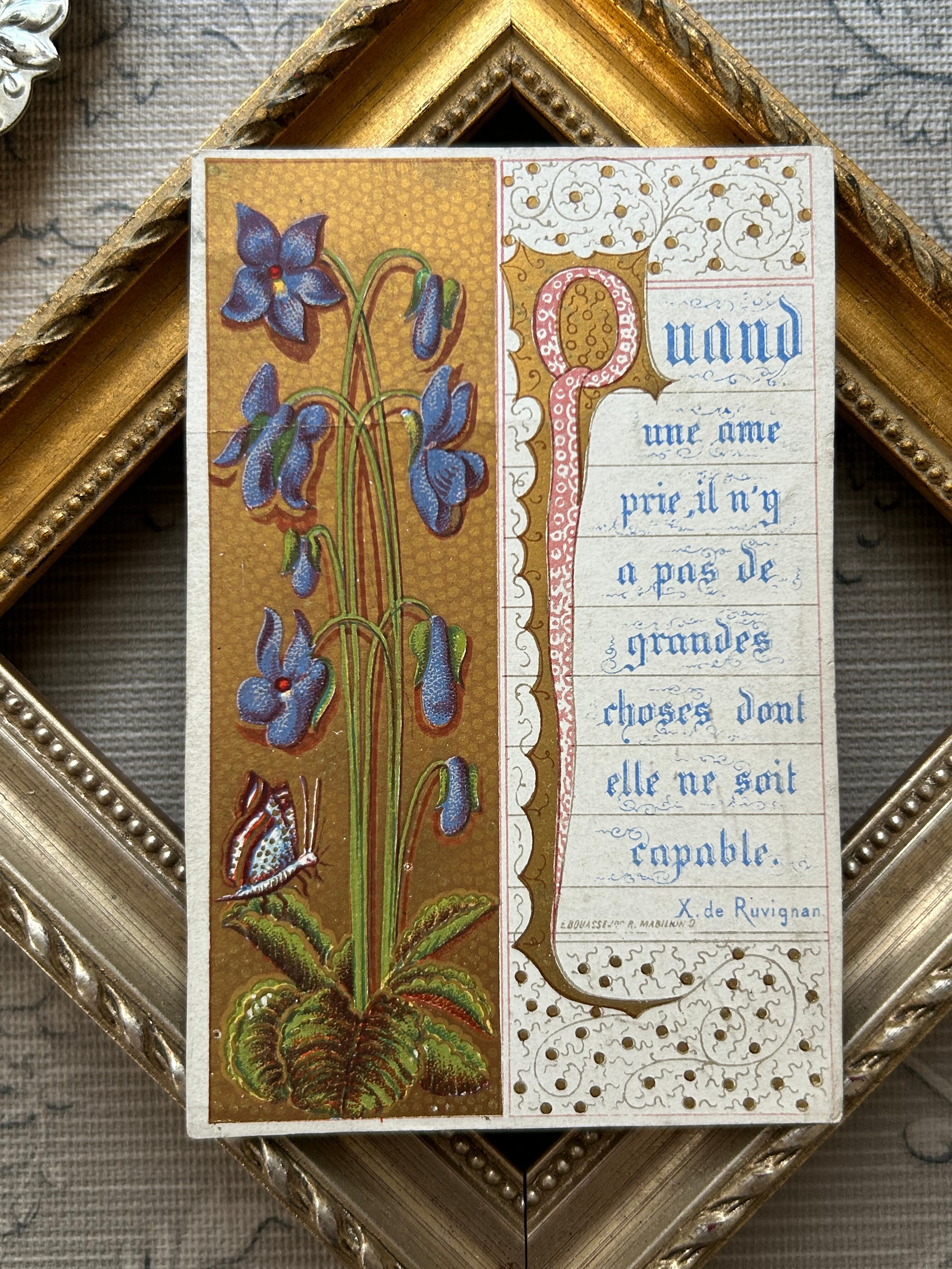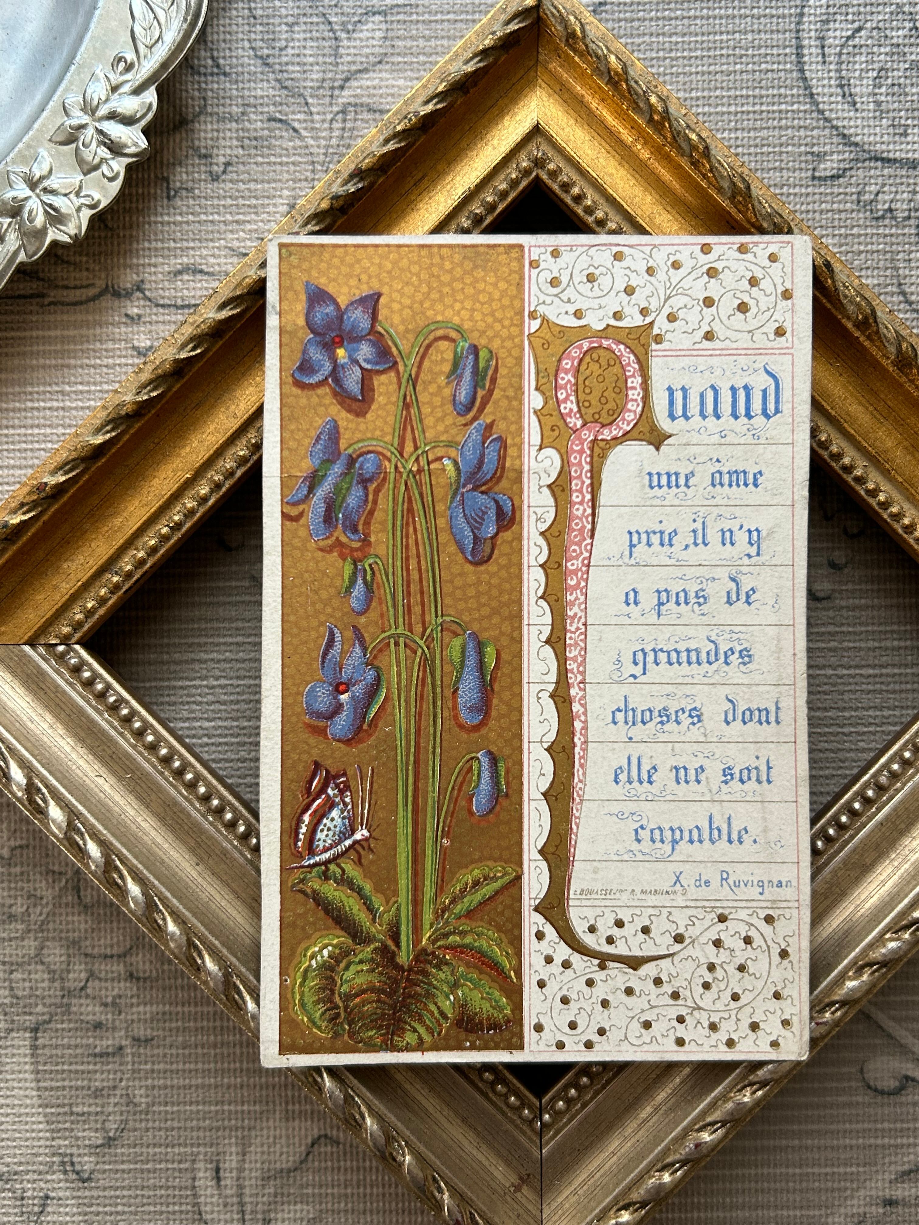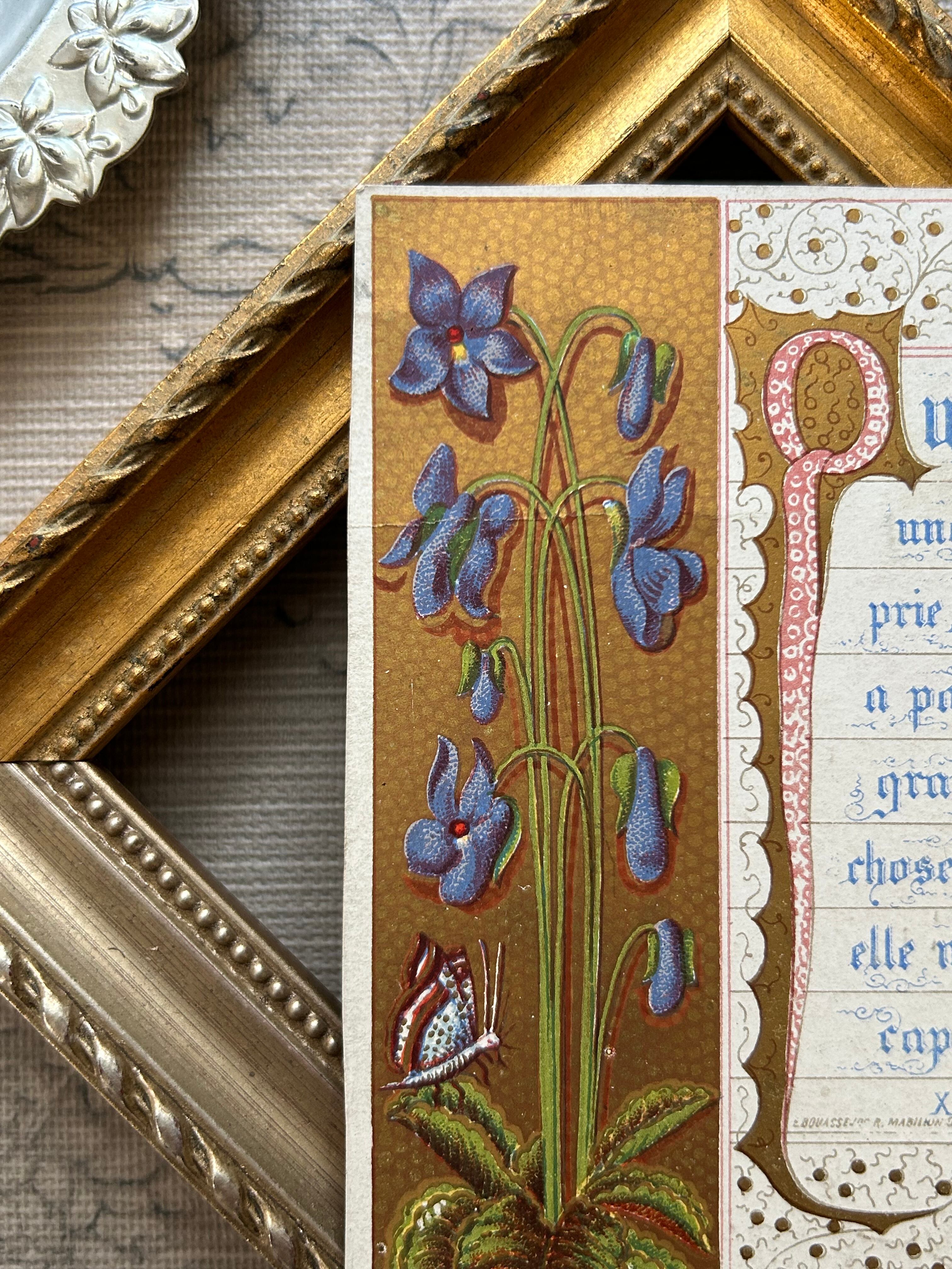 フランスアンティーク Holy Card ホーリーカード すみれ violette 1876年 額装 コレクション 撮影小物