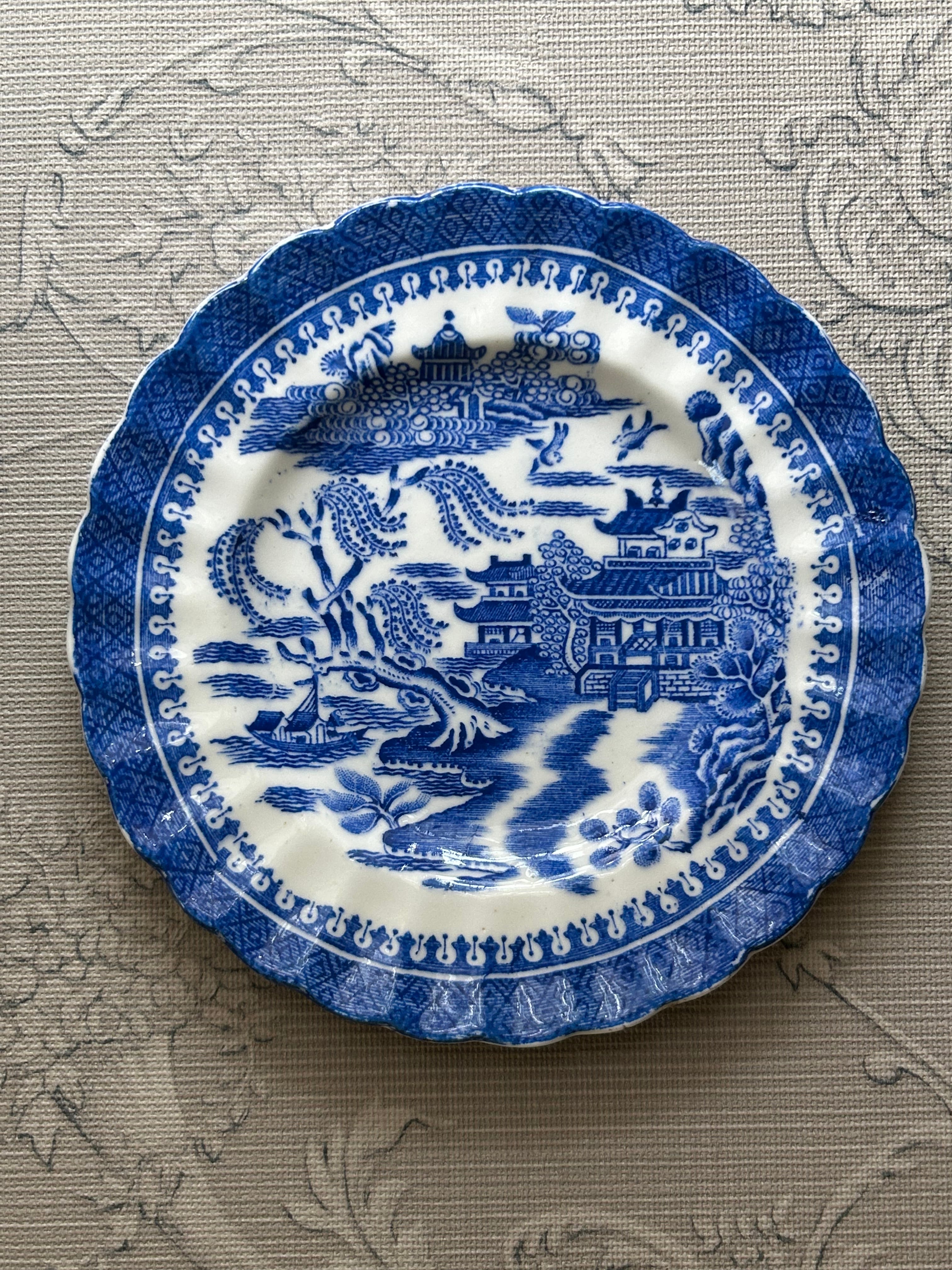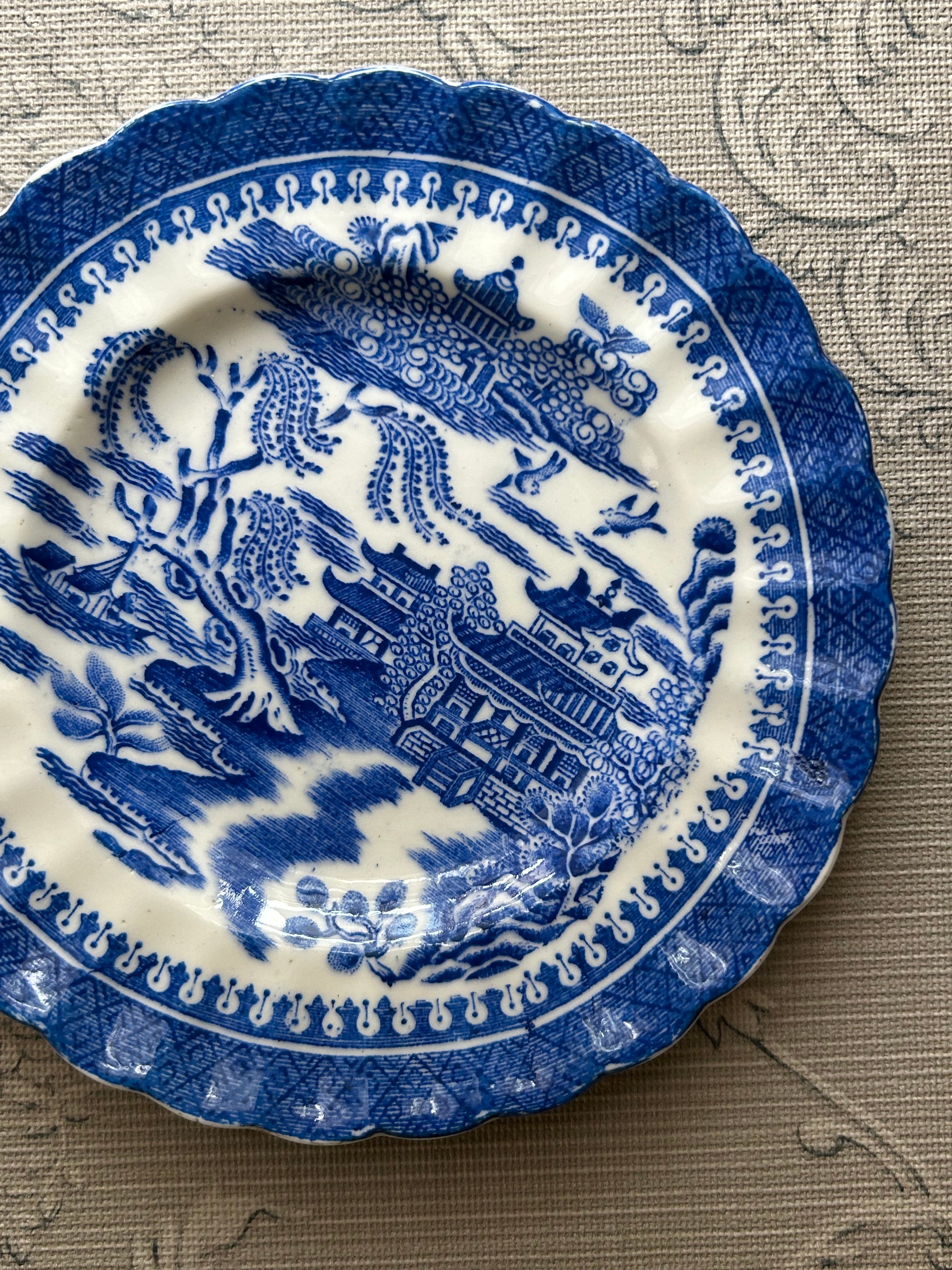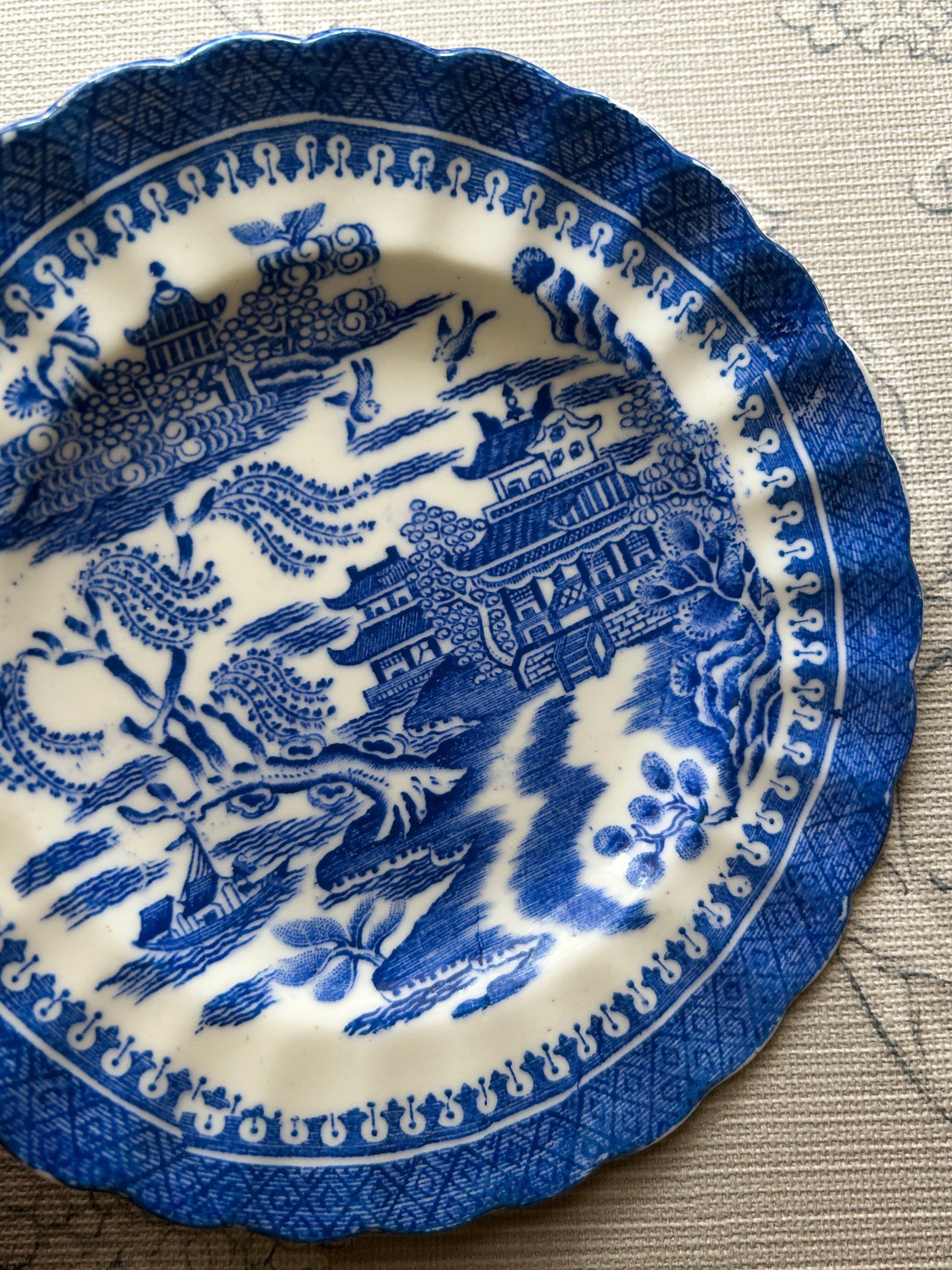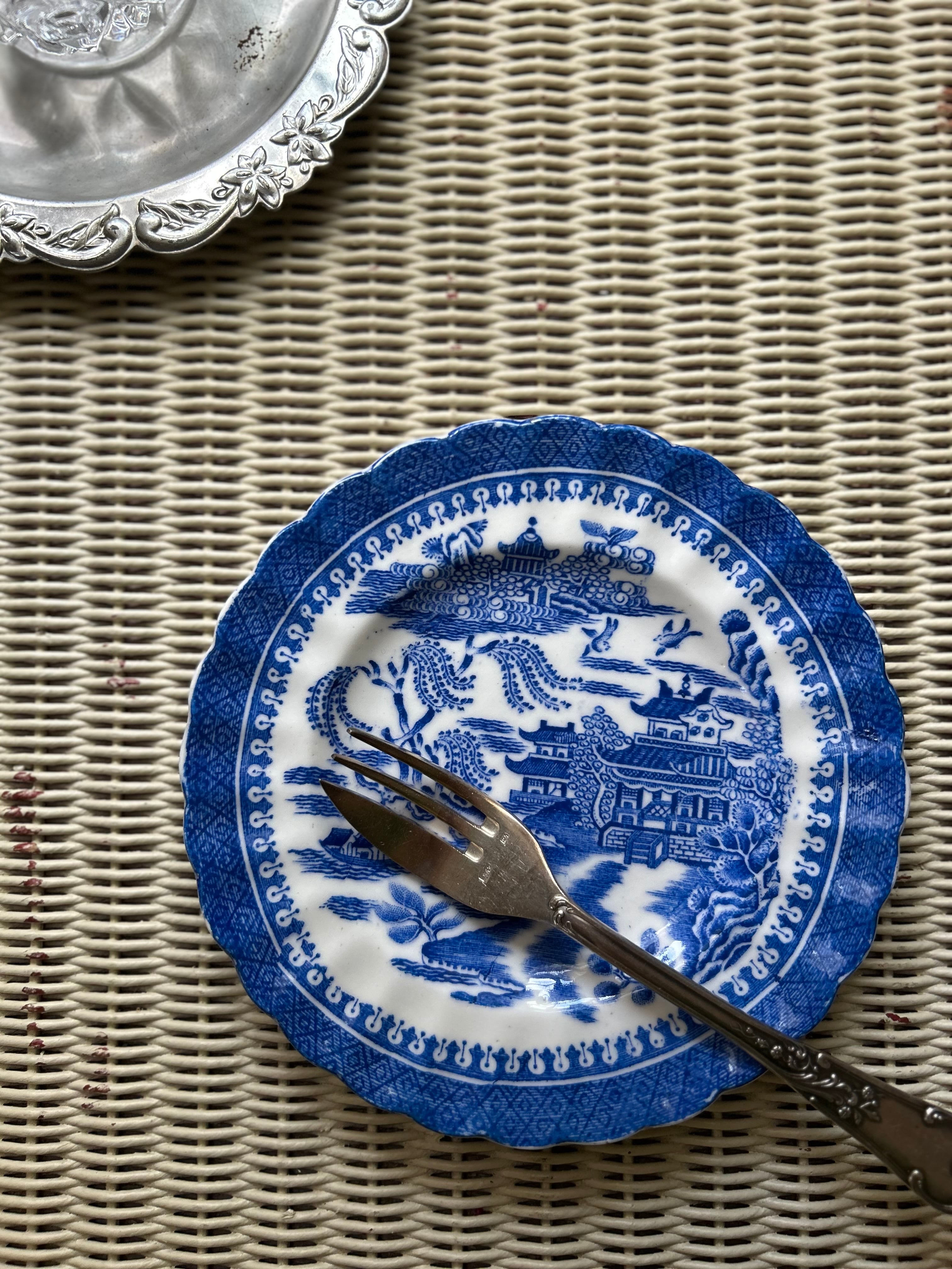 英国アンティーク TUSCAN CHINA タスカン ブルーウィロー Willow ケーキプレート 1900年代初頭 テーブルウェア