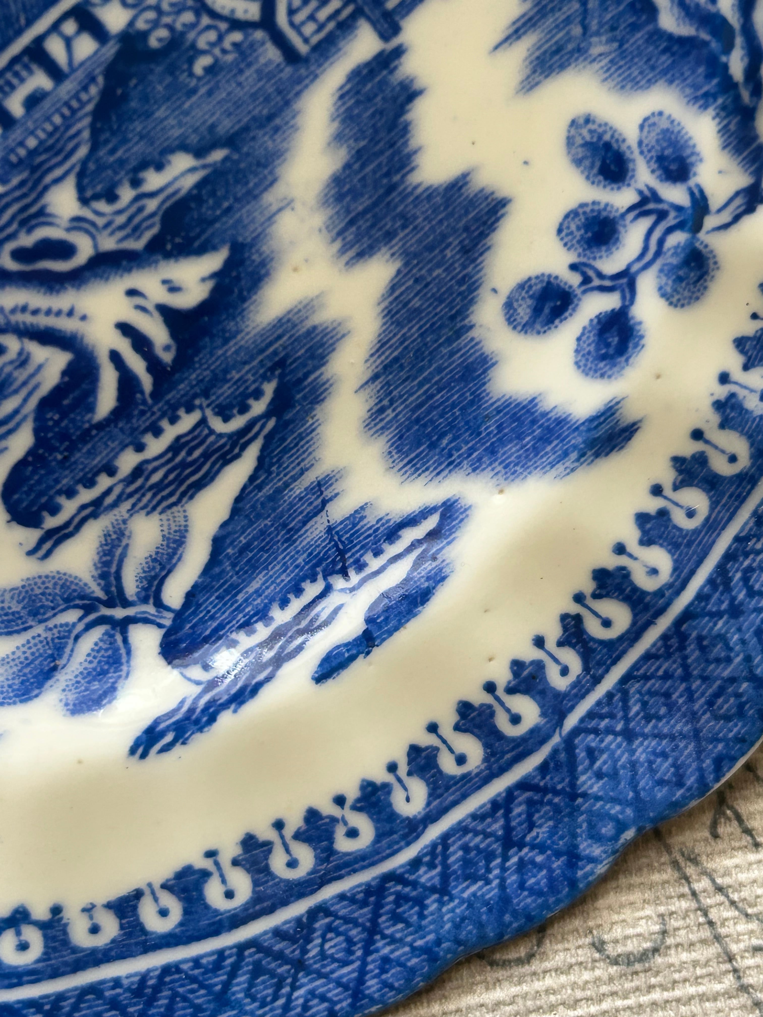 英国人の憧れた東洋の柳文様がブルー&ホワイトで描かれた中国風のシノワズリーなデザイン。