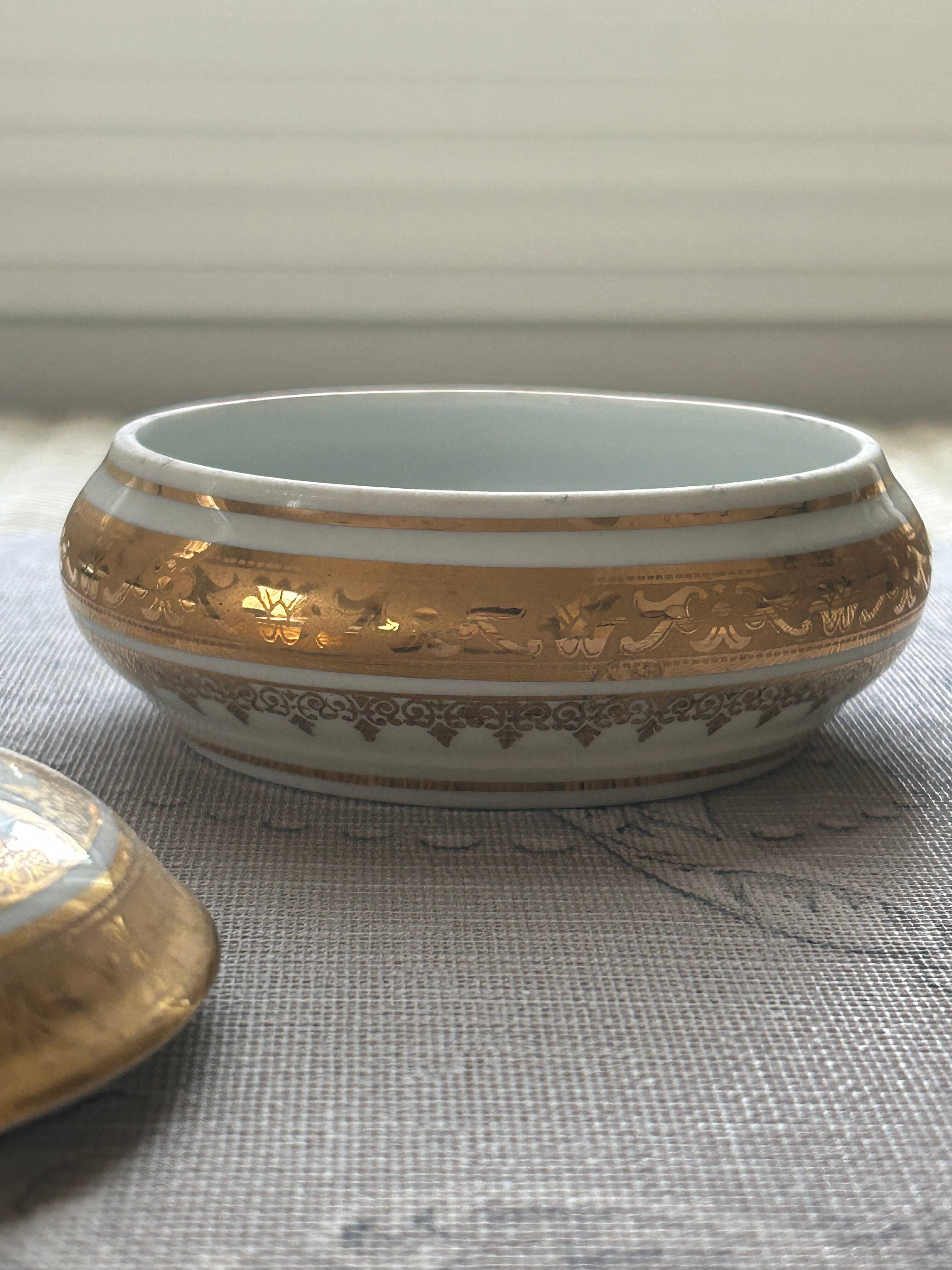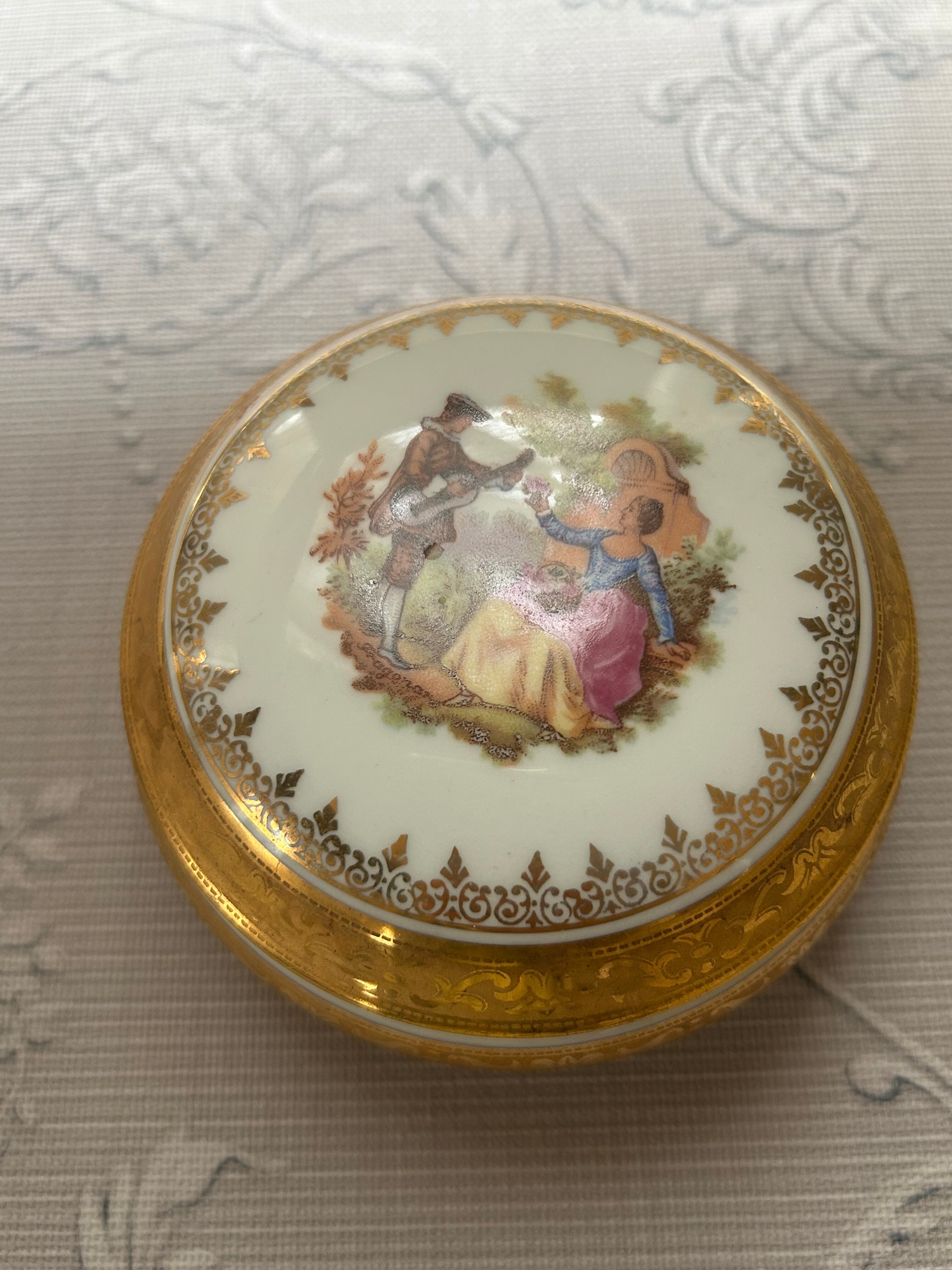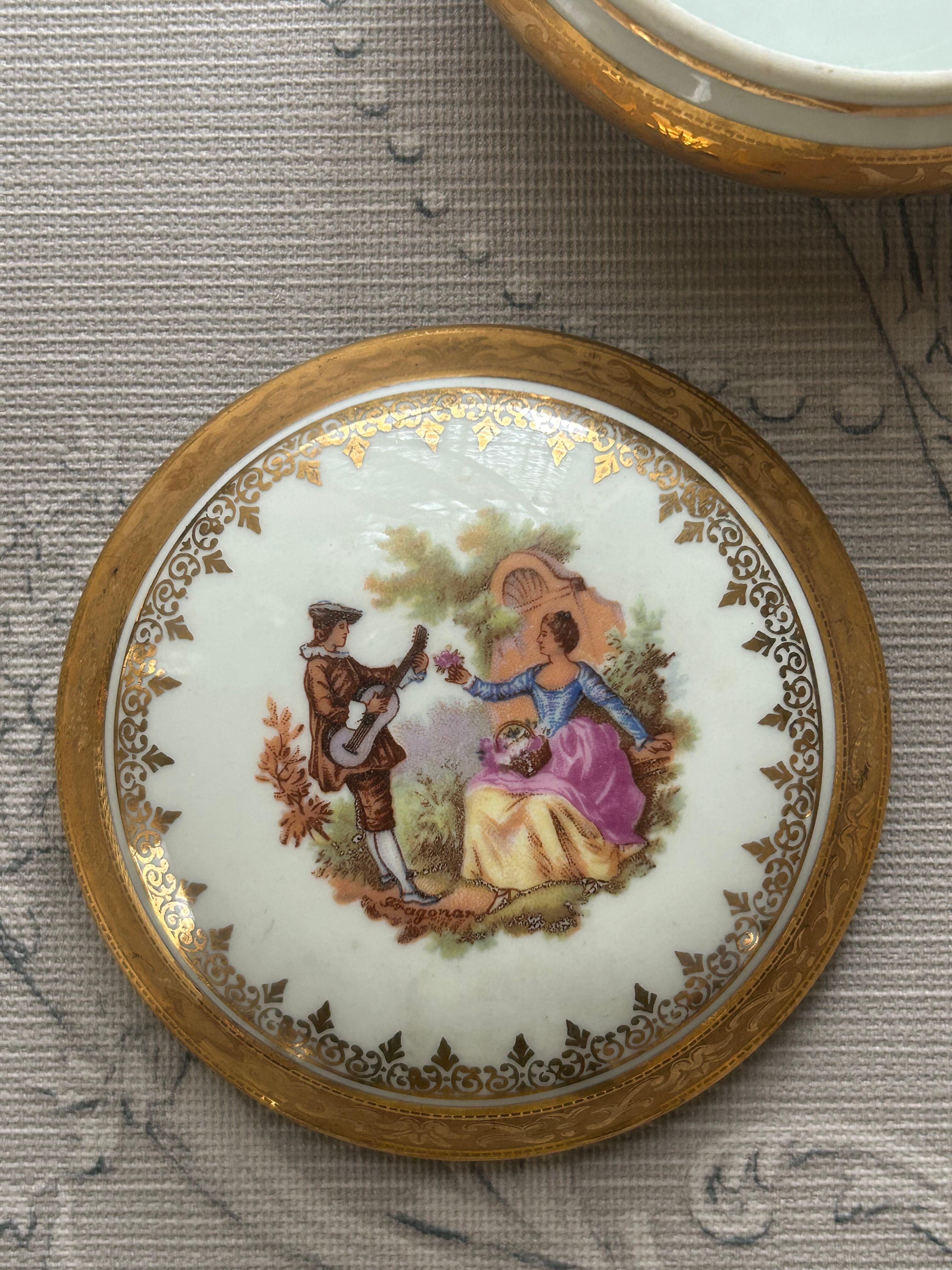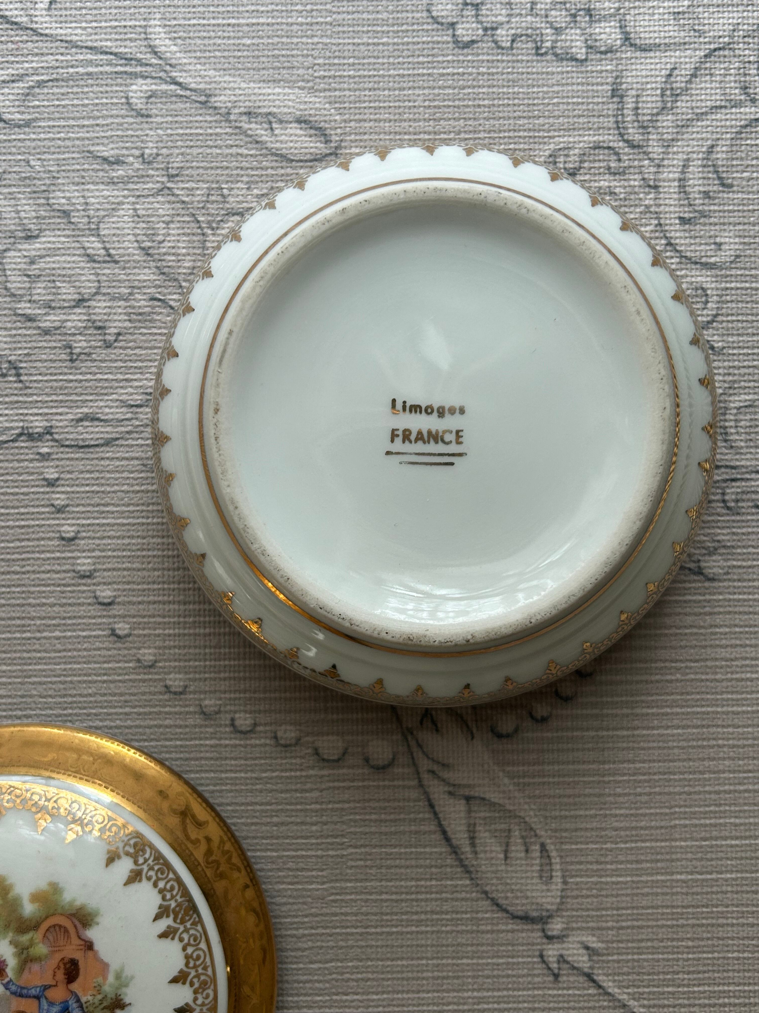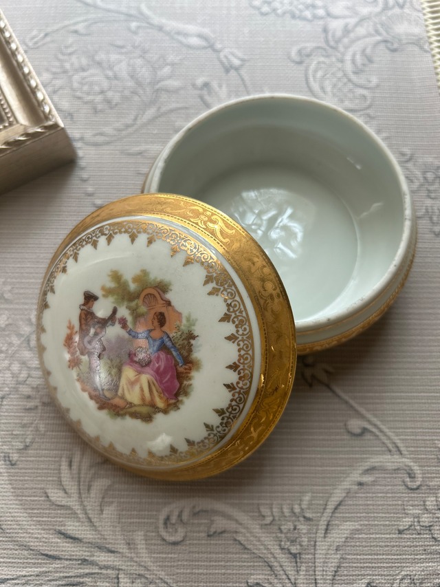 フランスアンティーク Limoges リモージュボンボニエール 恋人達 金彩 小物入れ インテリア 撮影小物