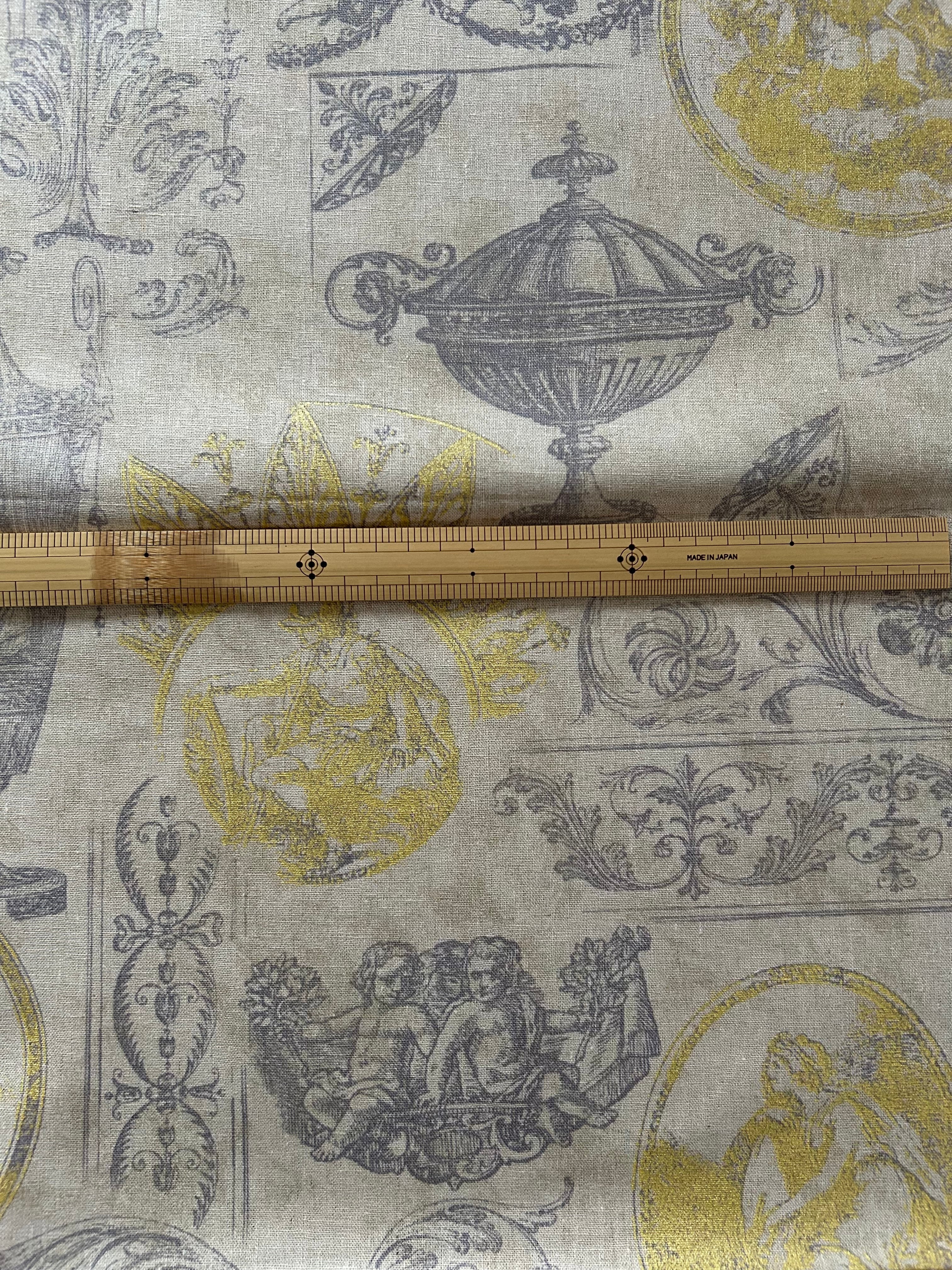 輸入コットンリネンファブリック カットファブリック ギリシャ神話 クラシカル柄 カルトナージュ