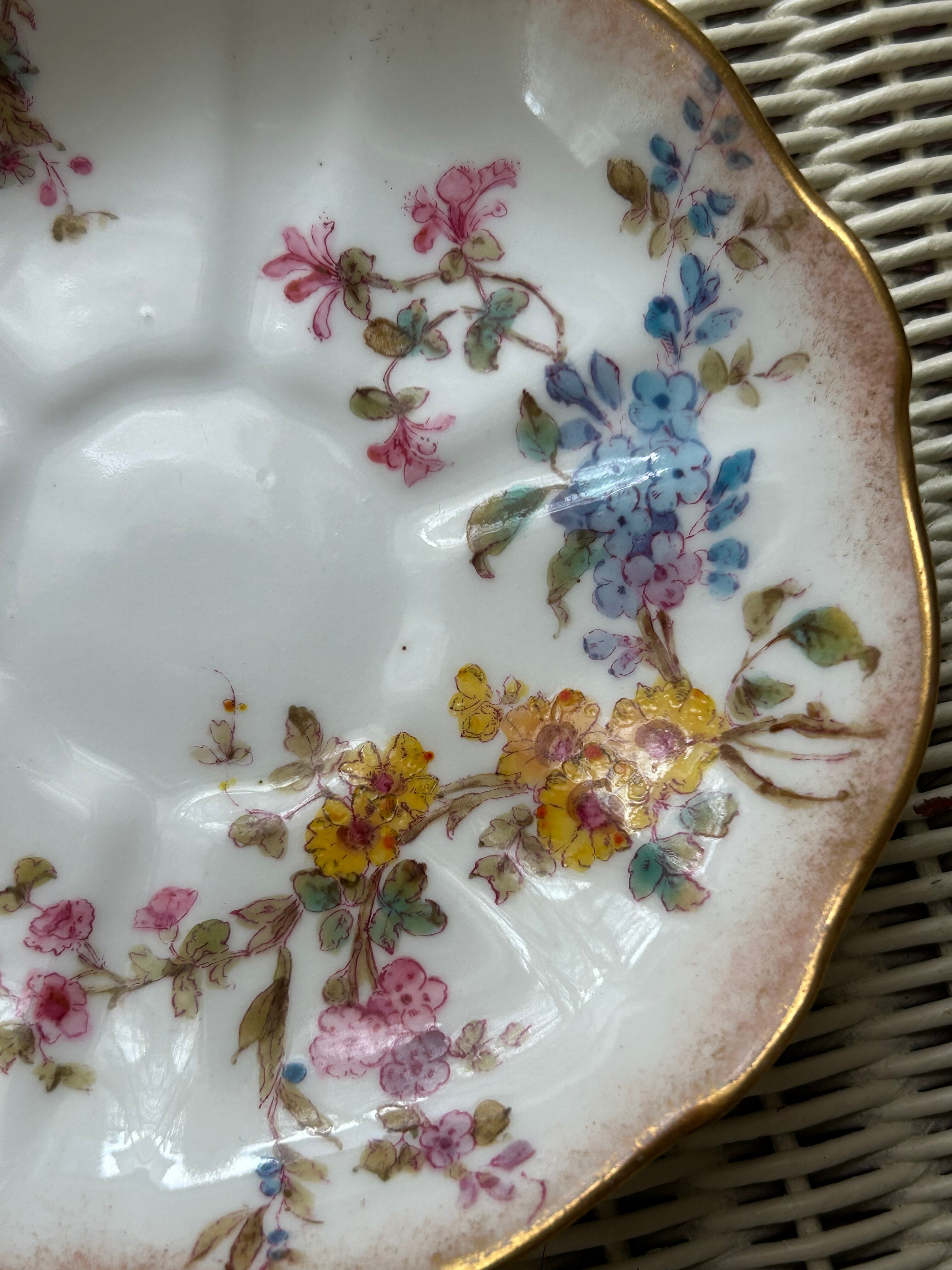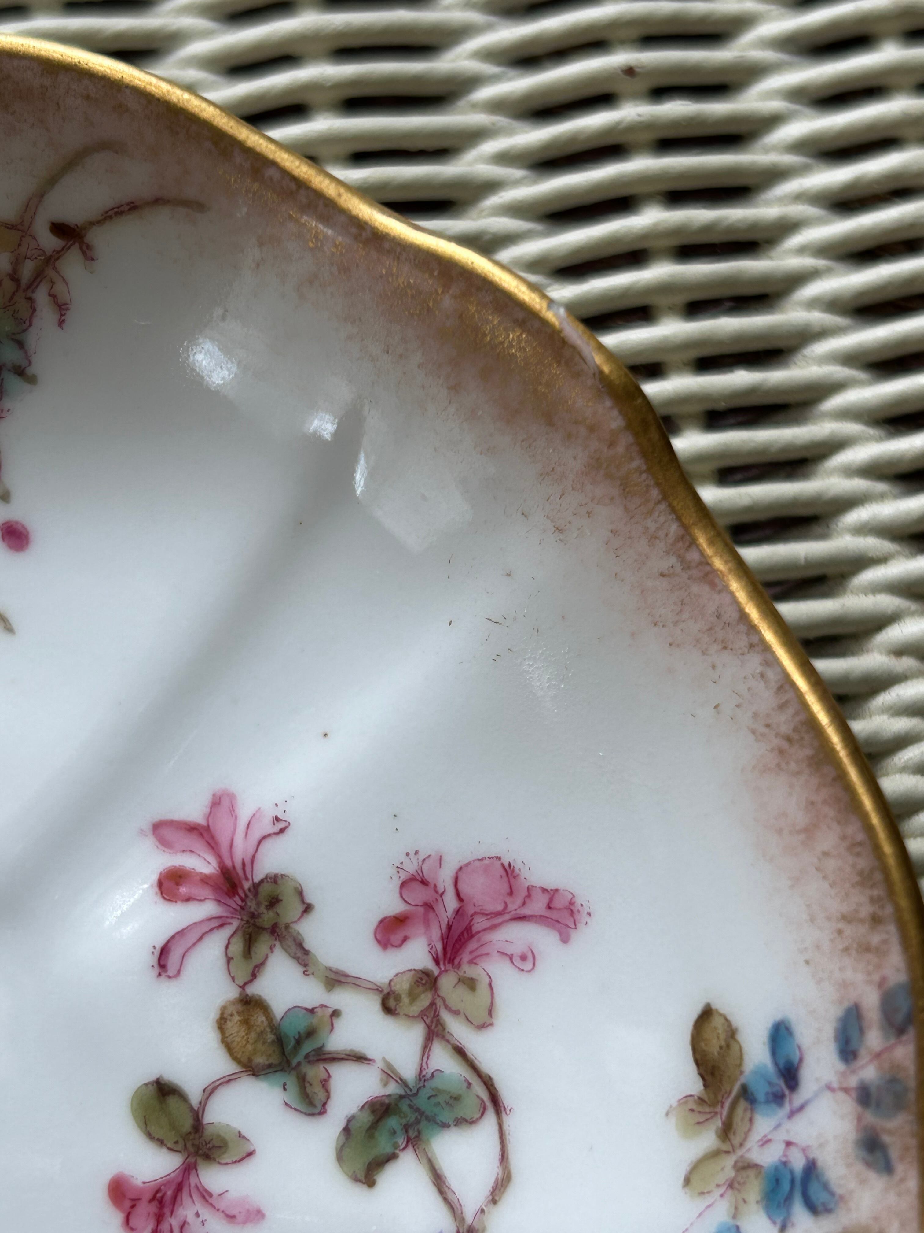 繊細で美しく優しいタッチの小花柄。縁に淡いピンクがロマンチックで金彩が華やかさをプラスしています。