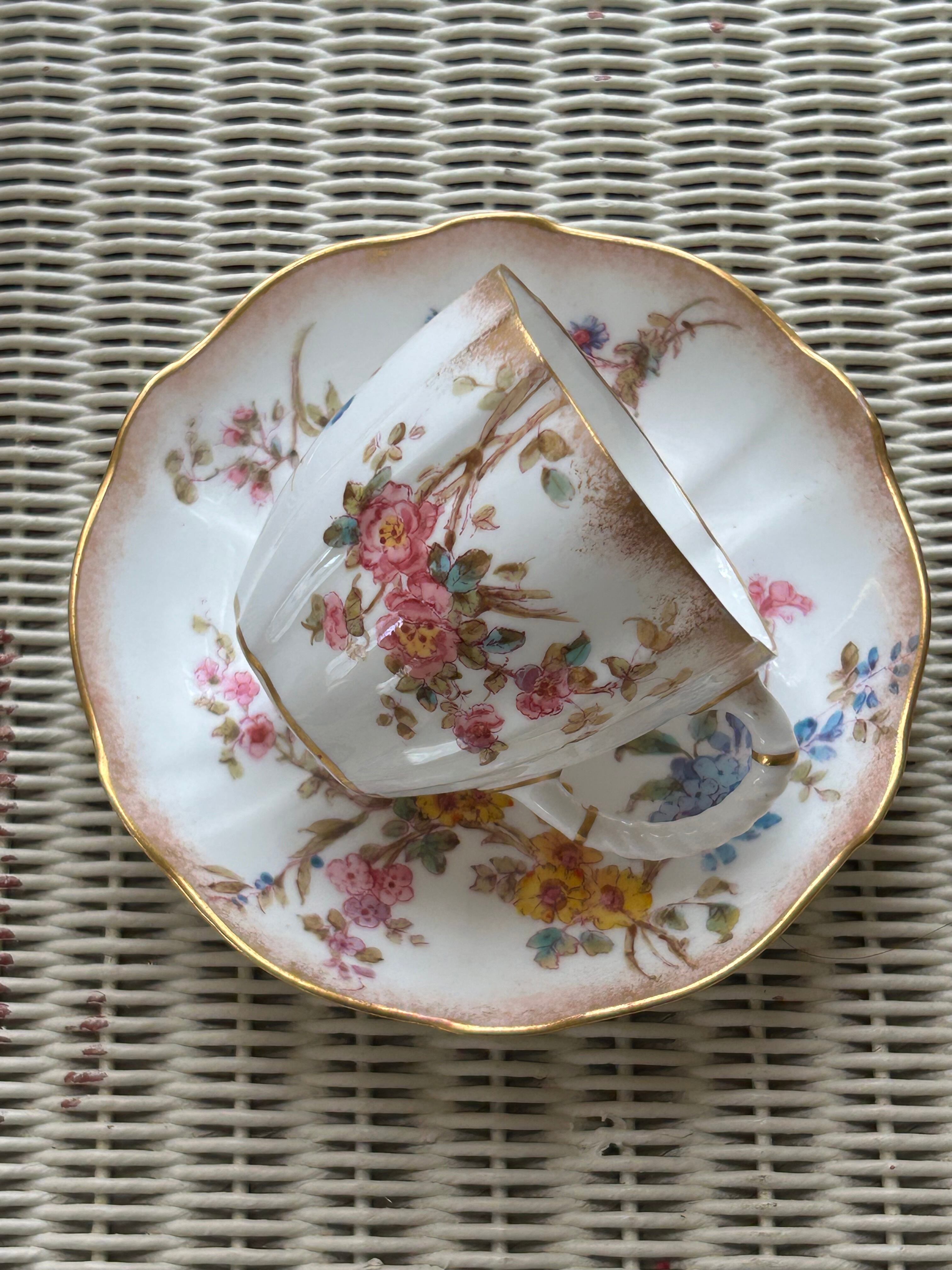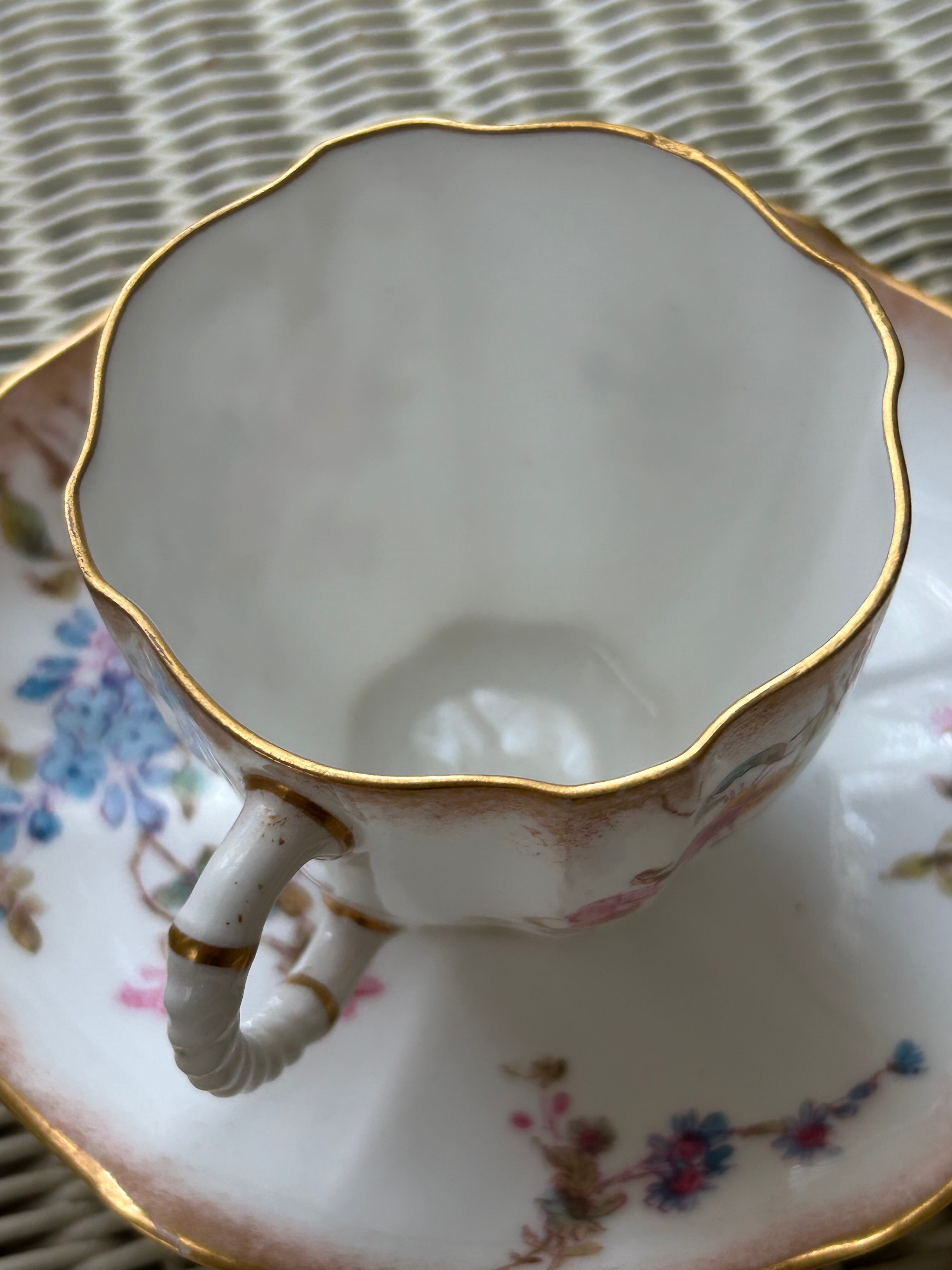 英国アンティーク ROYAL CROWN DERBY ロイヤルクラウンダービー デミタス カップ&ソーサー 勿忘草 小花柄 ハンドペイント