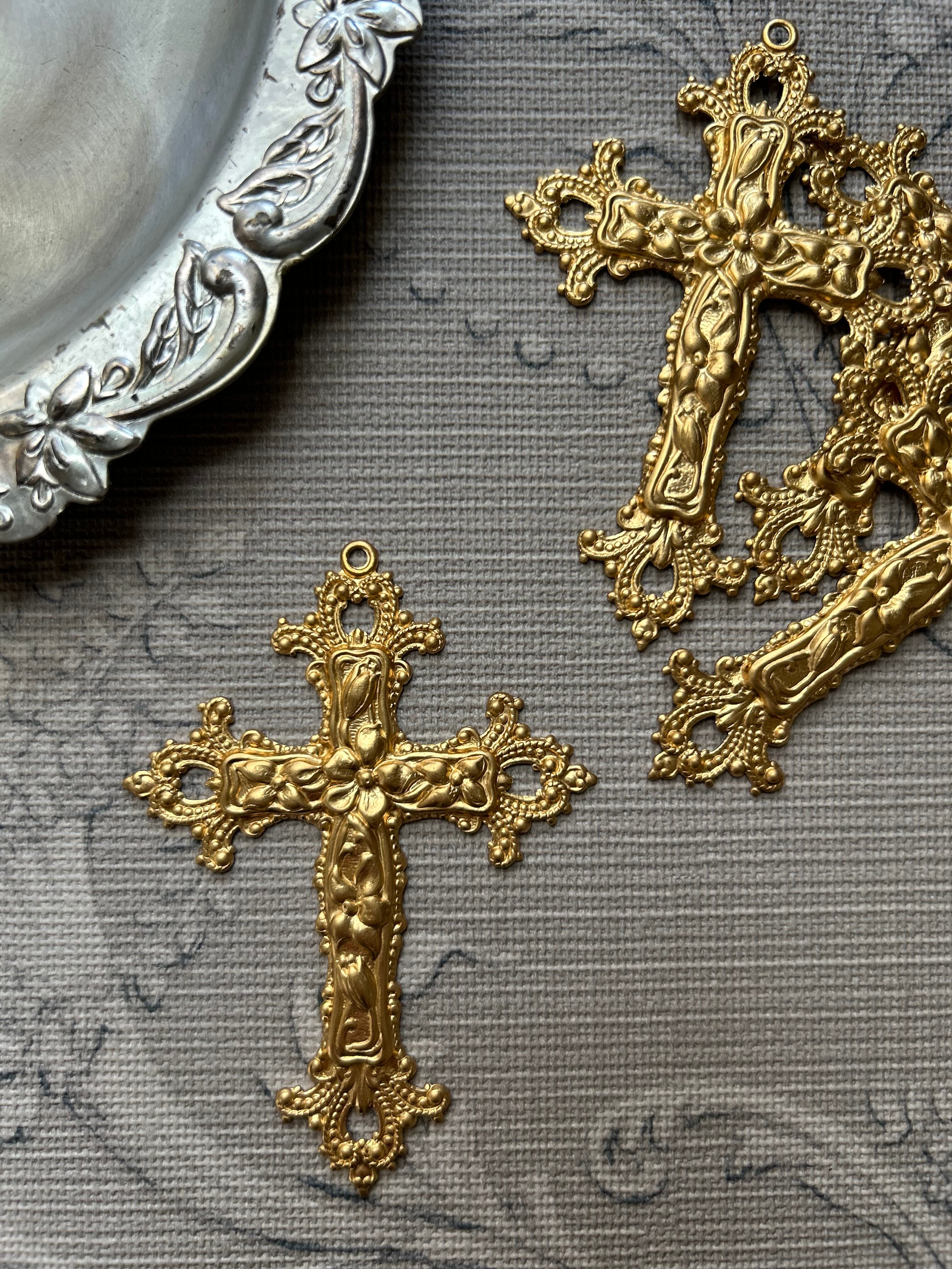 輸入デザインパーツ USAパーツ ブラス製 真鍮 フローラルクロス エンボス ゴールド