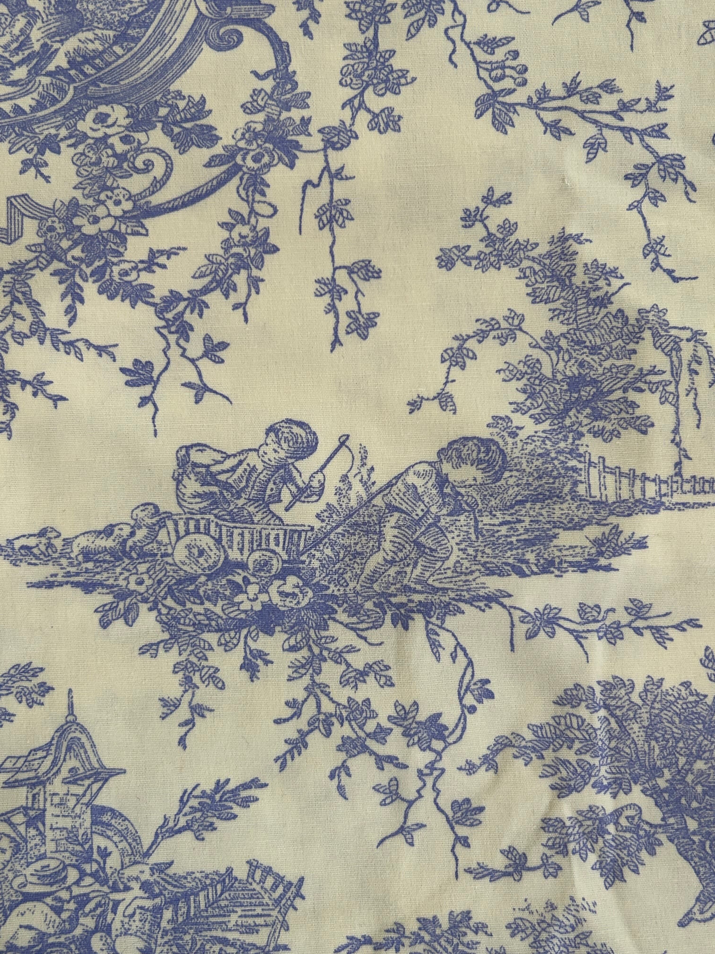 スペイン製のトワルドジュイ柄のコットンファブリックです。