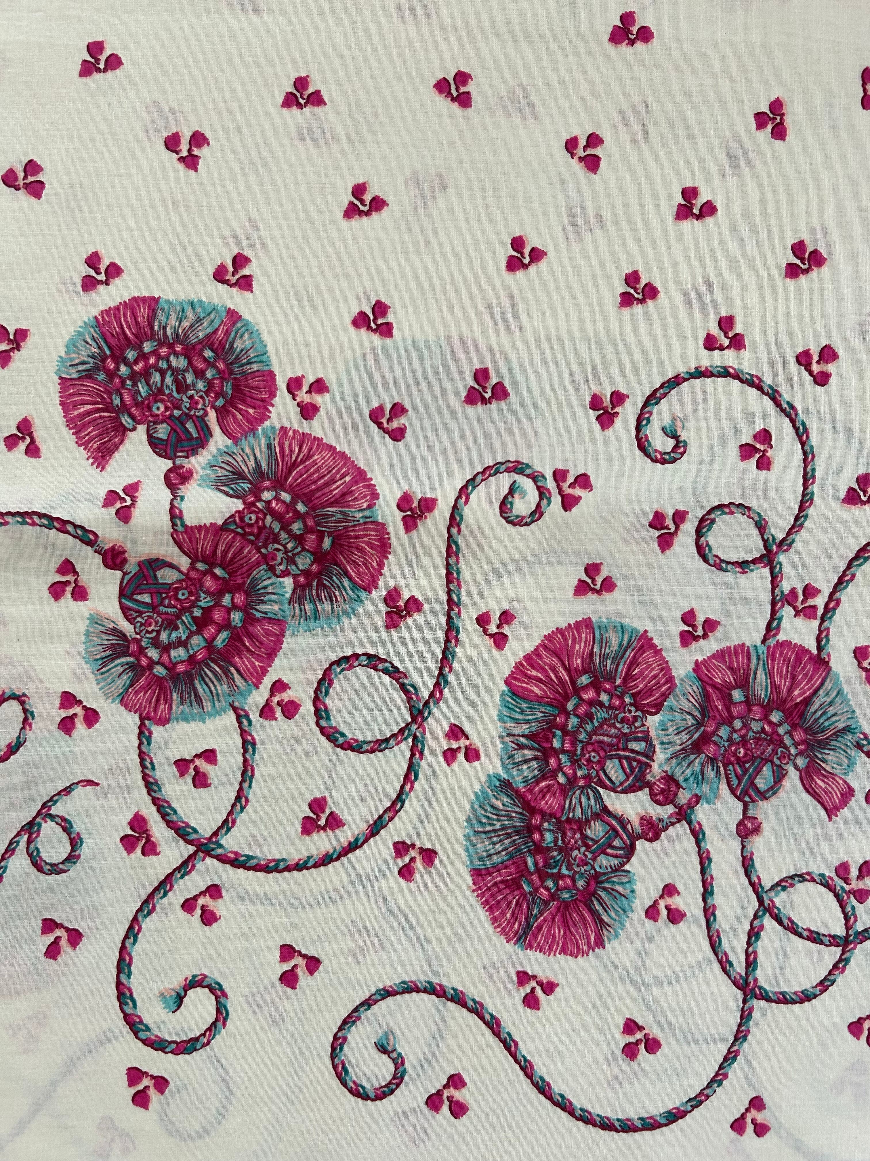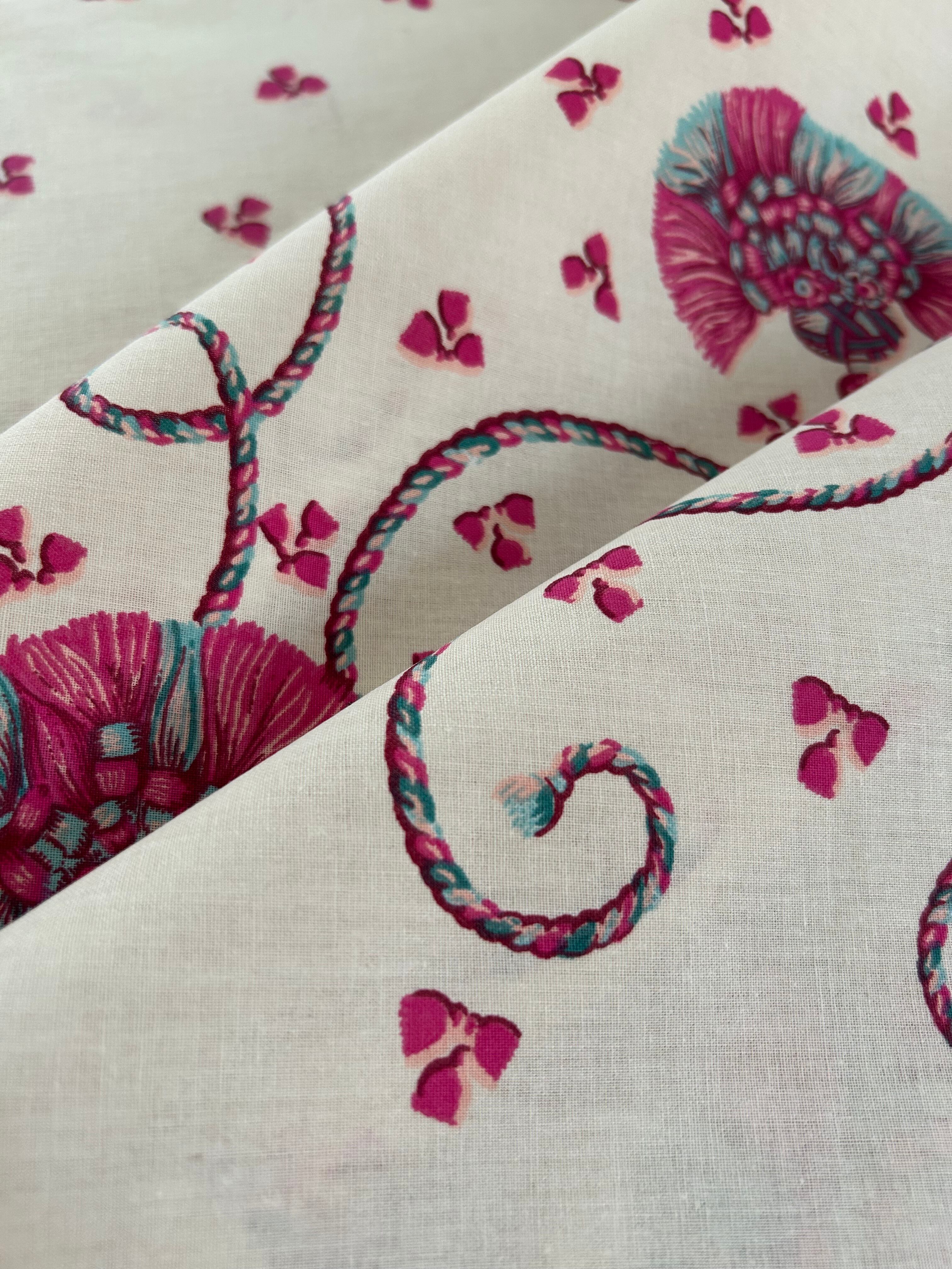 輸入コットンファブリック HOULES社 ウレス タッセル柄 フランス カルトナージュ 薄手 廃盤 デッドストック